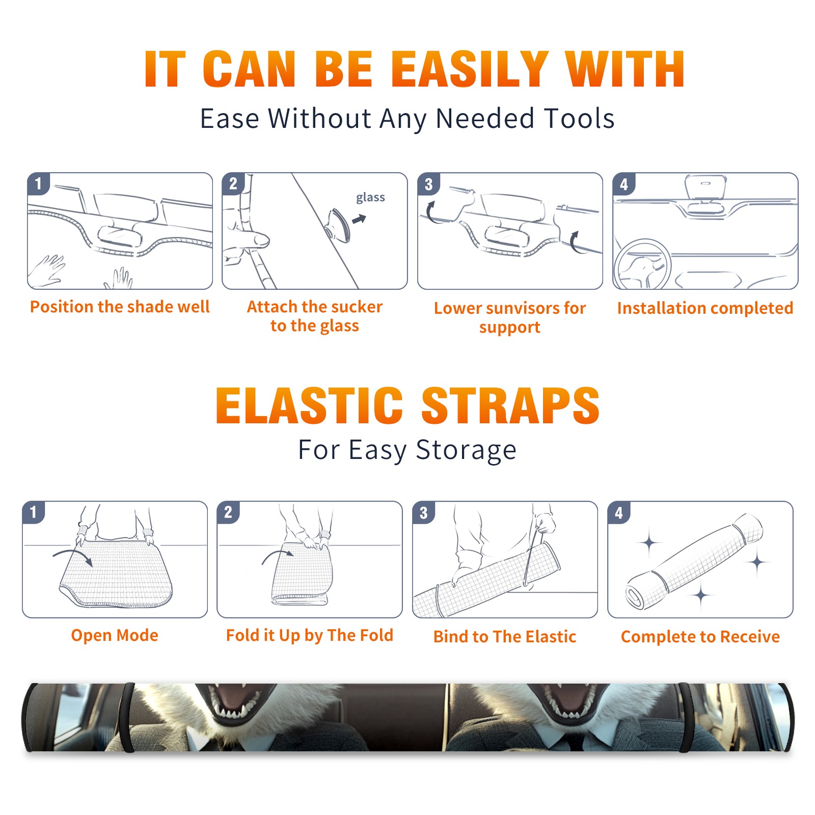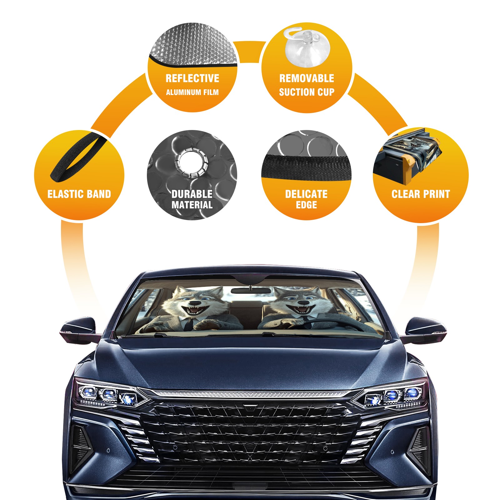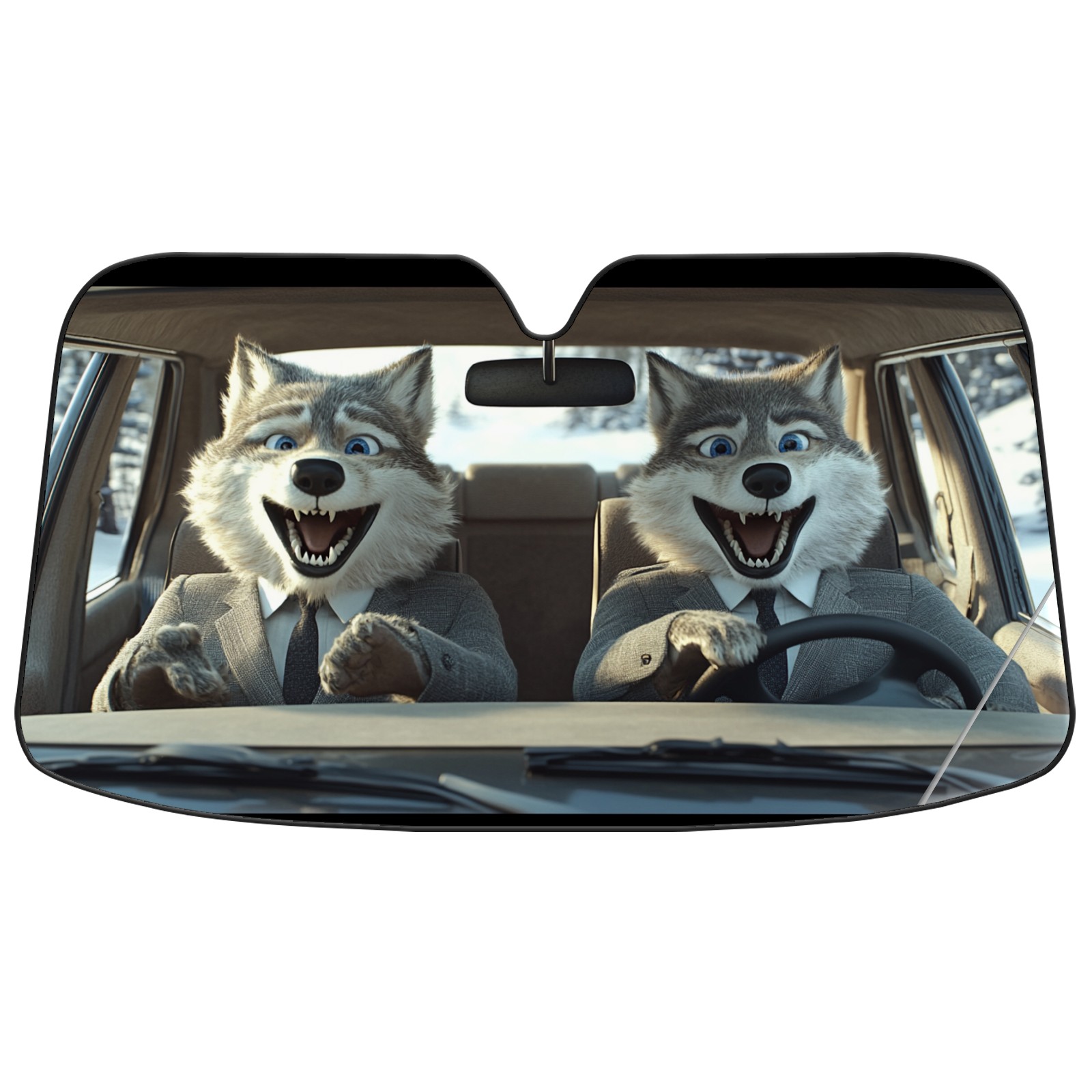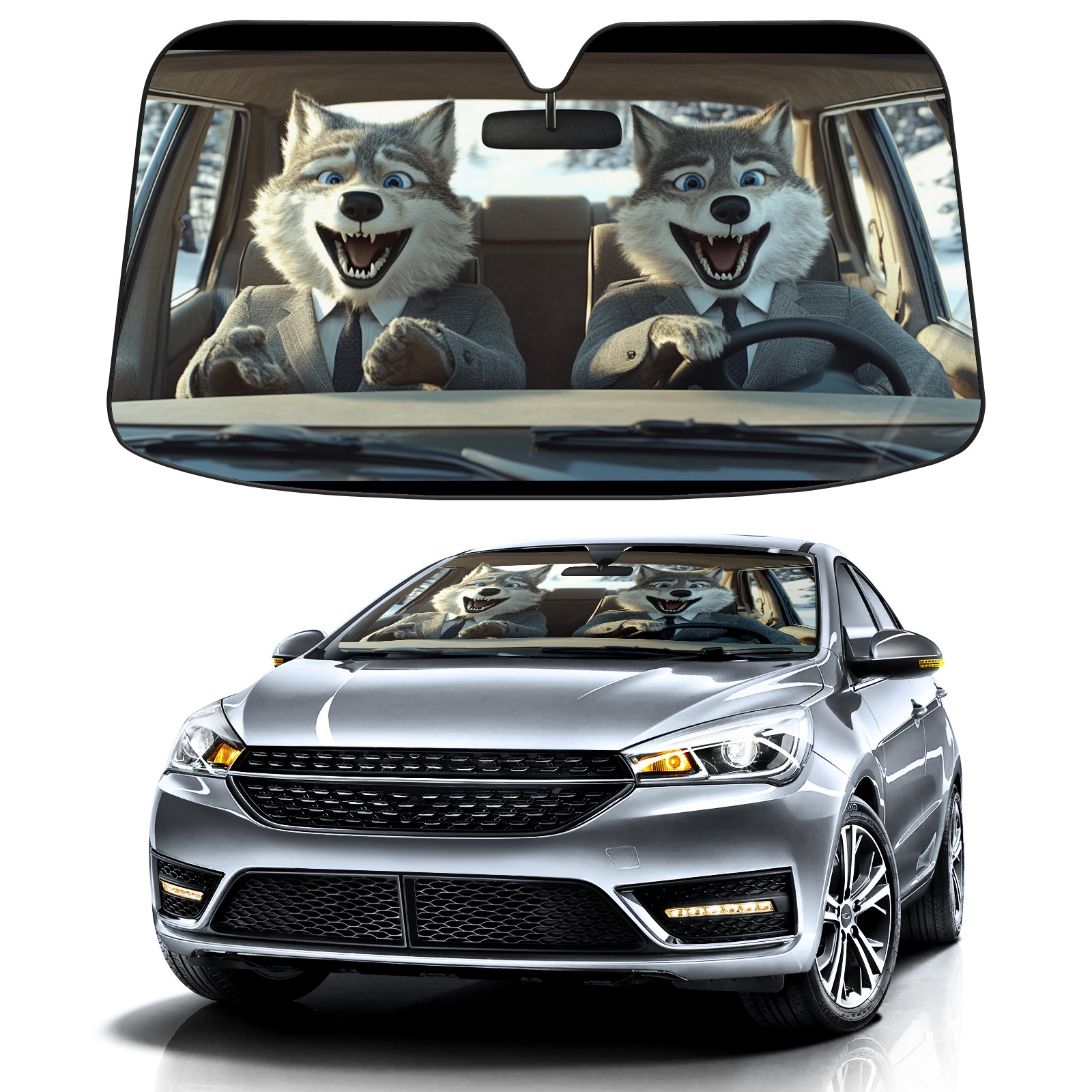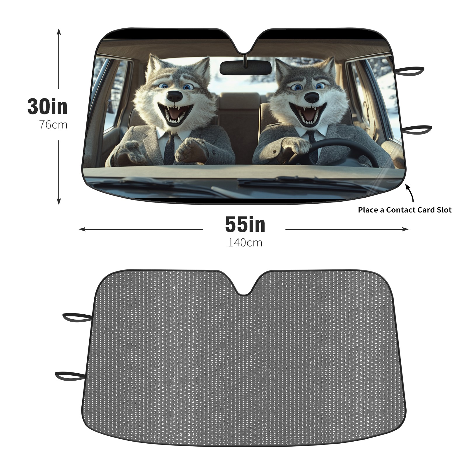 Aluminum Foil Polyester Car Sunshade Pad, Efficient Heat Insulation And Sun Protection ArtifactCute Wolf