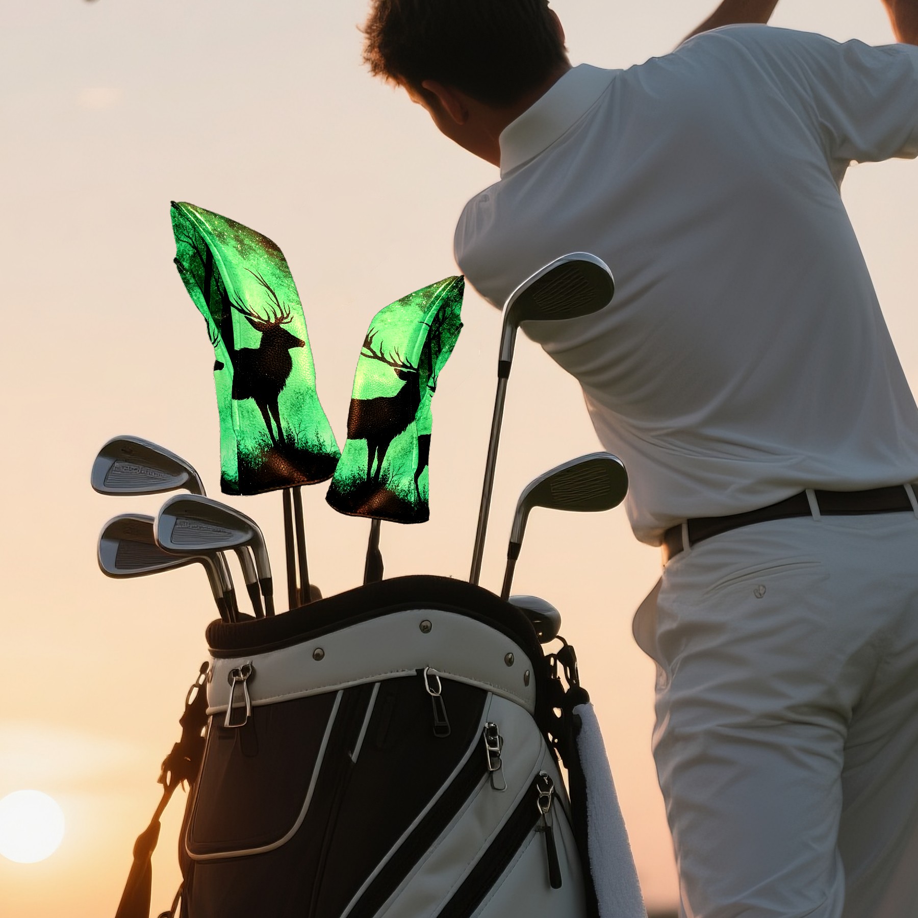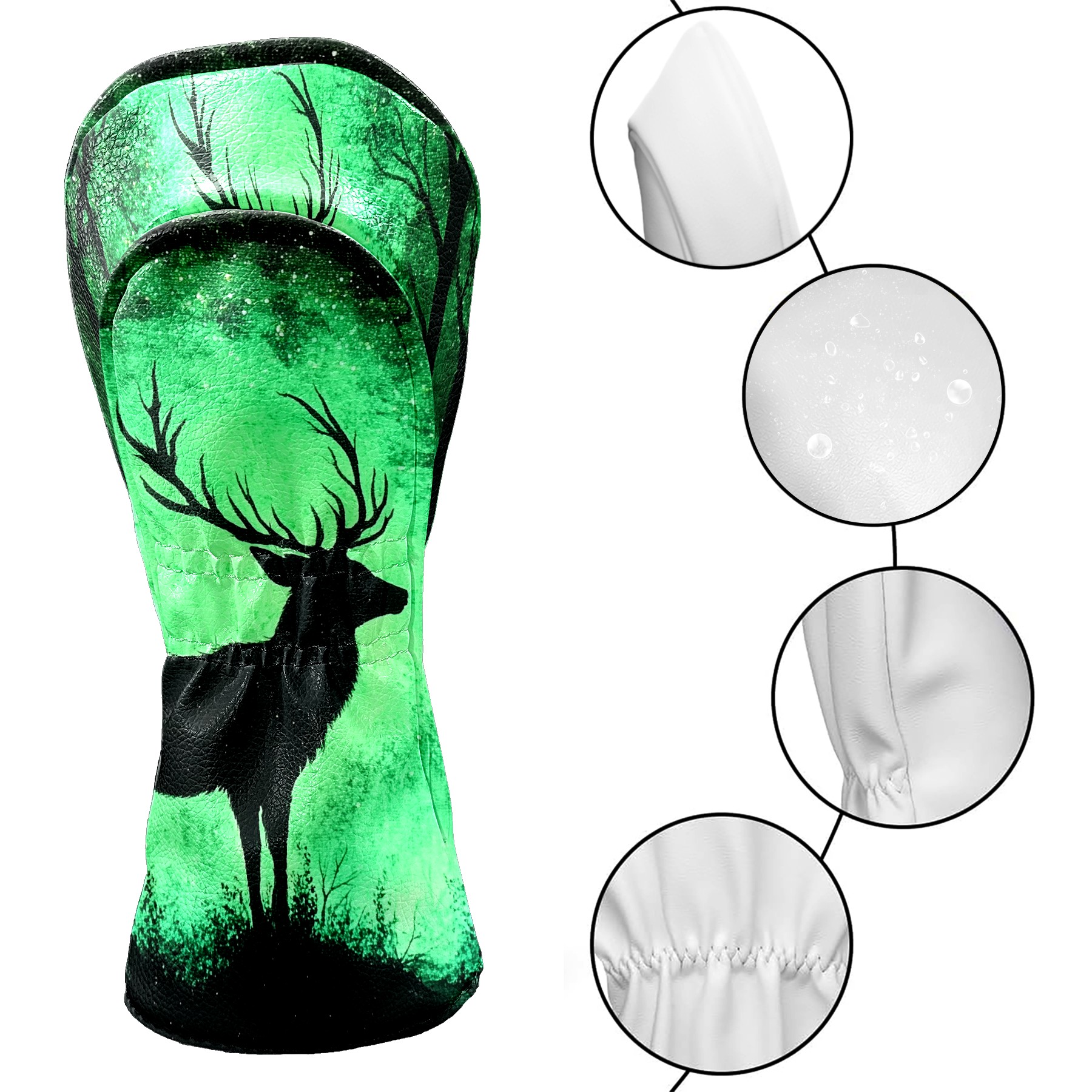 Golf Club Head Cover Premium Leather Driver Headcover, Golf Head Covers for Woods and Driver Waterproof Golf Headcovers with Anti-Scratch Lining for Men Women (Deer)