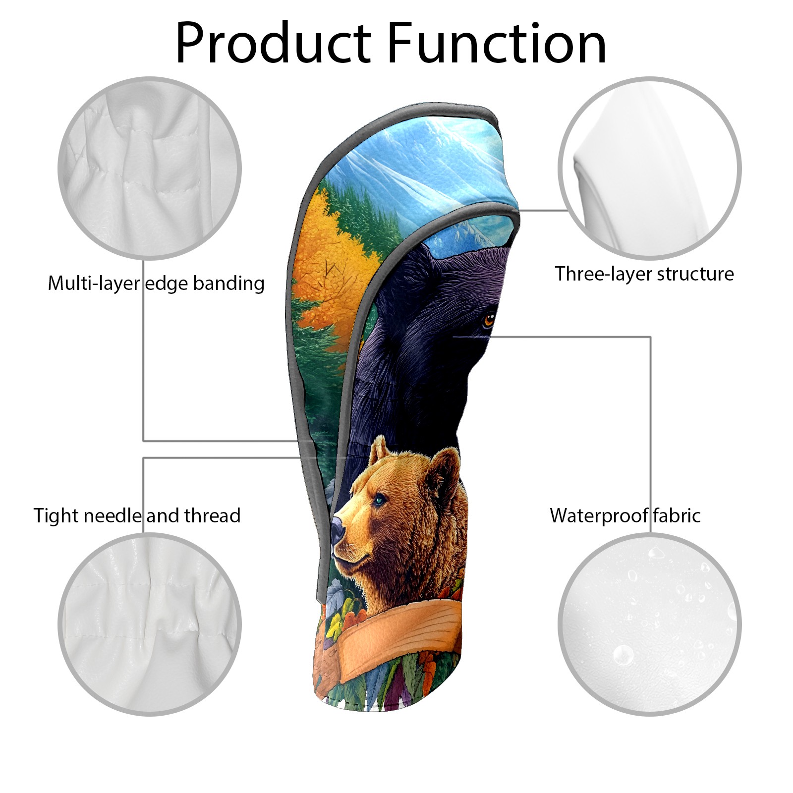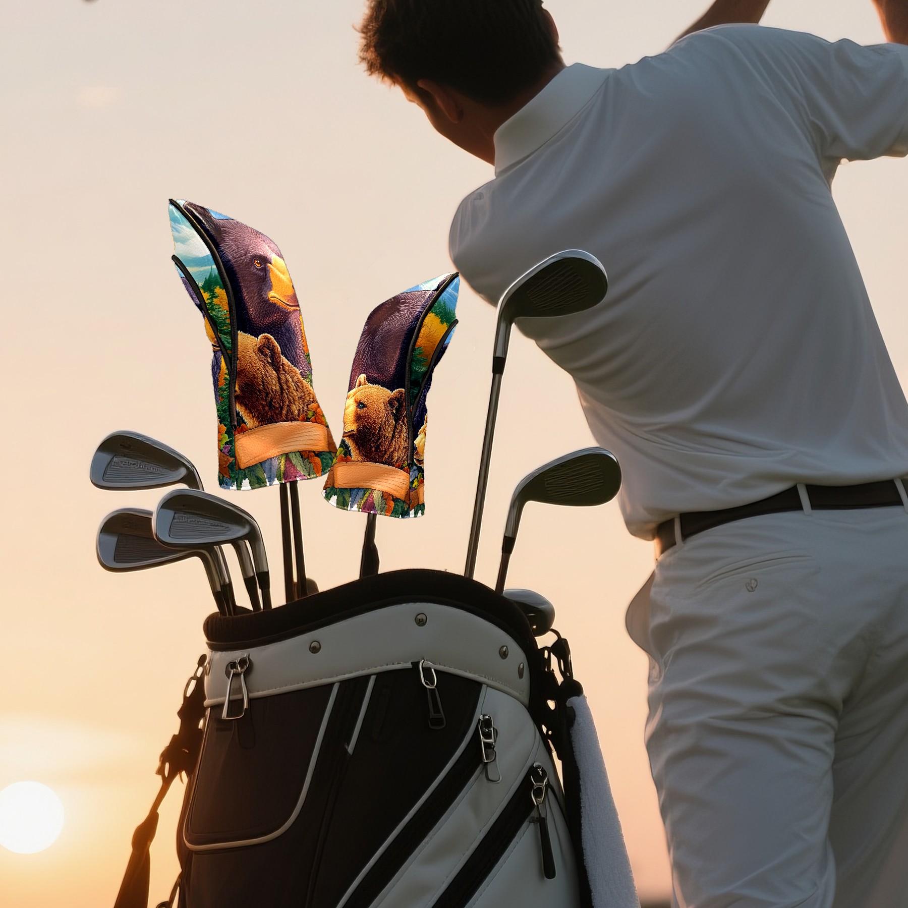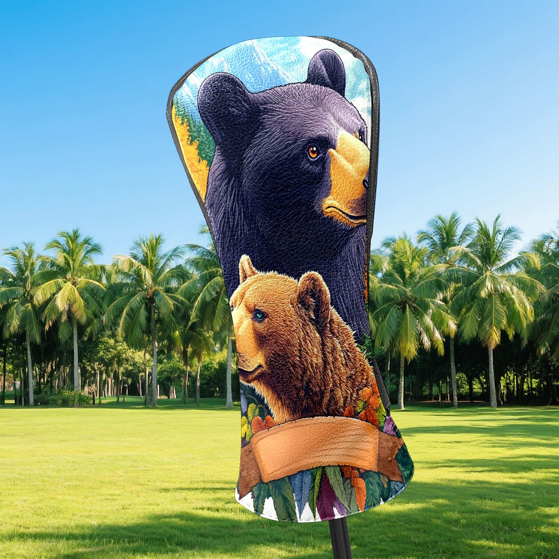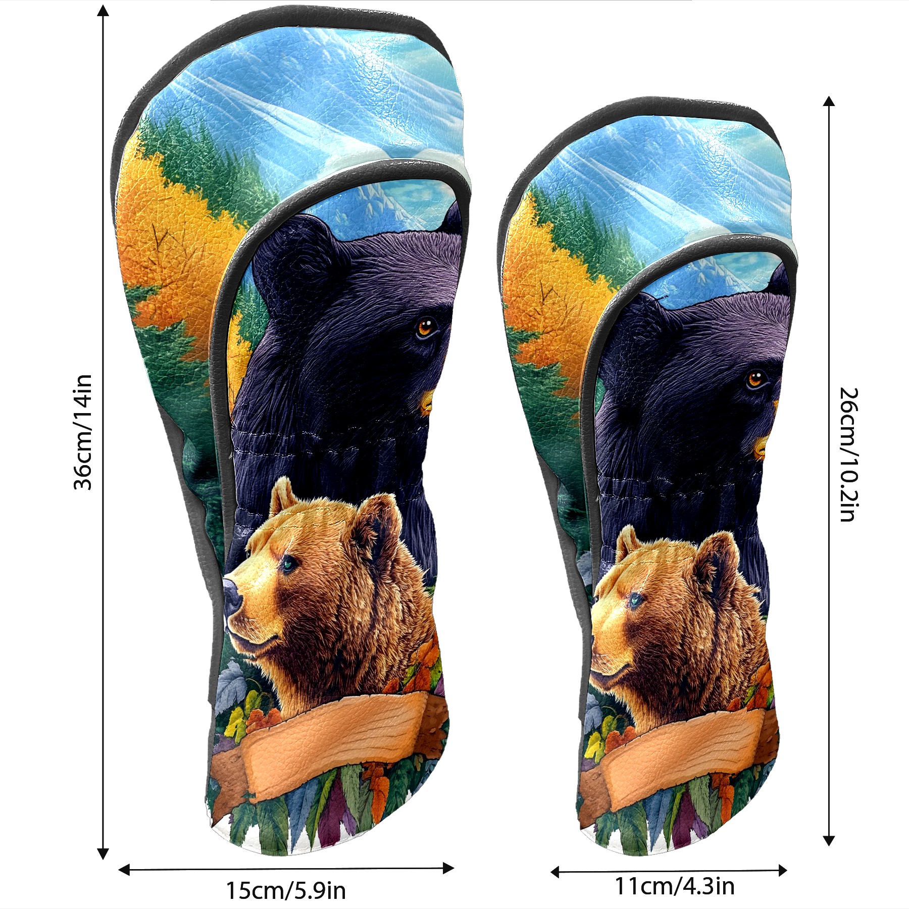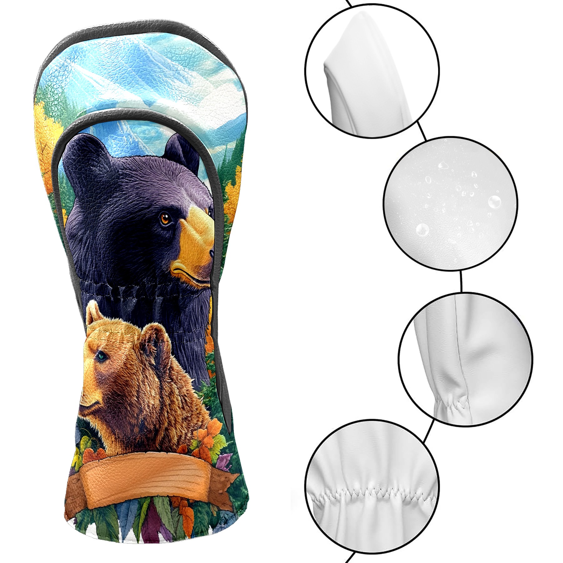Golf Club Head Cover Premium Leather Driver Headcover, Golf Head Covers for Woods and Driver Waterproof Golf Headcovers with Anti-Scratch Lining for Men Women (Bears)