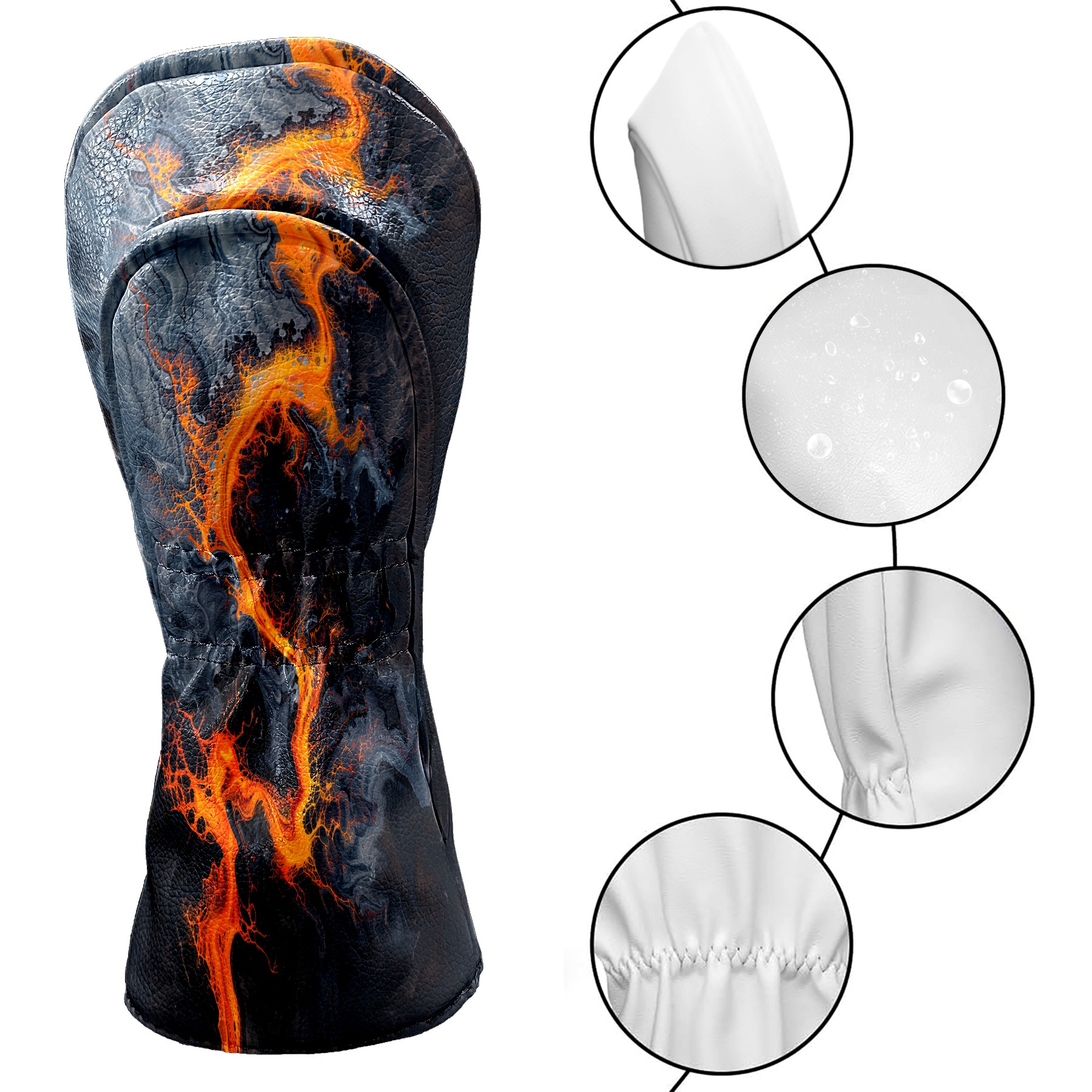 Golf Club Head Cover Premium Leather Driver Headcover, Golf Head Covers for Woods and Driver Waterproof Golf Headcovers with Anti-Scratch Lining for Men Women (Orange Black Liquid)