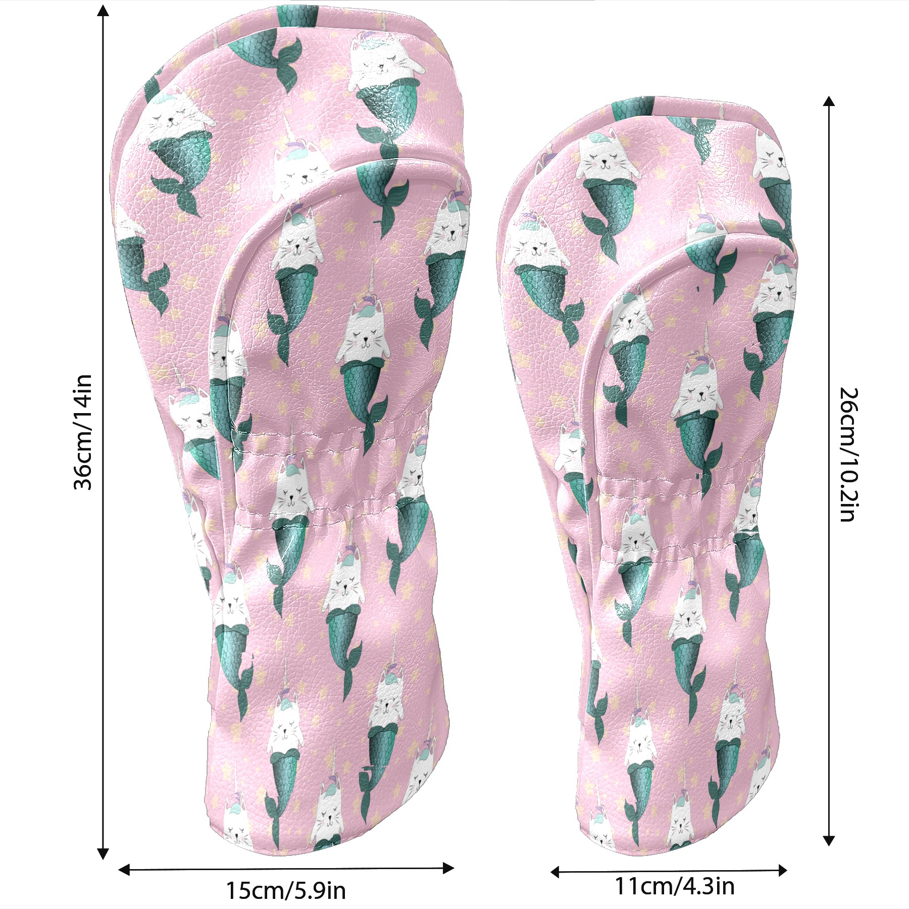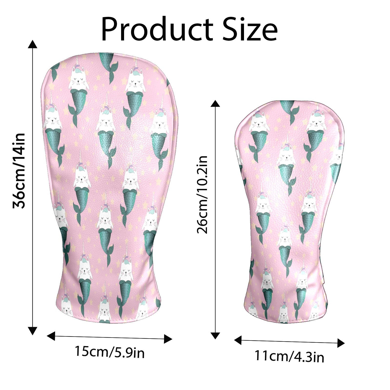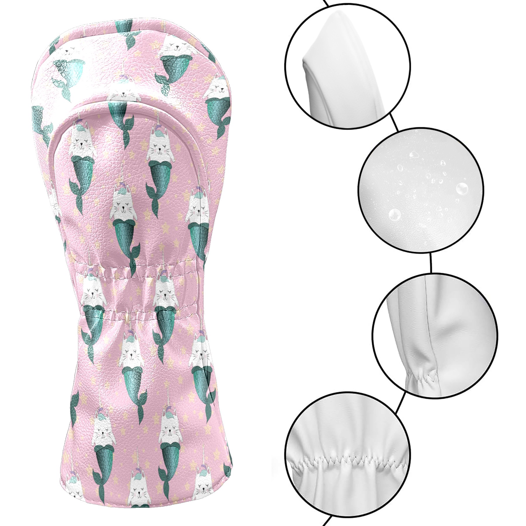 Golf Head Covers Driver Club Head Cover for Drivers Fairway Woods and Hybrid Clubs, PU Leather Golf Club Head Covers for Men and Women Cute Mermaid Cat