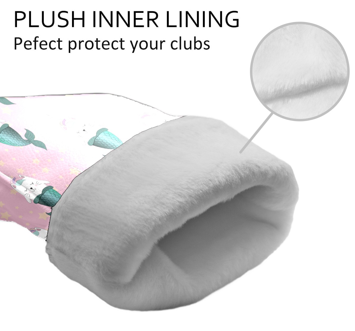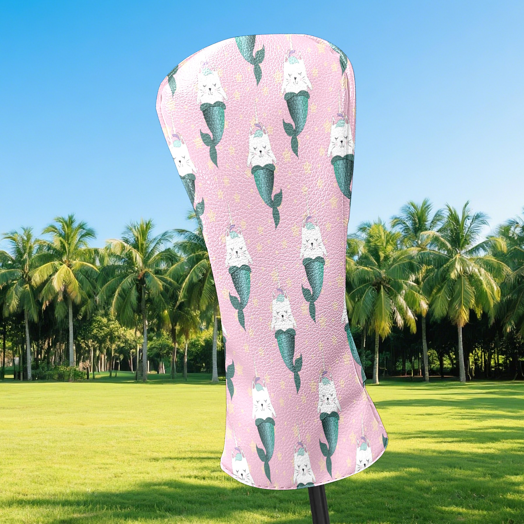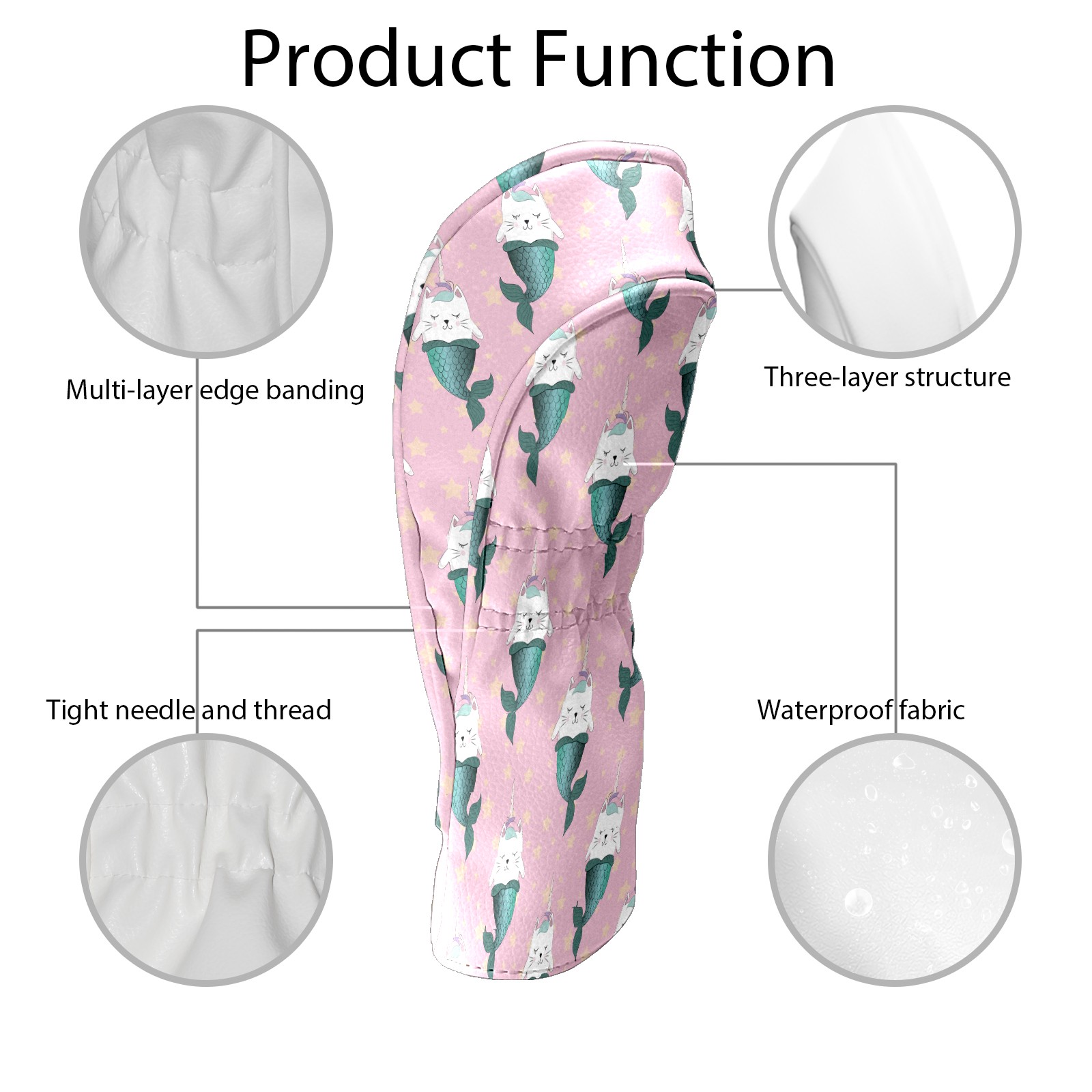 Golf Head Covers Driver Club Head Cover for Drivers Fairway Woods and Hybrid Clubs, PU Leather Golf Club Head Covers for Men and Women Cute Mermaid Cat