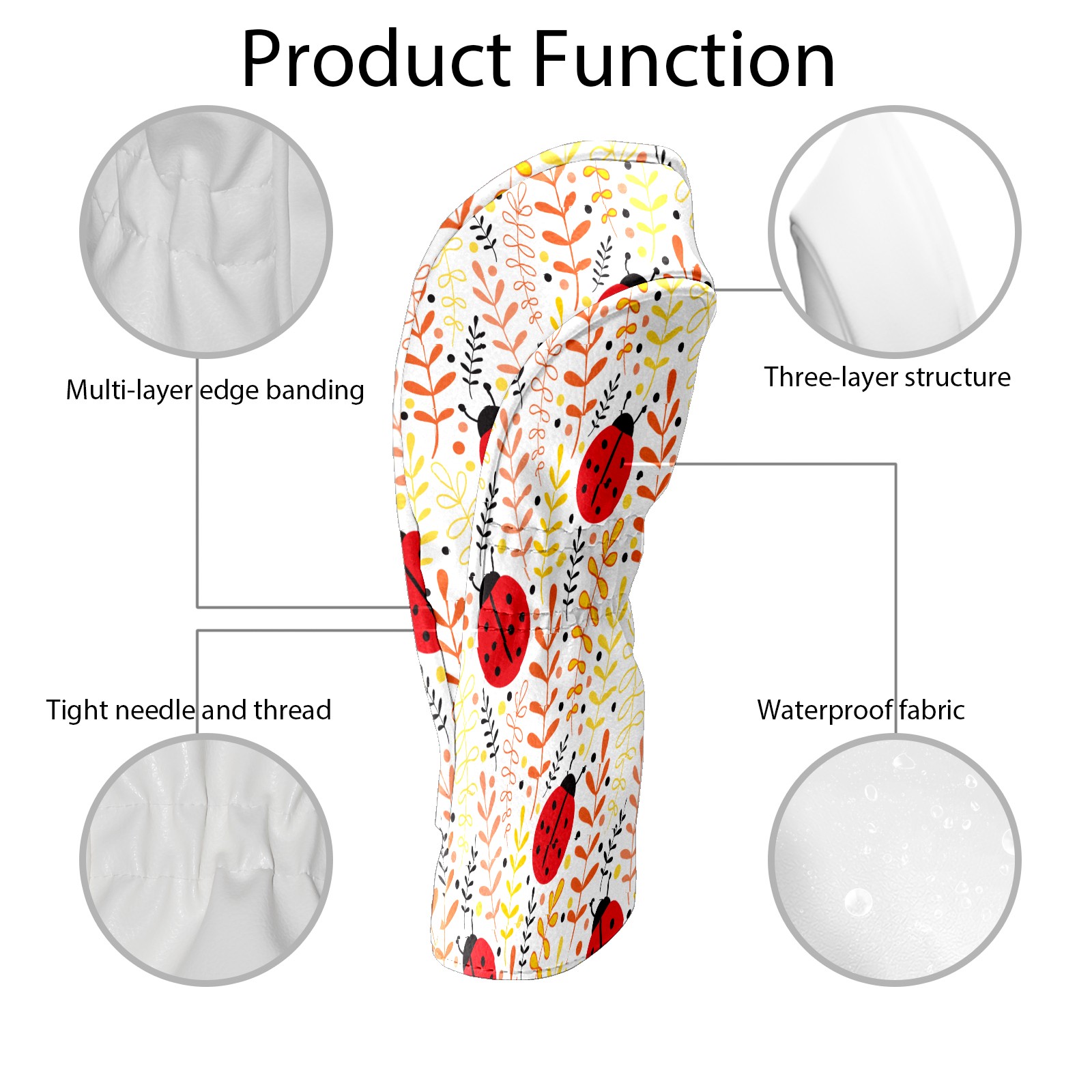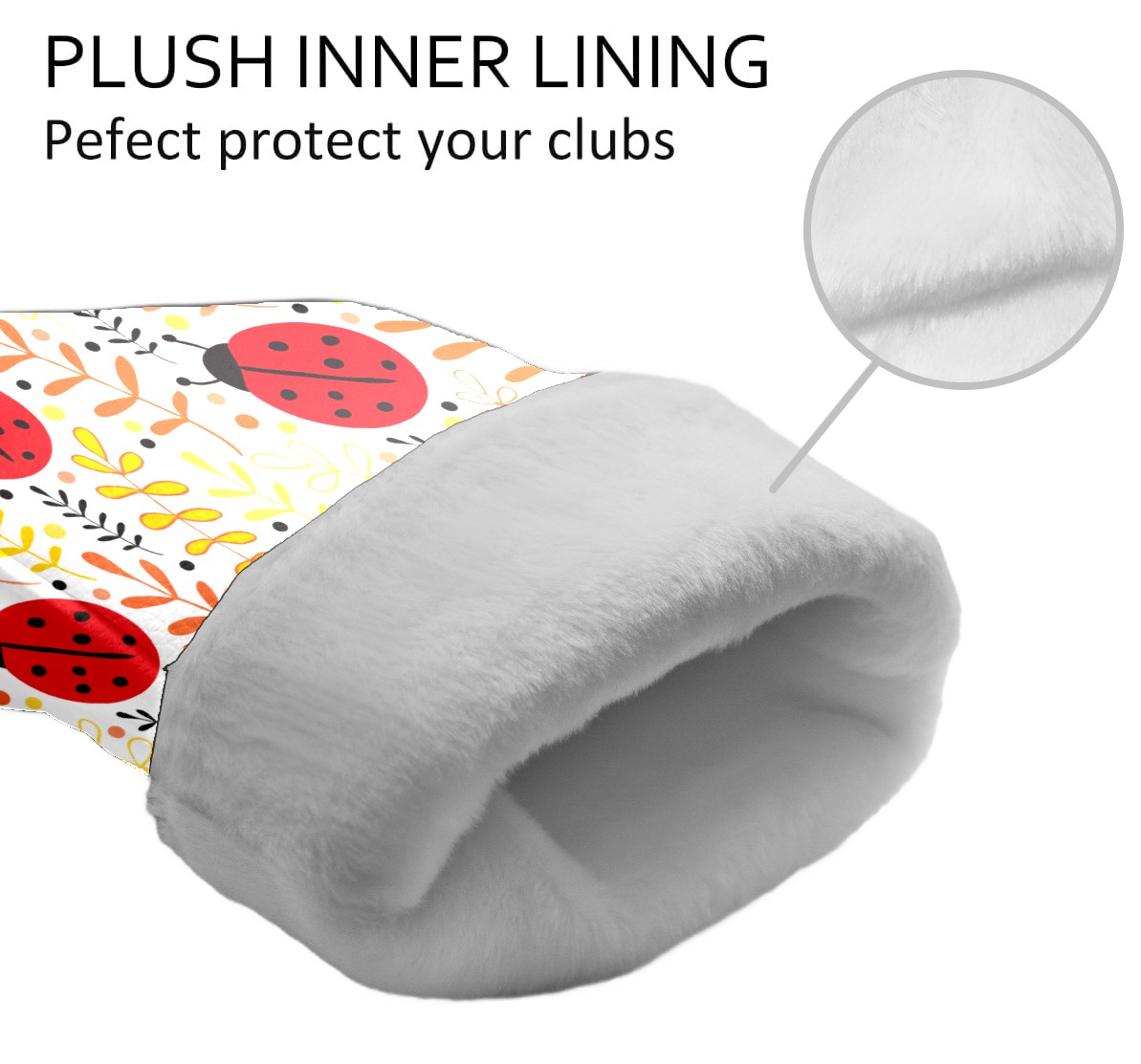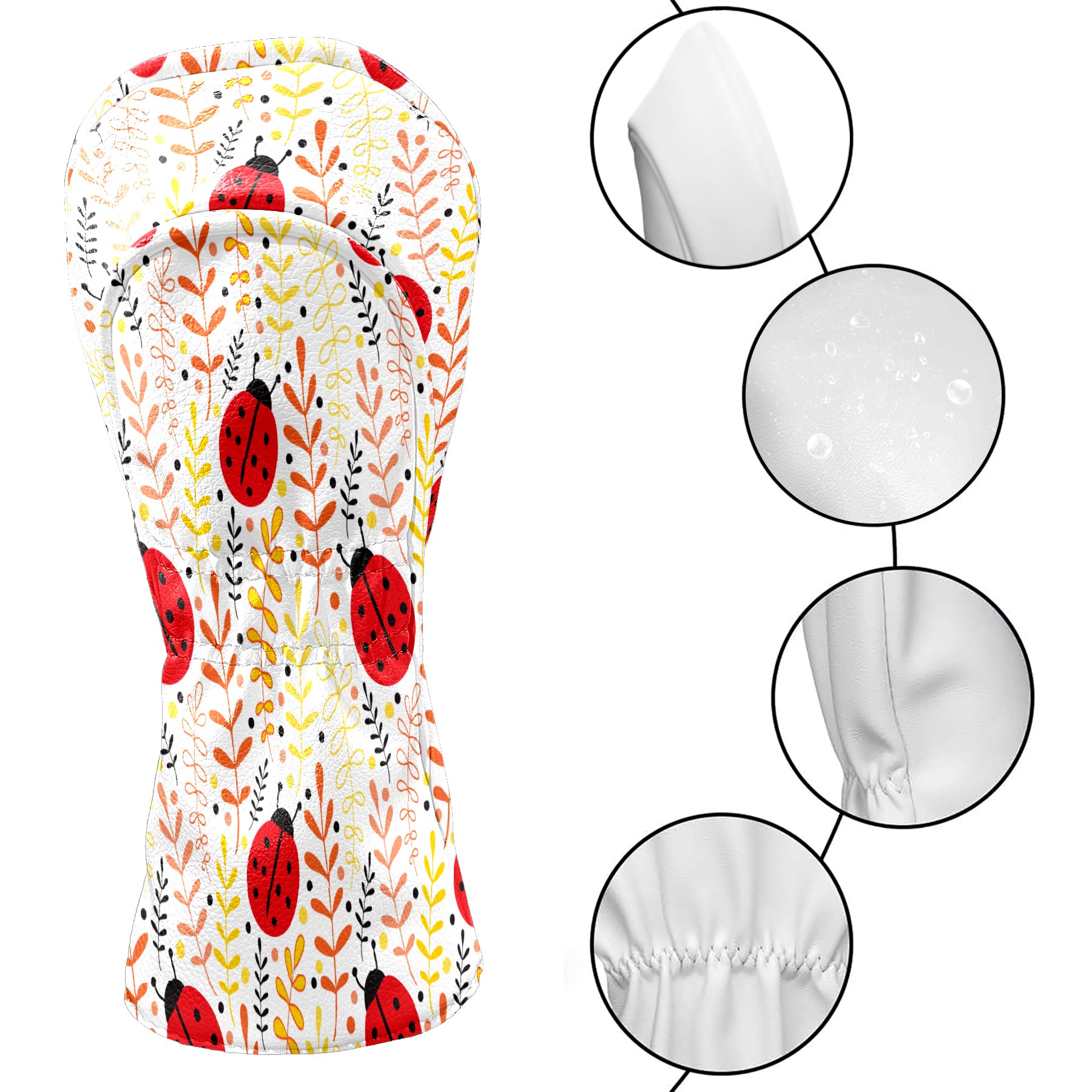 Golf Head Covers Driver Club Head Cover for Drivers Fairway Woods and Hybrid Clubs, PU Leather Golf Club Head Covers for Men and Women Ladybug