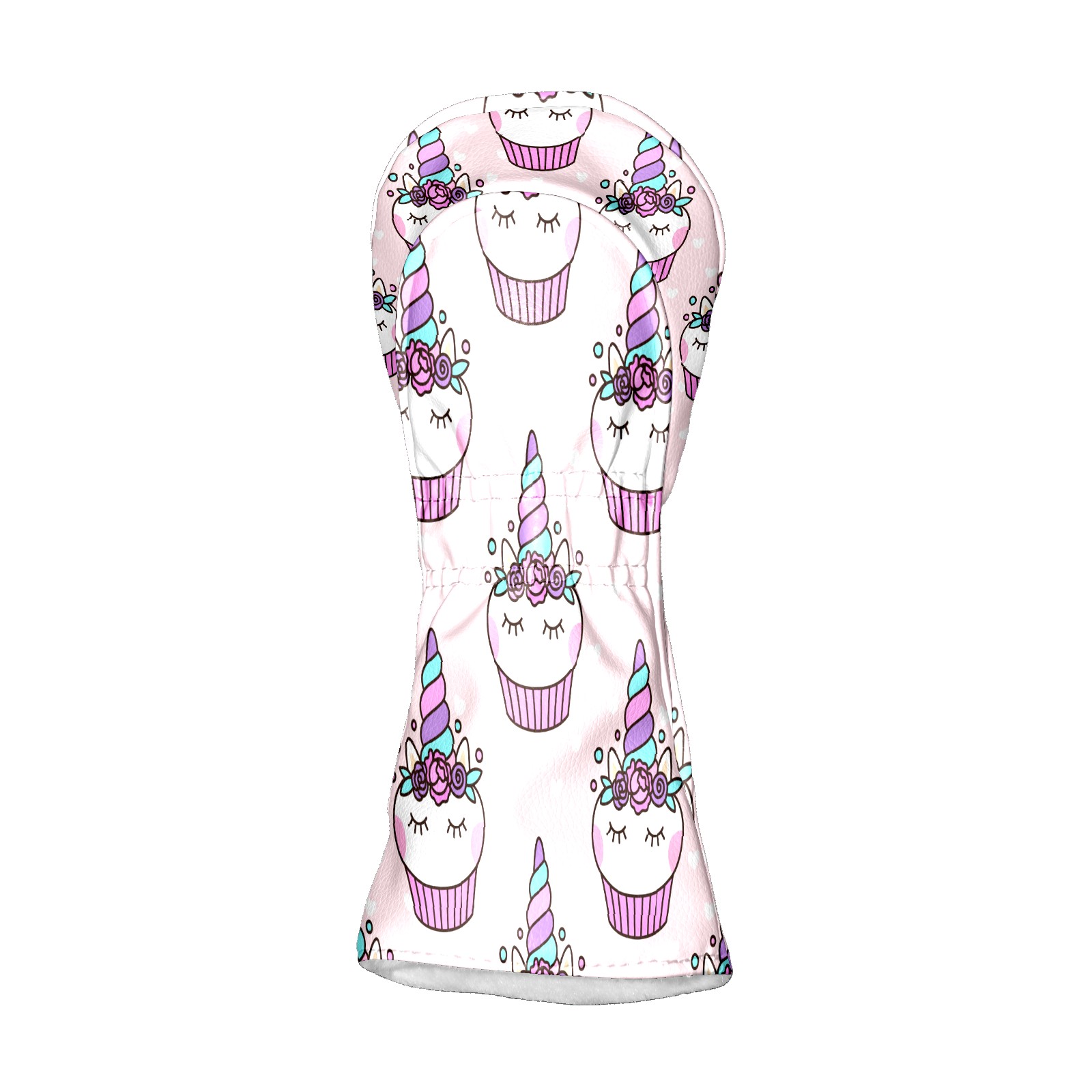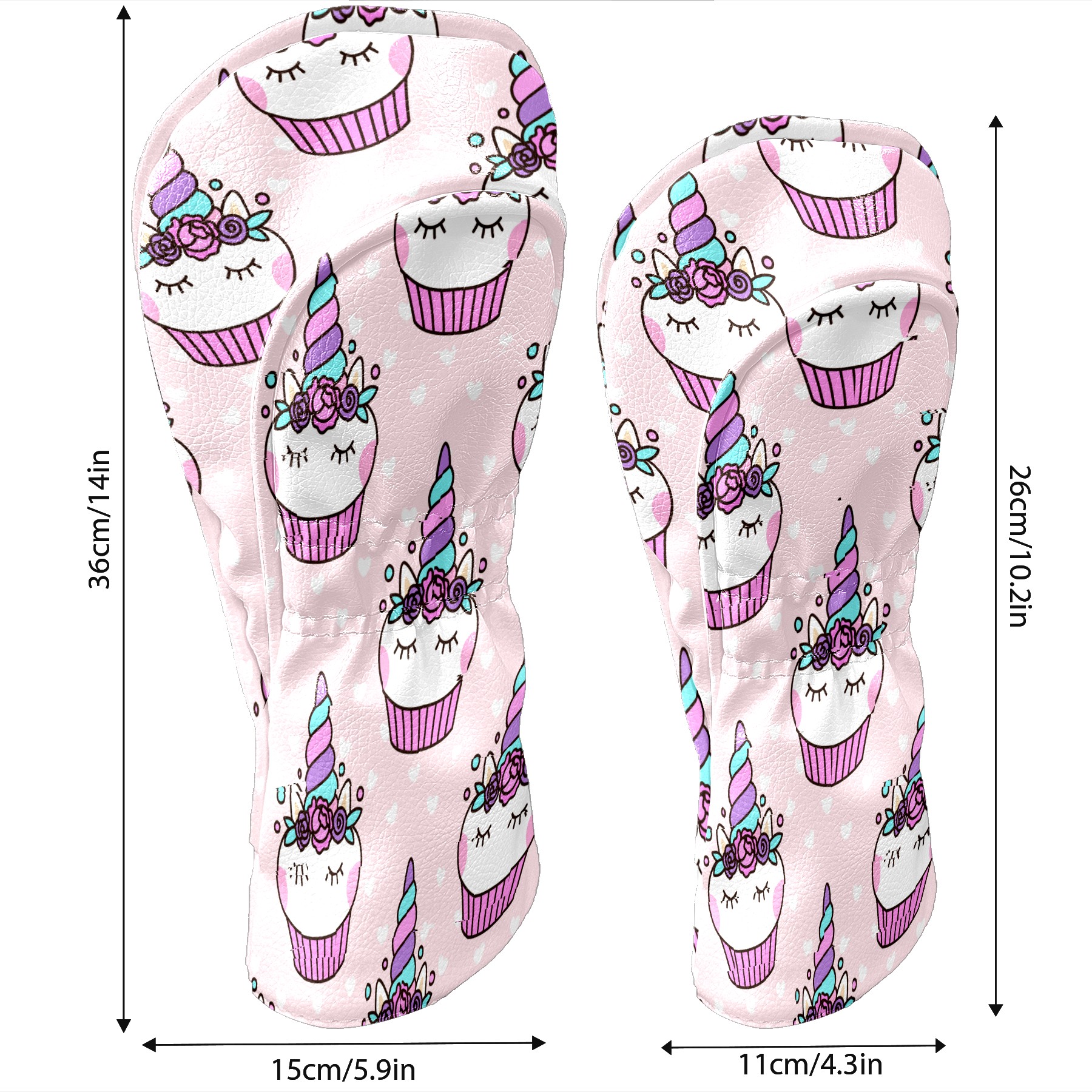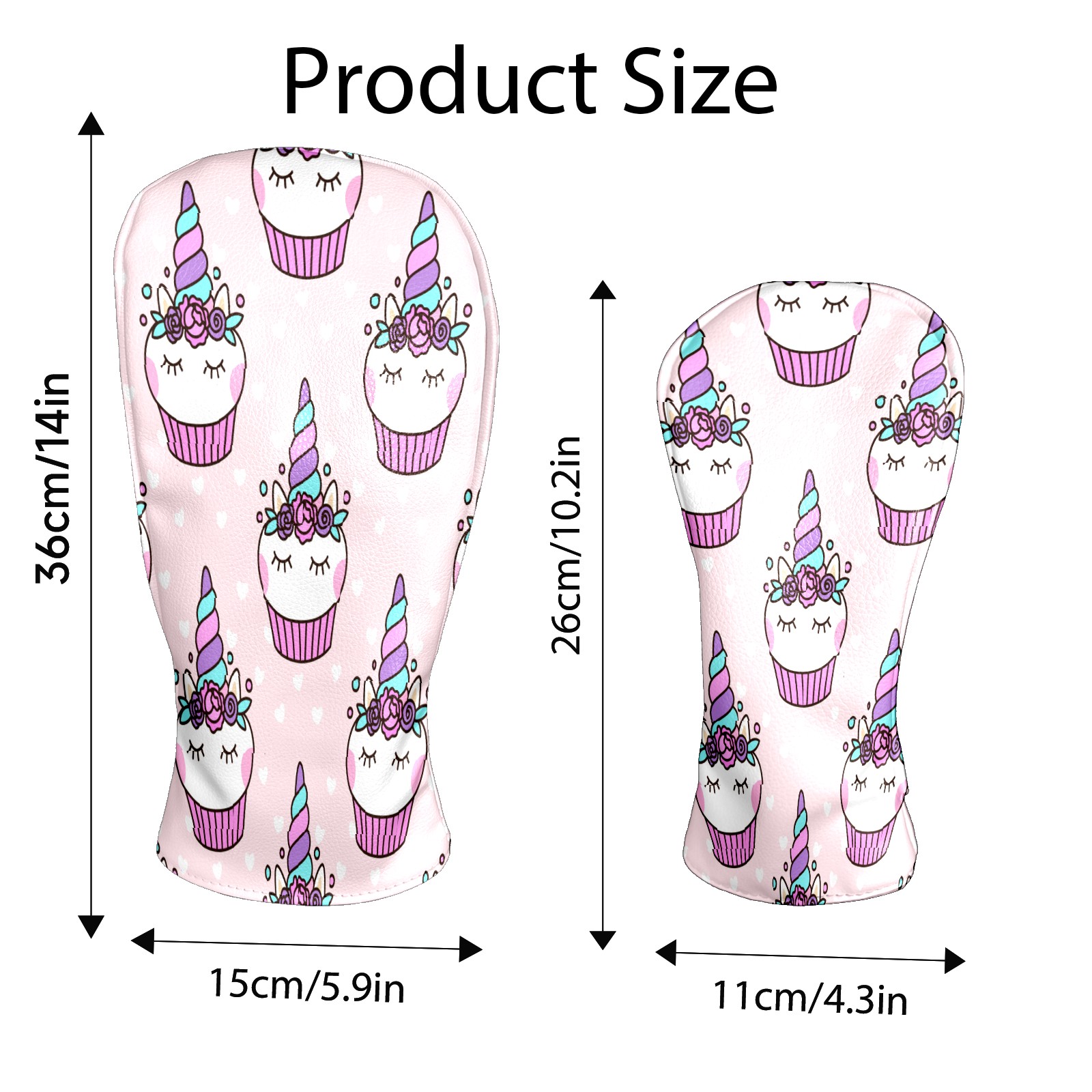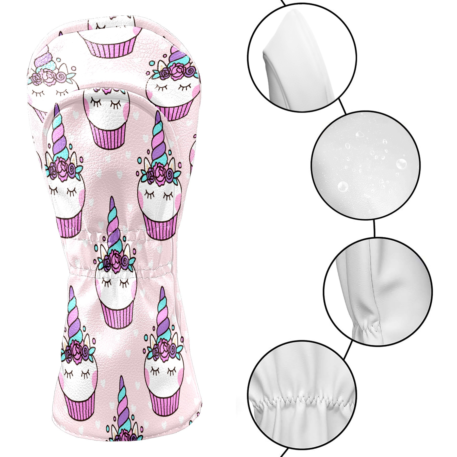 Golf Head Covers Driver Club Head Cover for Drivers Fairway Woods and Hybrid Clubs, PU Leather Golf Club Head Covers for Men and Women Cute Unicorn Cupcake Pattern