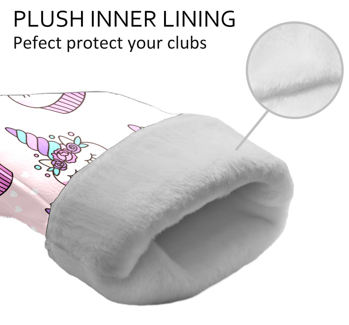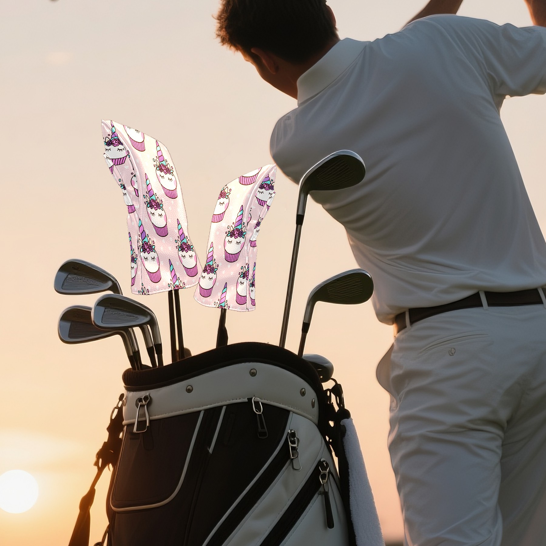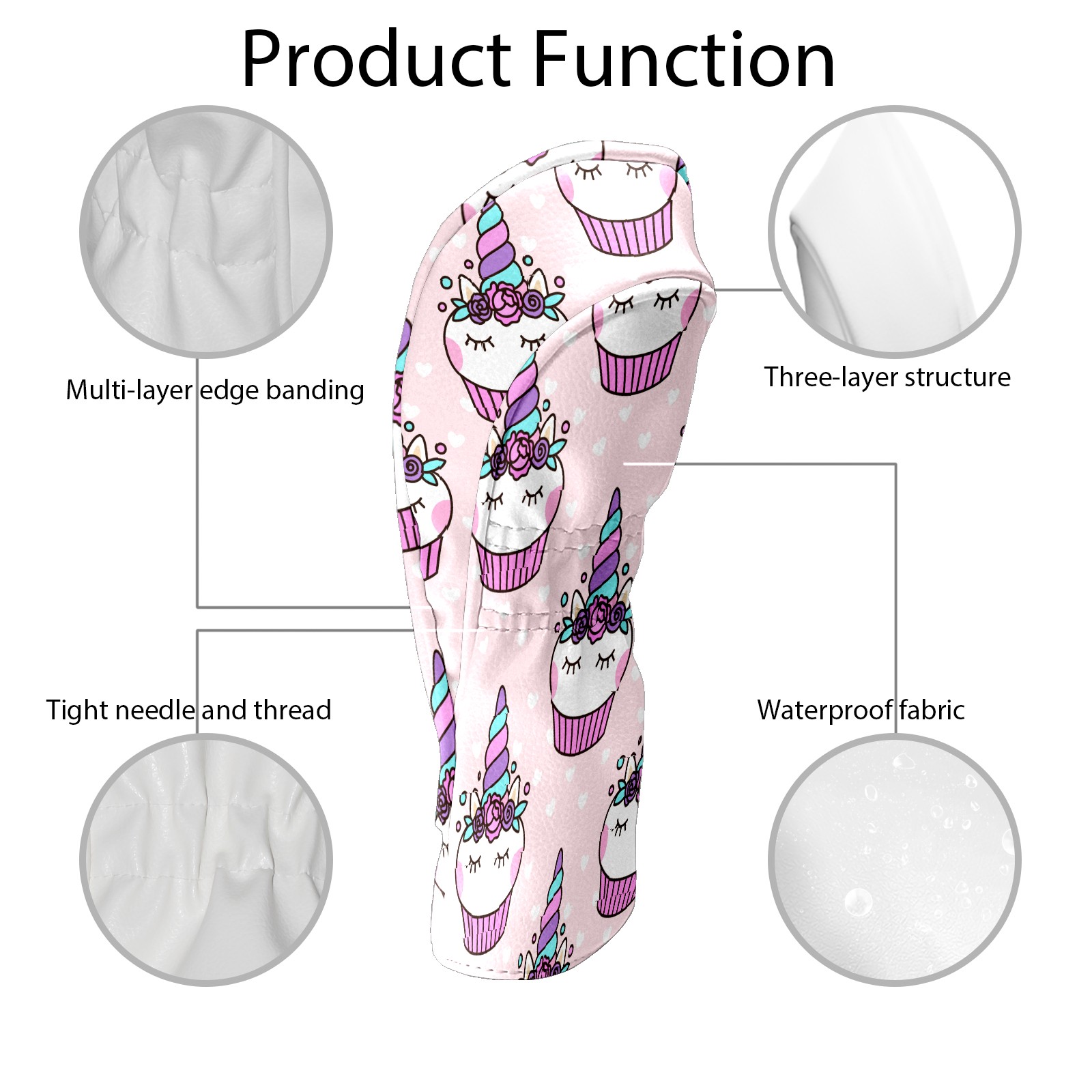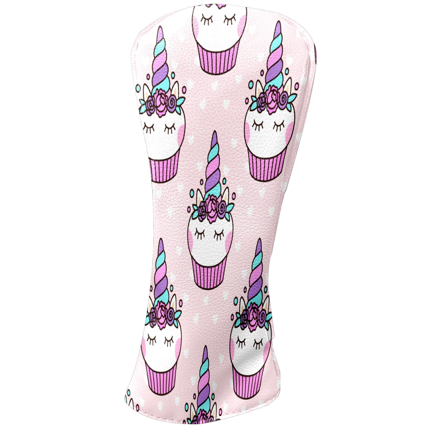 Golf Head Covers Driver Club Head Cover for Drivers Fairway Woods and Hybrid Clubs, PU Leather Golf Club Head Covers for Men and Women Cute Unicorn Cupcake Pattern