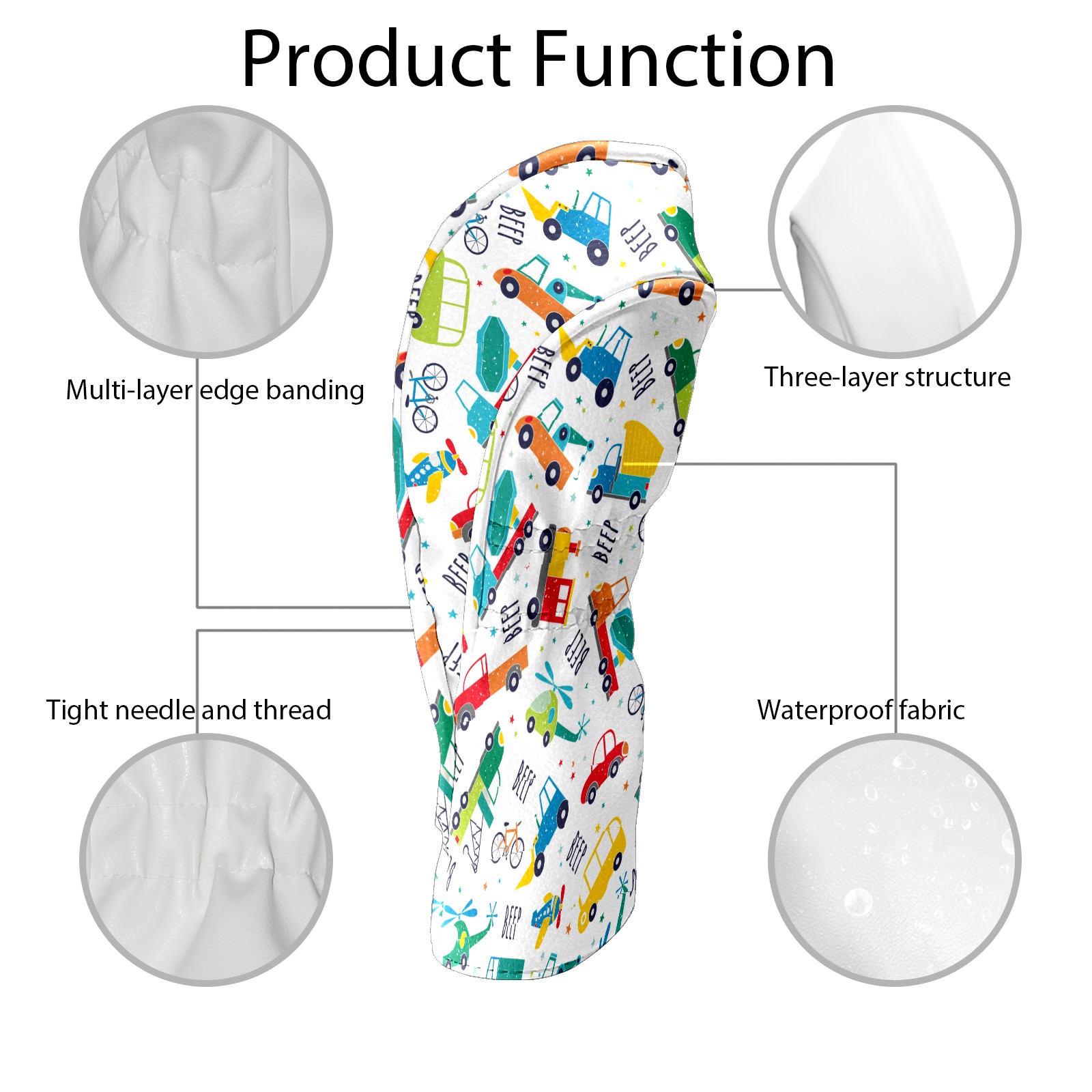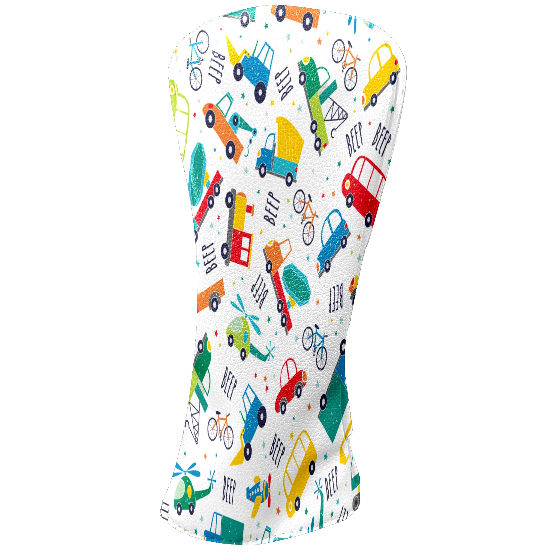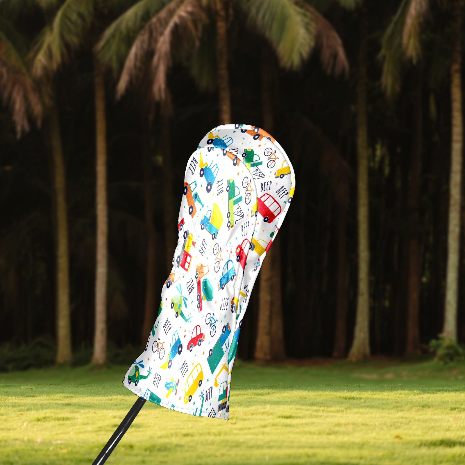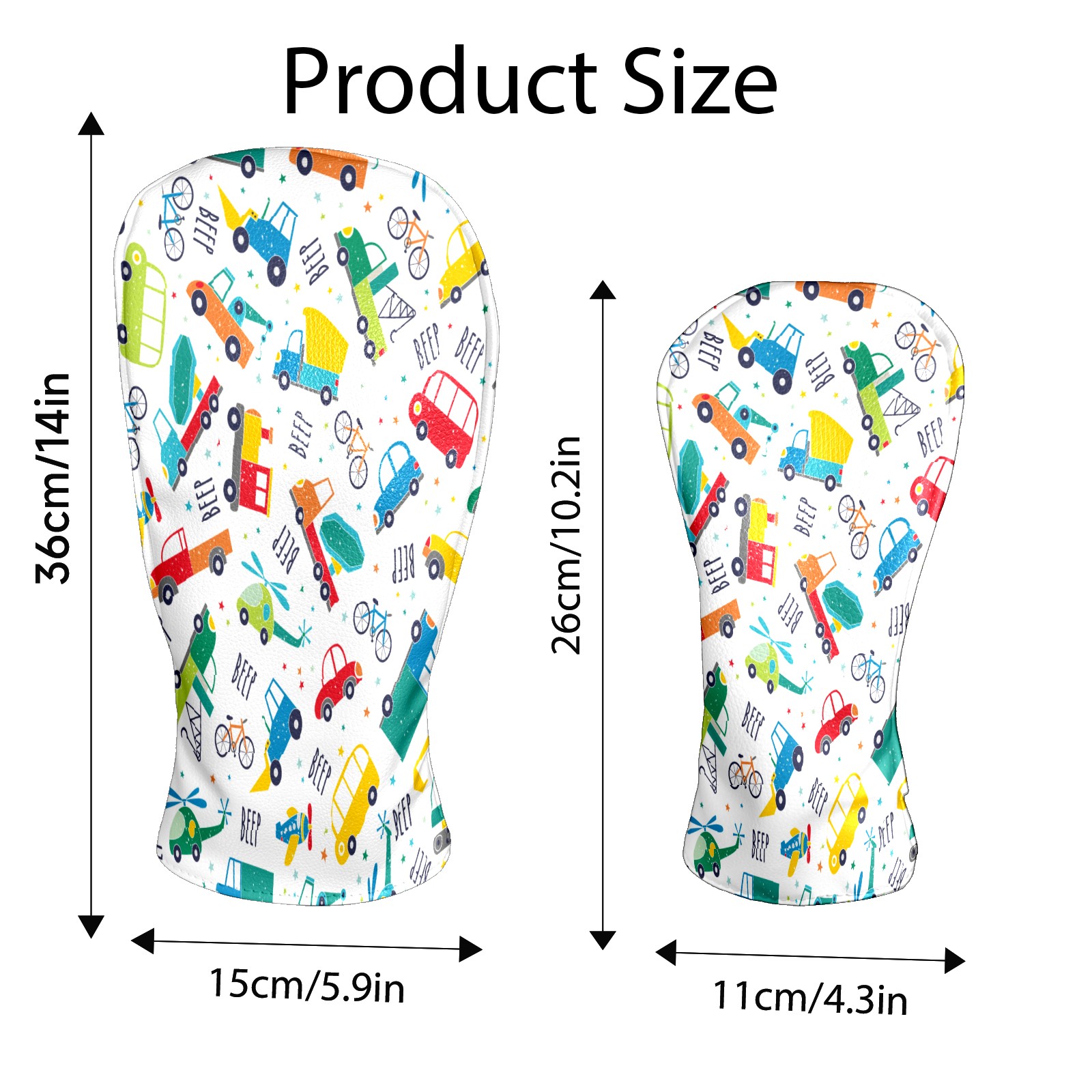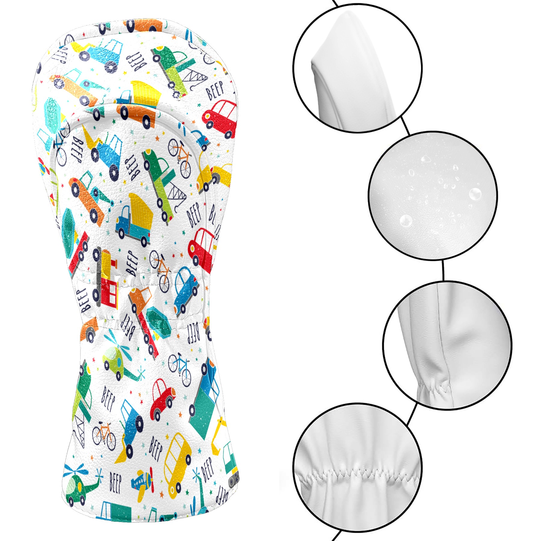 Golf Head Covers Driver Club Head Cover for Drivers Fairway Woods and Hybrid Clubs, PU Leather Golf Club Head Covers for Men and Women Cartoon Transport Trave Bus Bicyle Pattern