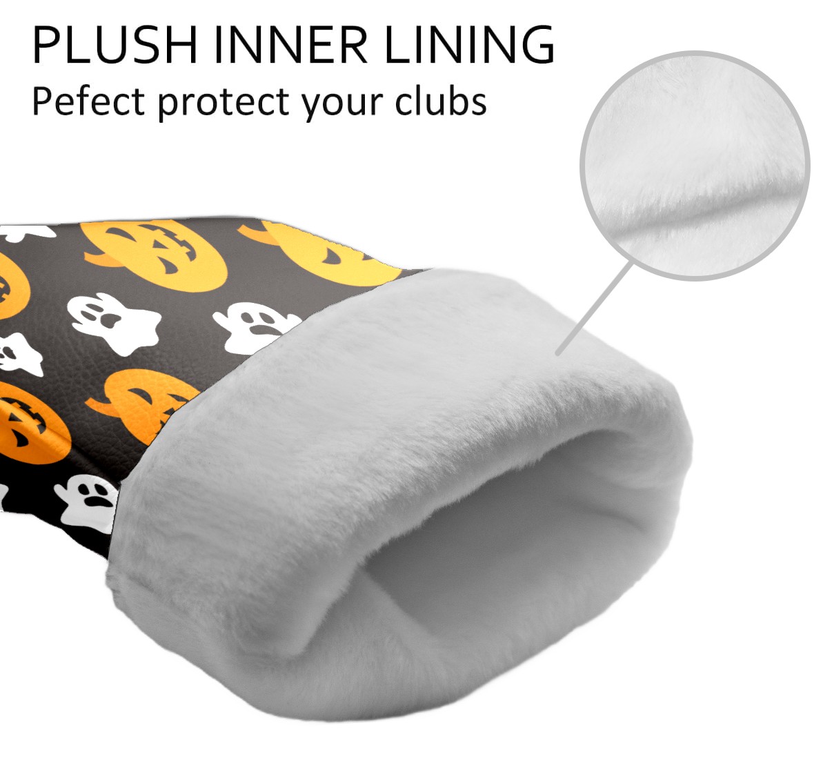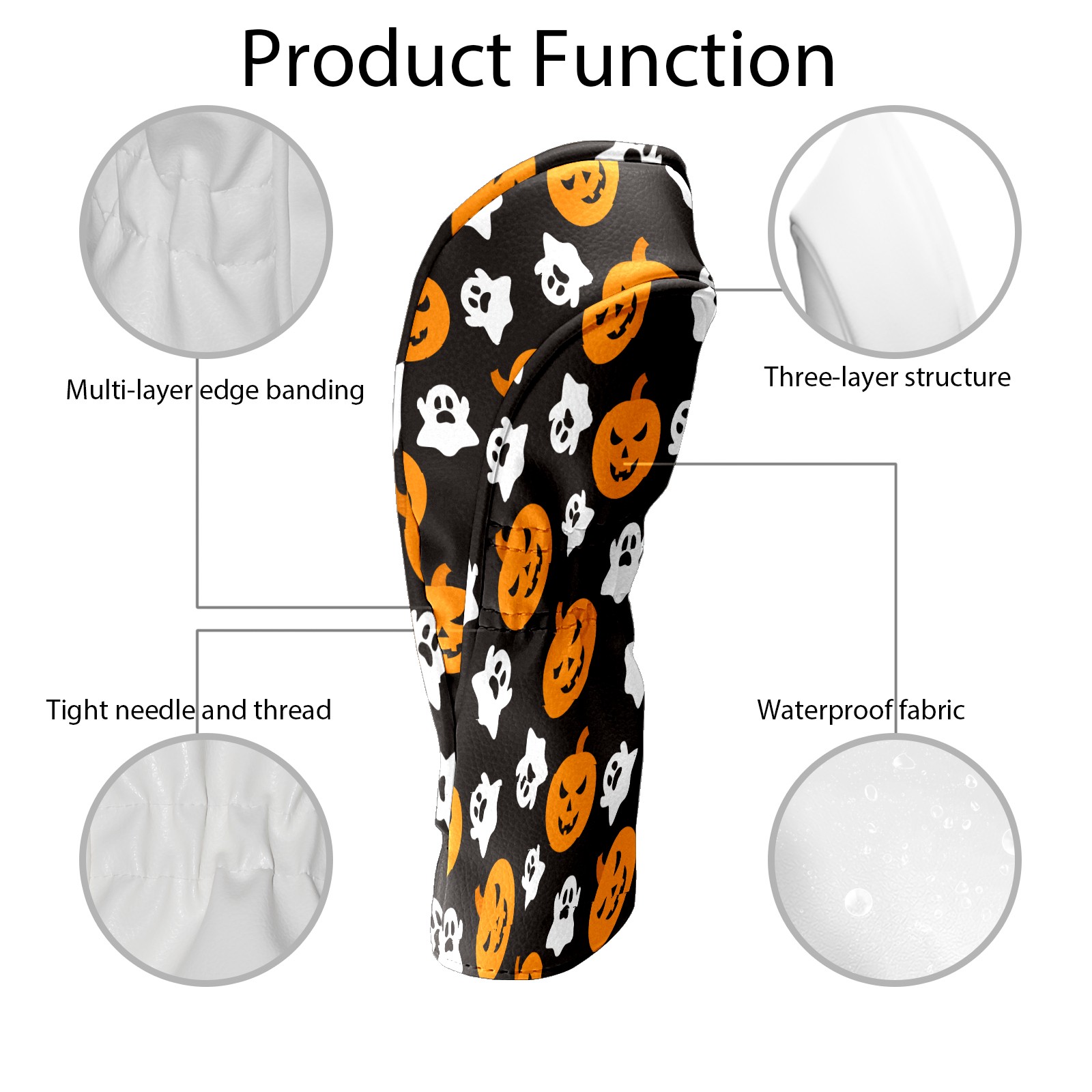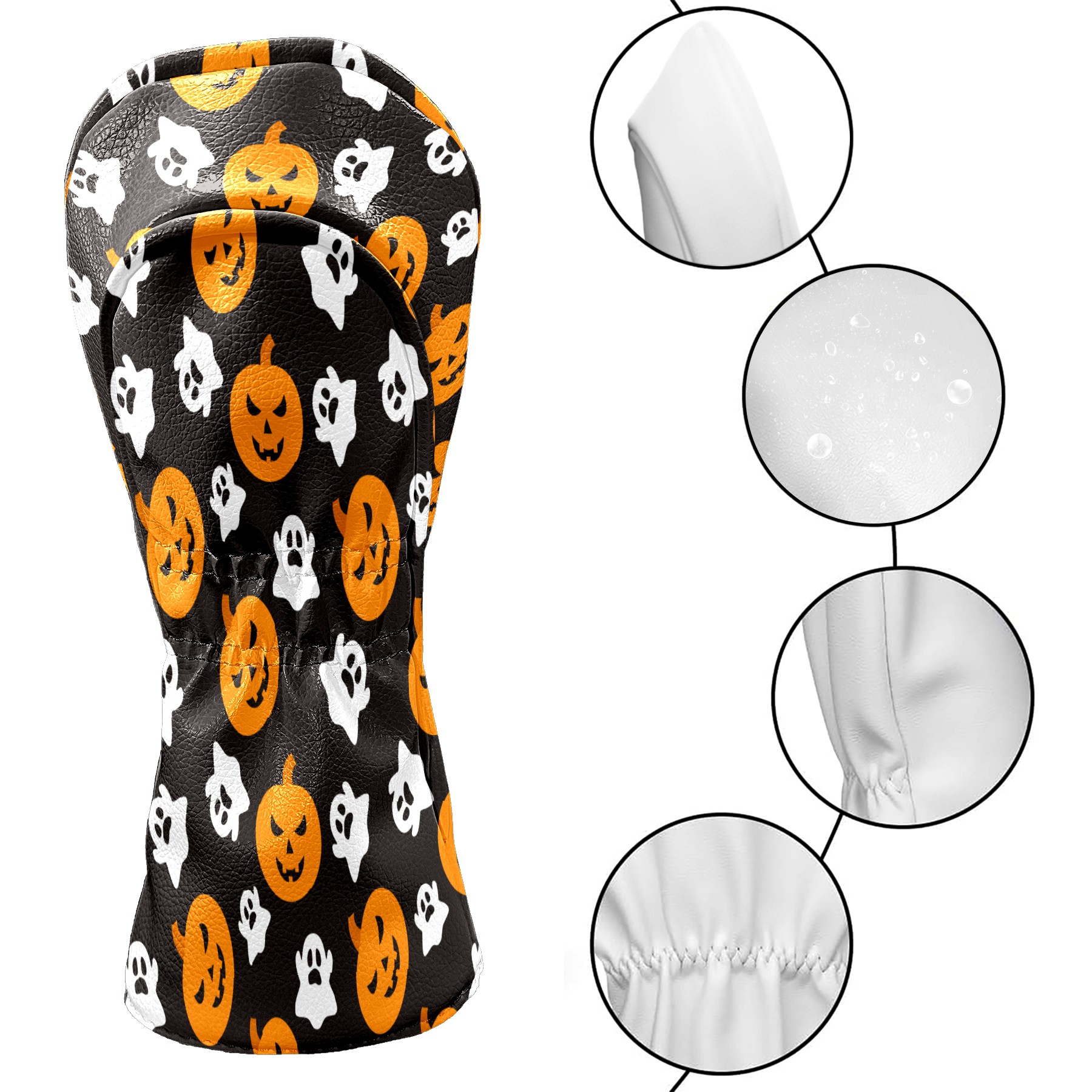 Golf Head Covers Driver Club Head Cover for Drivers Fairway Woods and Hybrid Clubs, PU Leather Golf Club Head Covers for Men and Women Halloween Funny Pumpkin Ghost