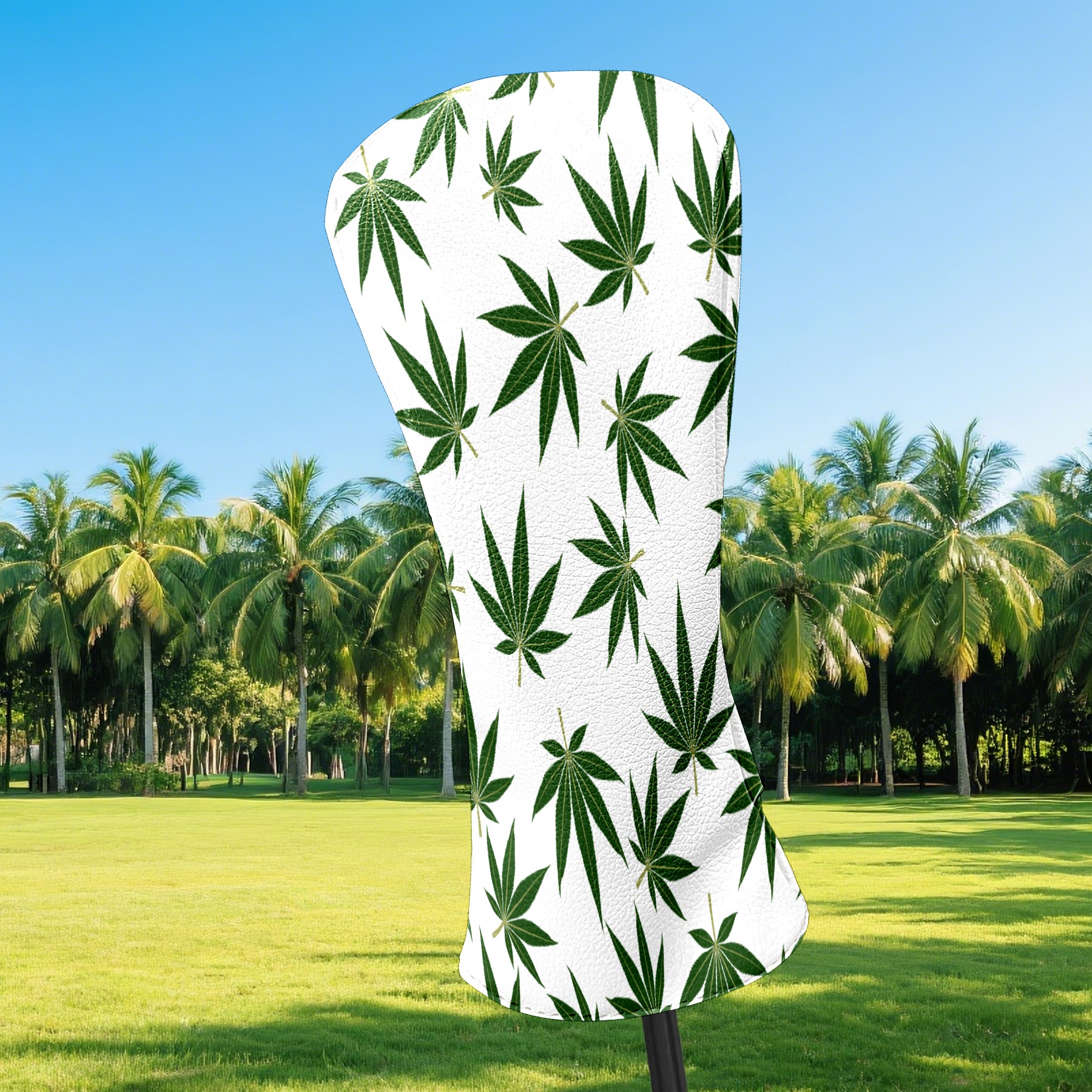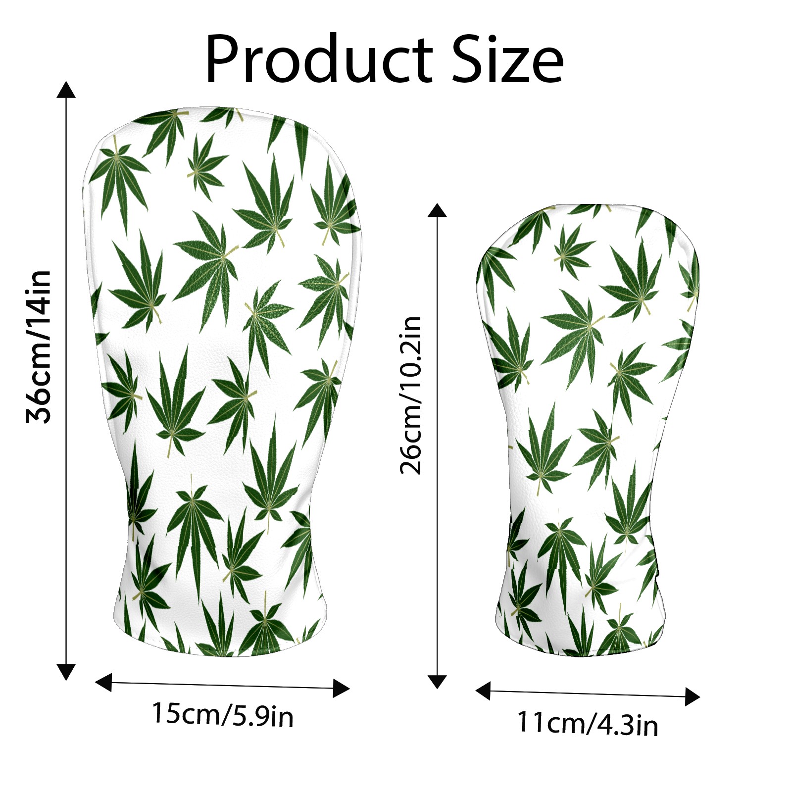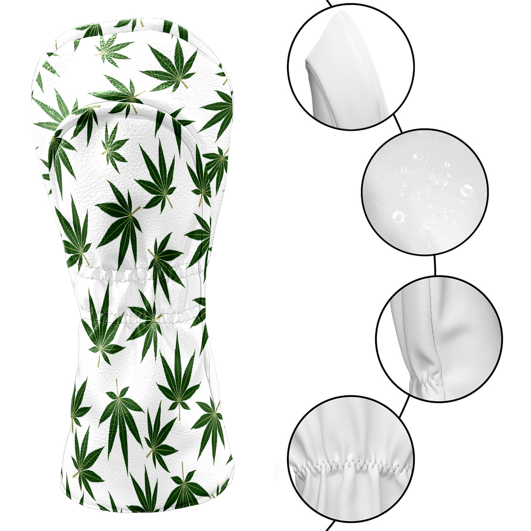 Golf Head Covers Driver Club Head Cover for Drivers Fairway Woods and Hybrid Clubs, PU Leather Golf Club Head Covers for Men and Women Green Cannabis Marijuana Leafs Pattern