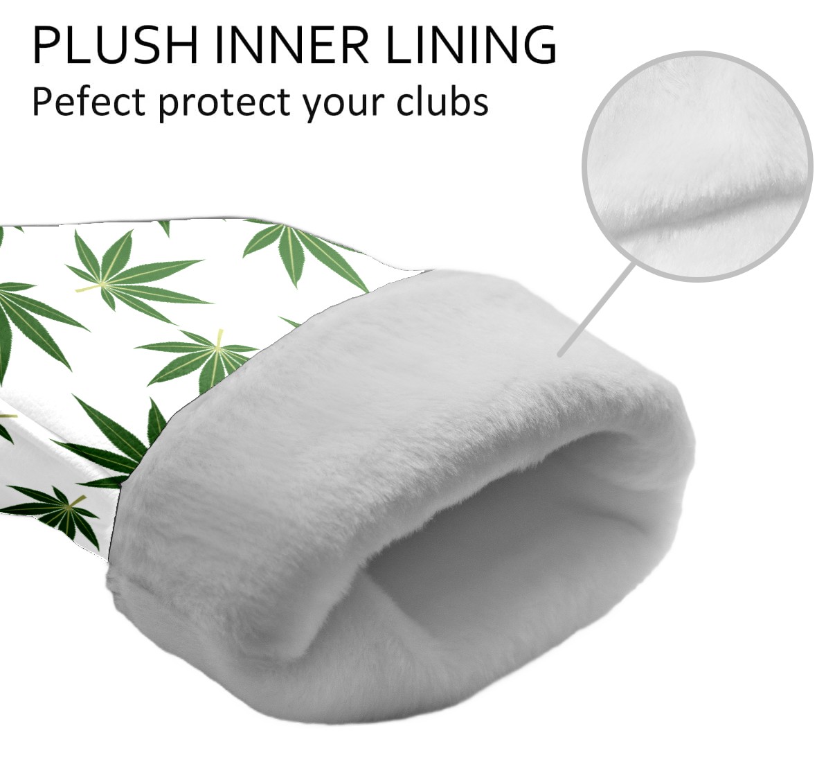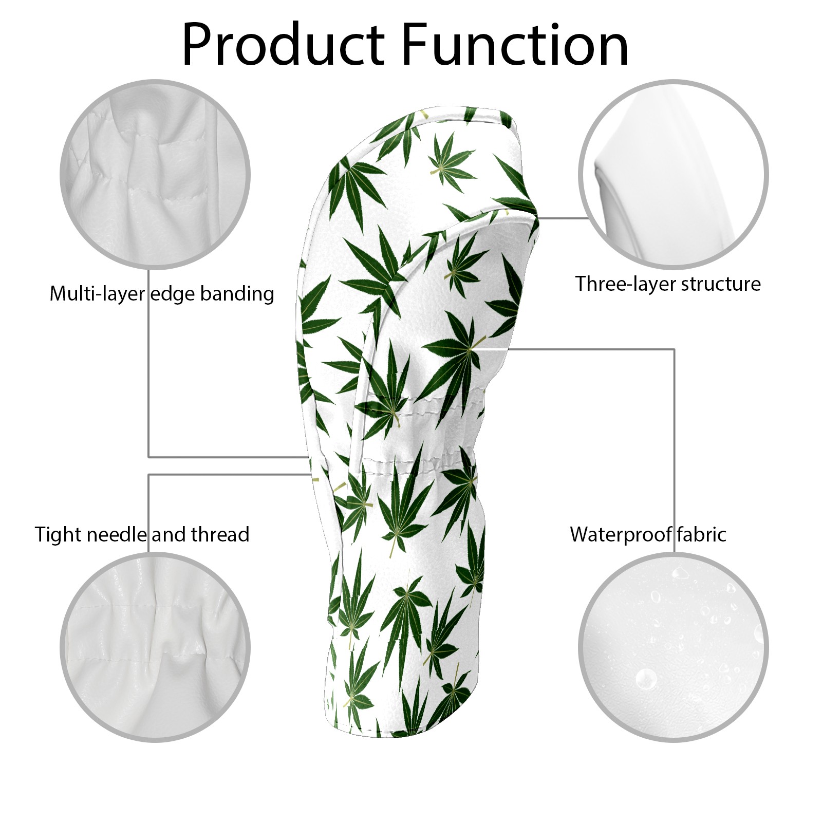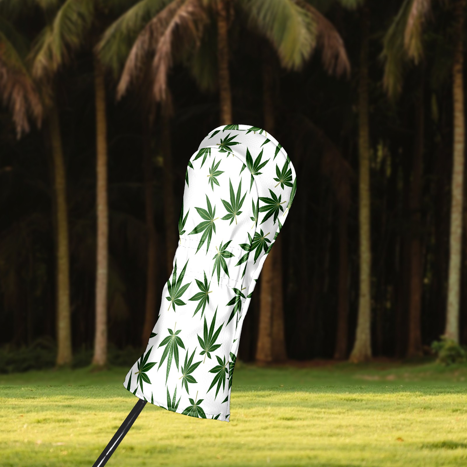 Golf Head Covers Driver Club Head Cover for Drivers Fairway Woods and Hybrid Clubs, PU Leather Golf Club Head Covers for Men and Women Green Cannabis Marijuana Leafs Pattern
