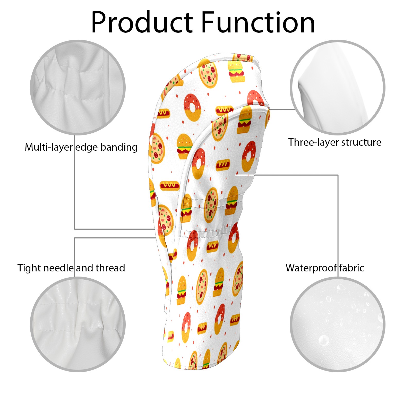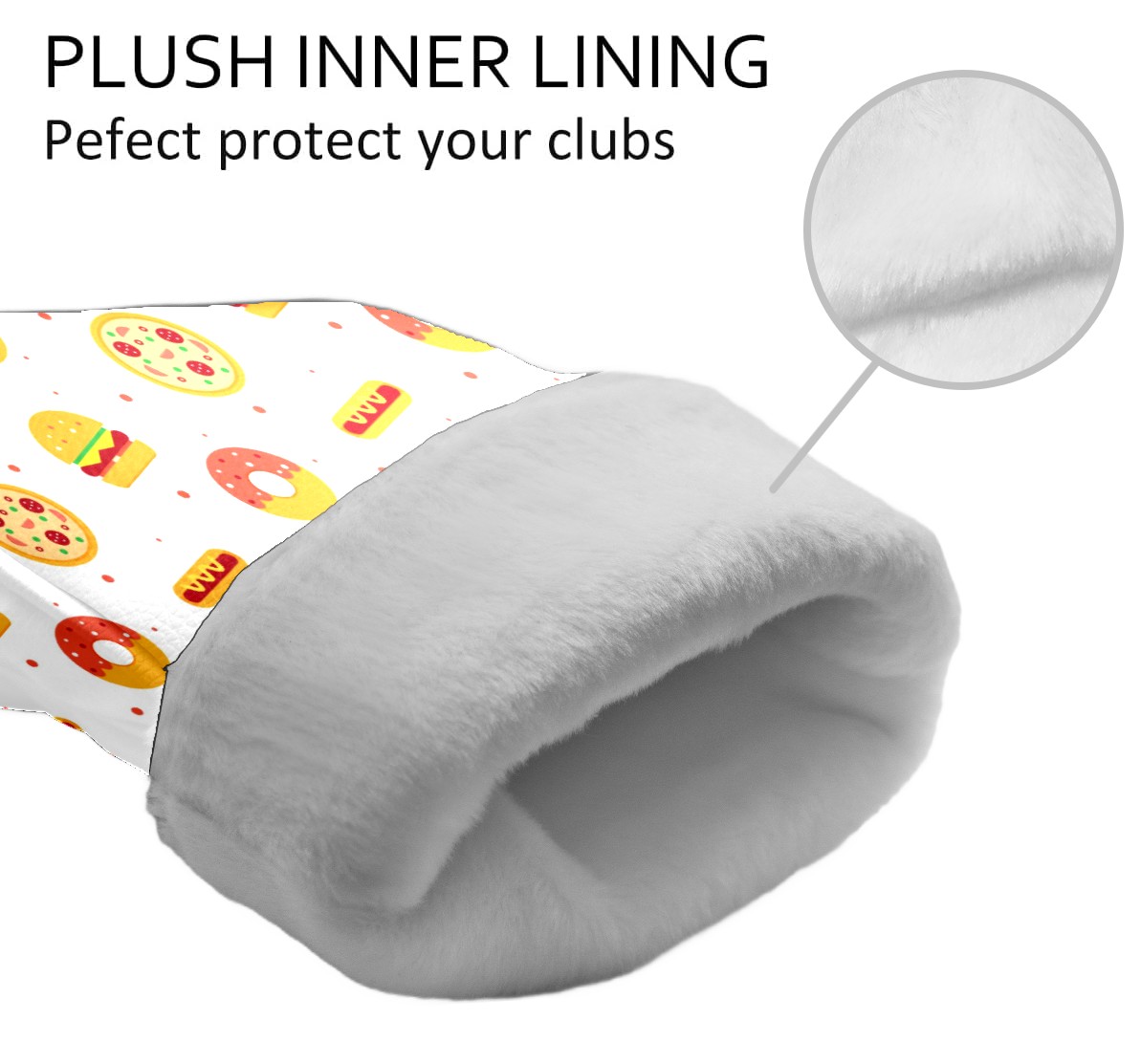 Golf Head Covers Driver Club Head Cover for Drivers Fairway Woods and Hybrid Clubs, PU Leather Golf Club Head Covers for Men and Women Fast Food Burger Pizza Donut Hot Dog