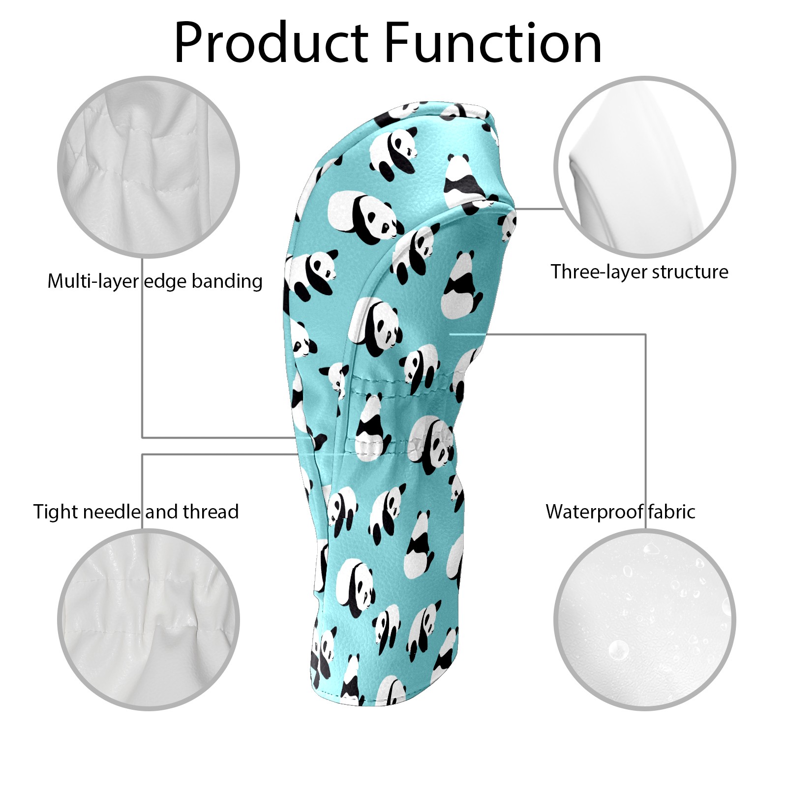 Golf Head Covers Driver Club Head Cover for Drivers Fairway Woods and Hybrid Clubs, PU Leather Golf Club Head Covers for Men and Women Animal Panda Pattern