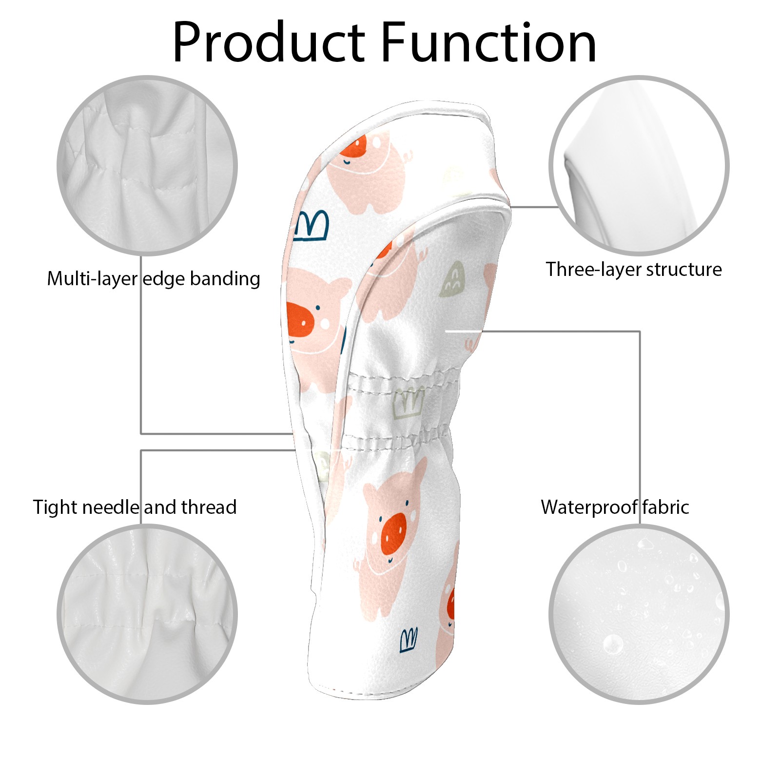 Golf Head Covers Driver Club Head Cover for Drivers Fairway Woods and Hybrid Clubs, PU Leather Golf Club Head Covers for Men and Women 豚 かわいい
