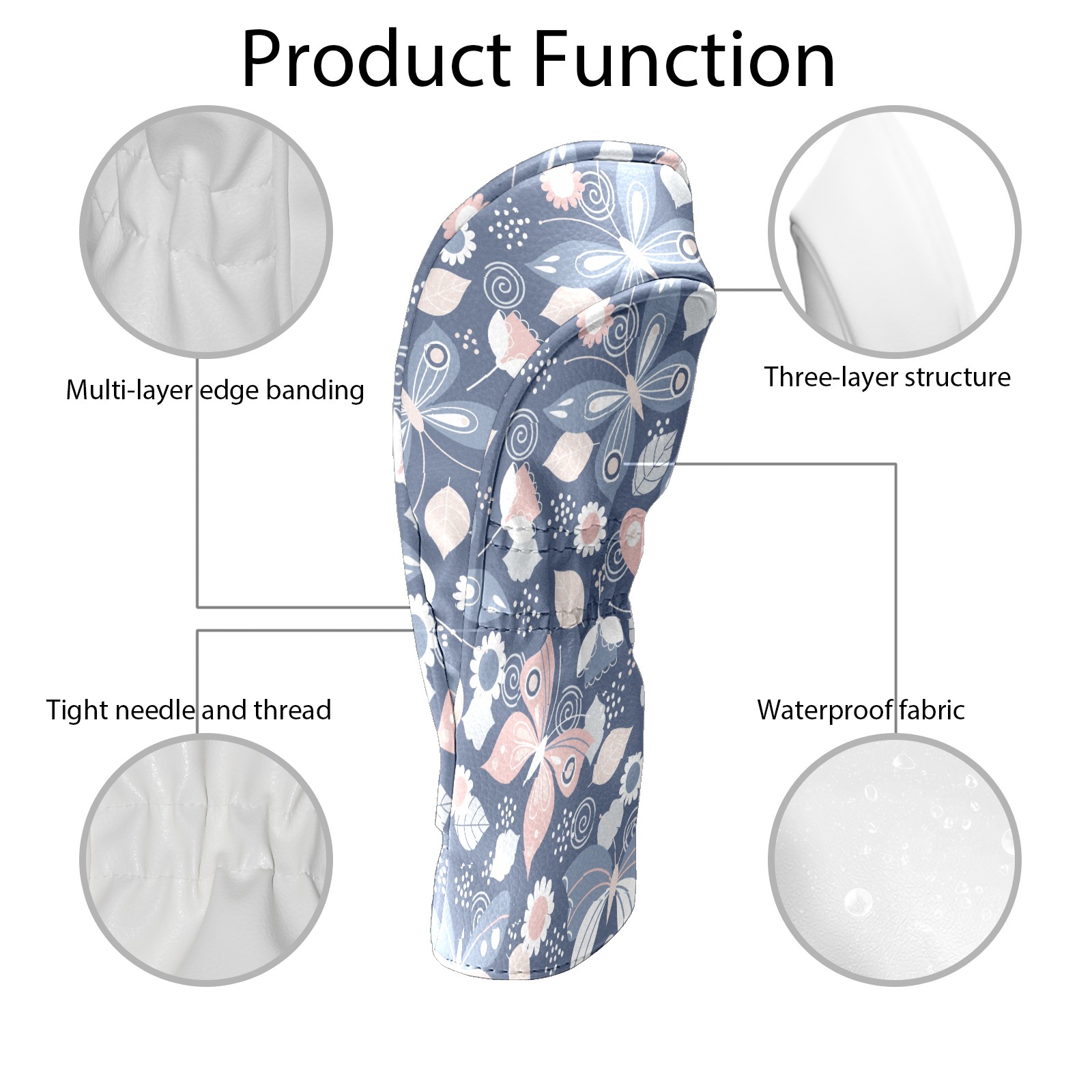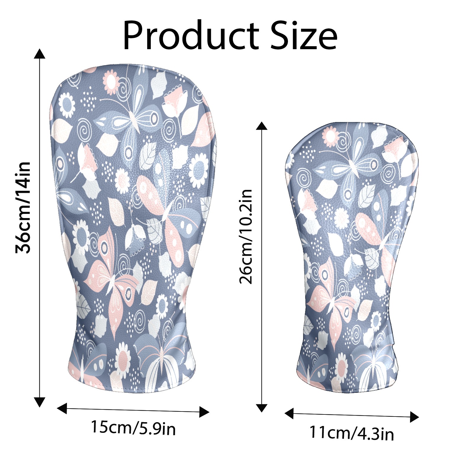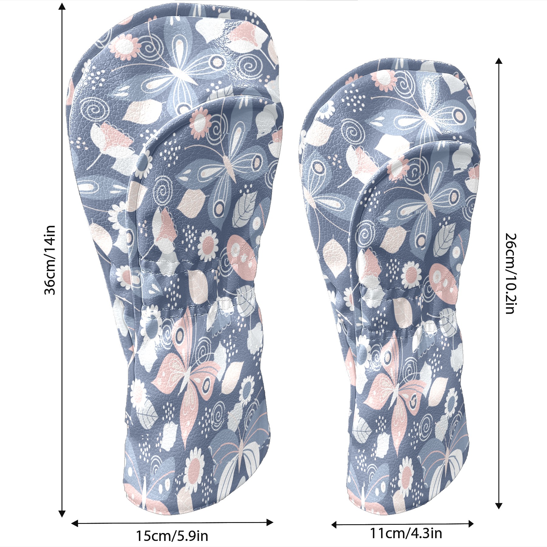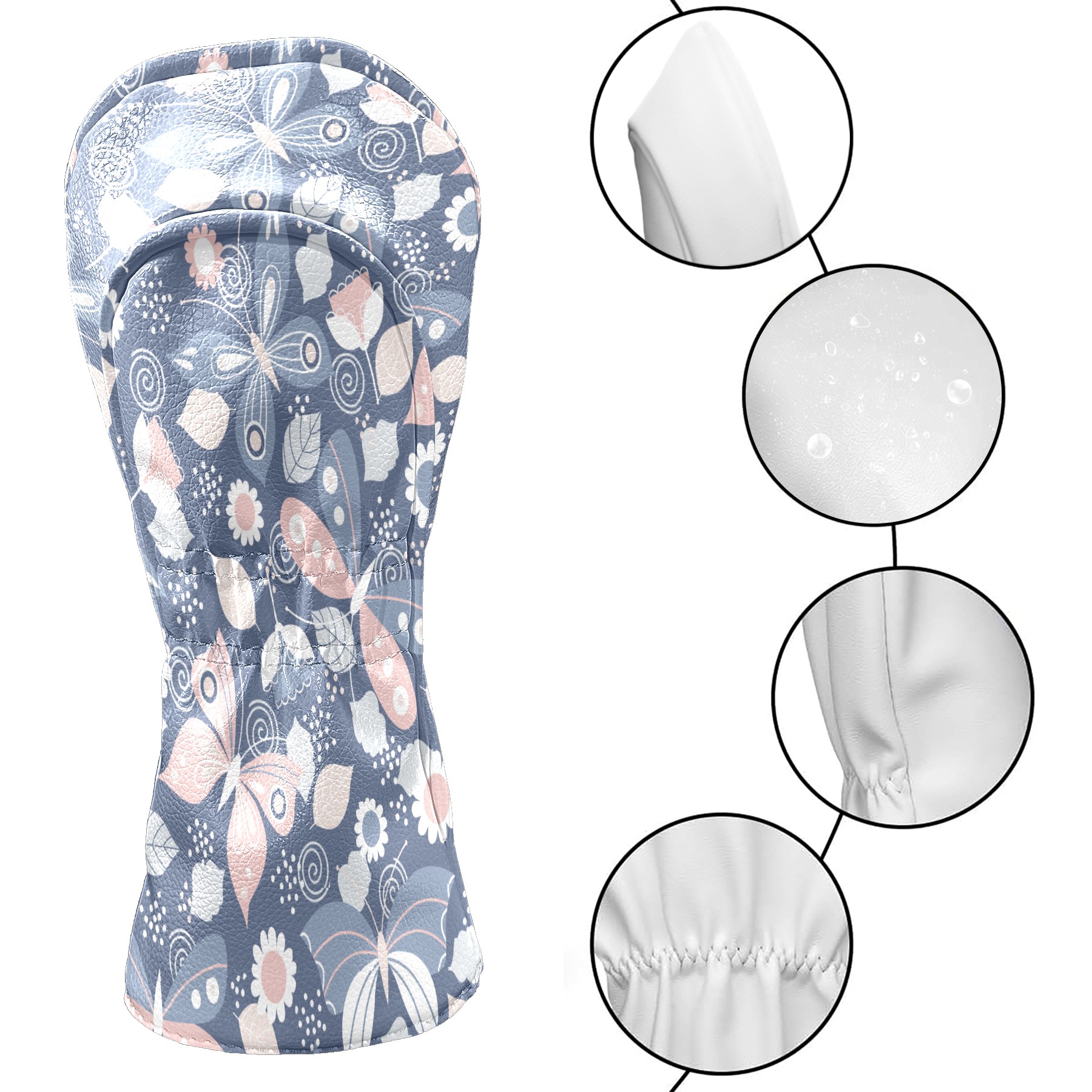 Golf Head Covers Driver Club Head Cover for Drivers Fairway Woods and Hybrid Clubs, PU Leather Golf Club Head Covers for Men and Women Butterfly Printing