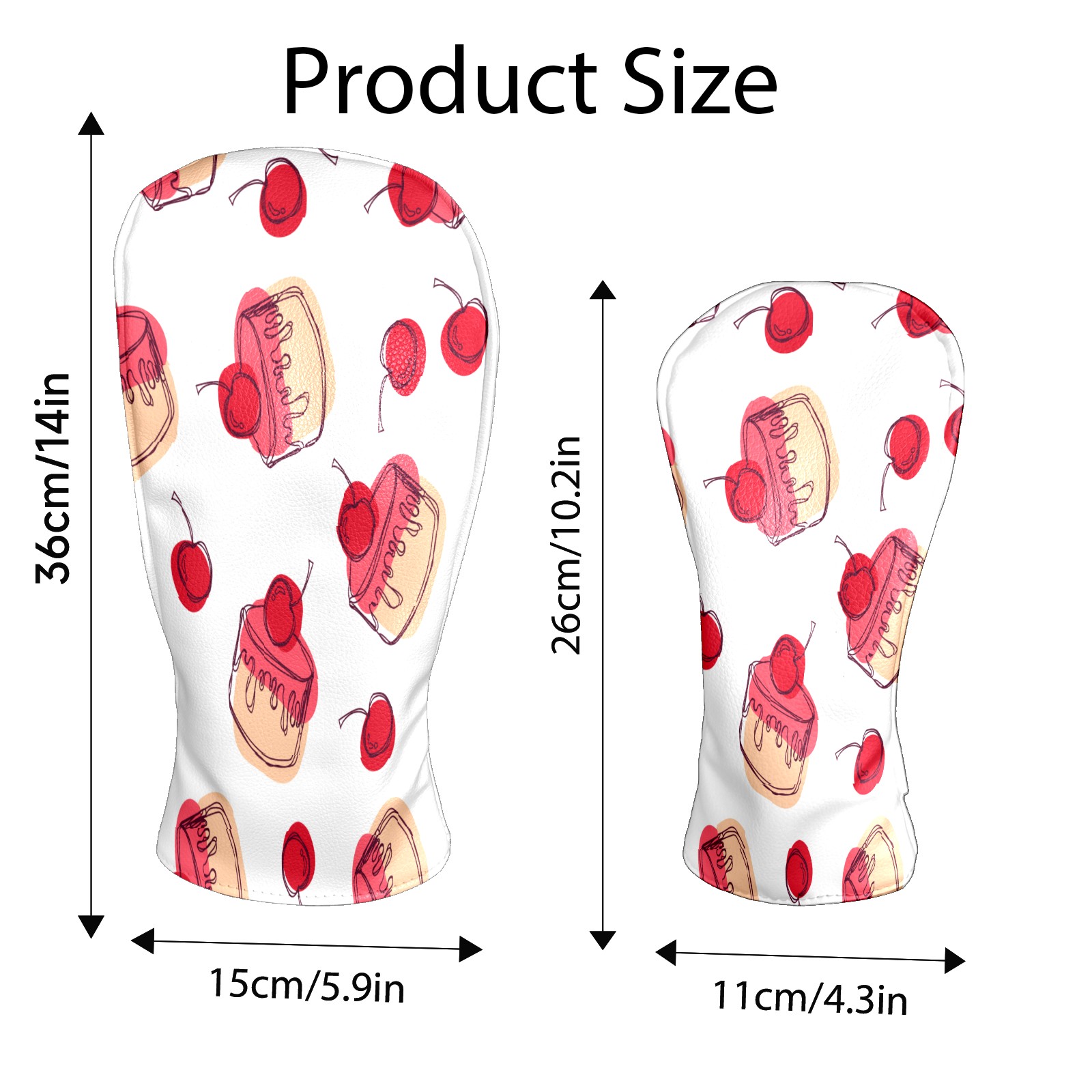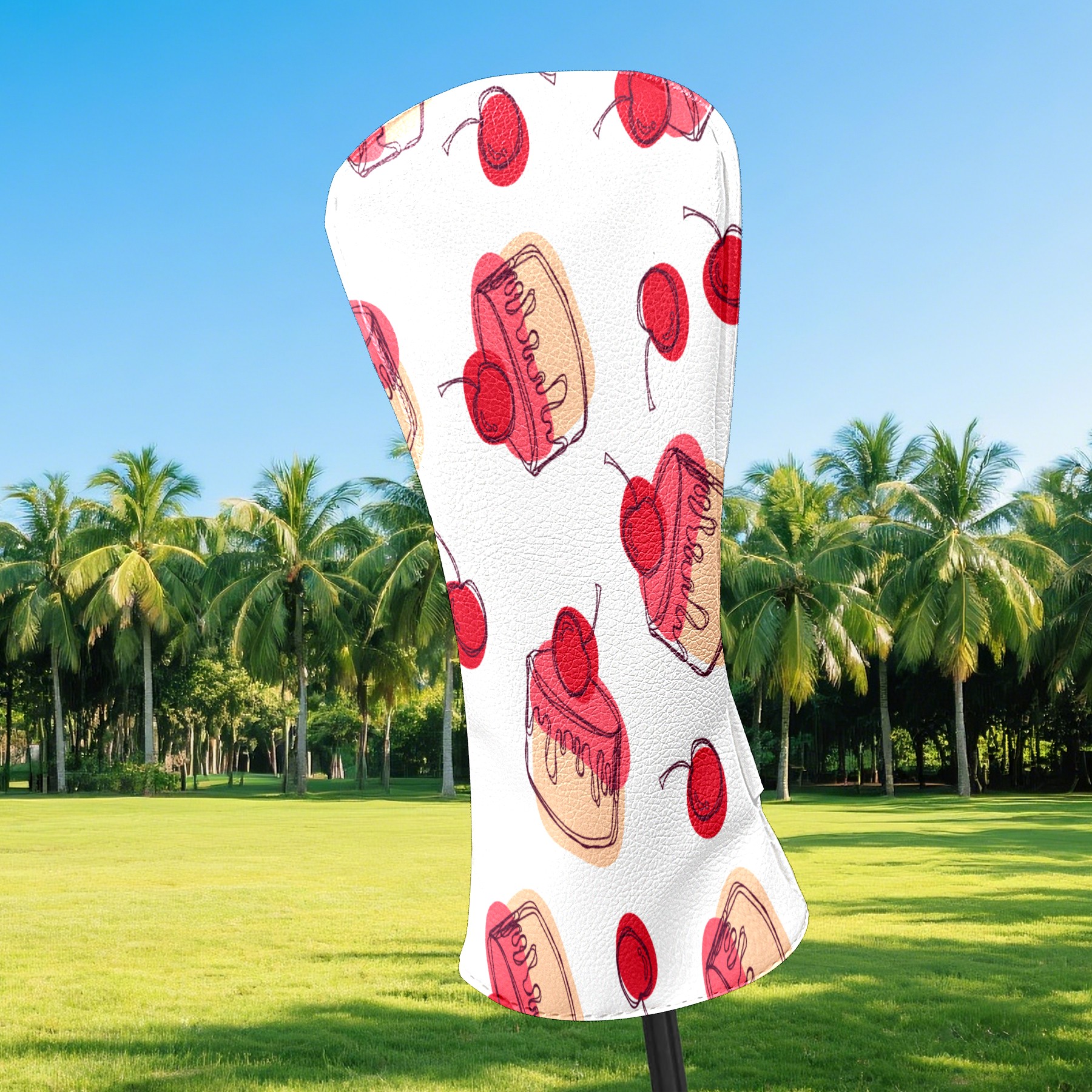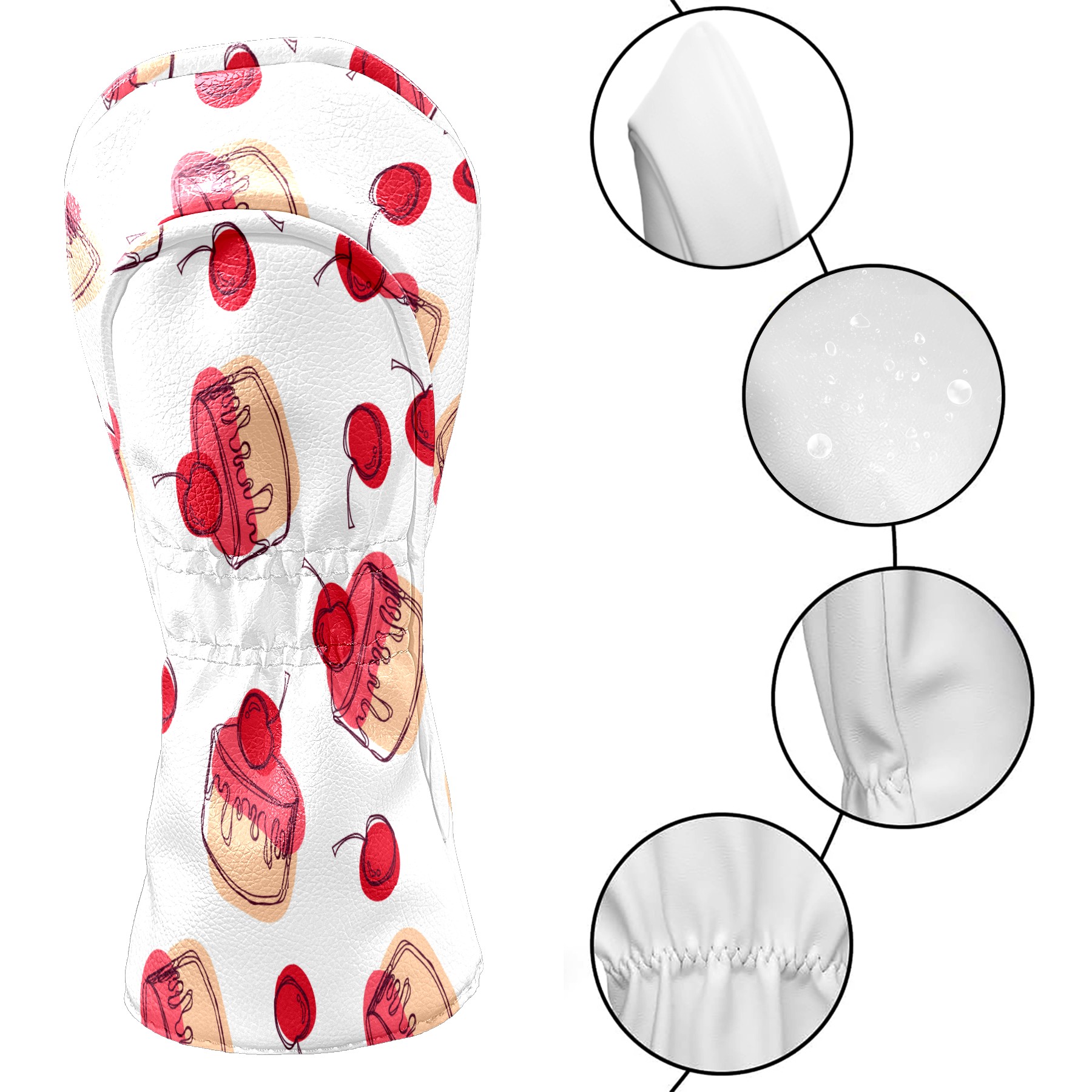 Golf Head Covers Driver Club Head Cover for Drivers Fairway Woods and Hybrid Clubs, PU Leather Golf Club Head Covers for Men and Women Cherry Cupcakes Sweet Dessert Pattern