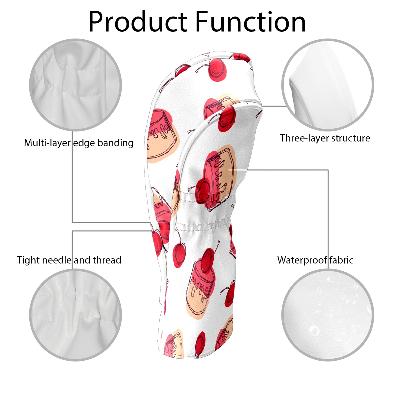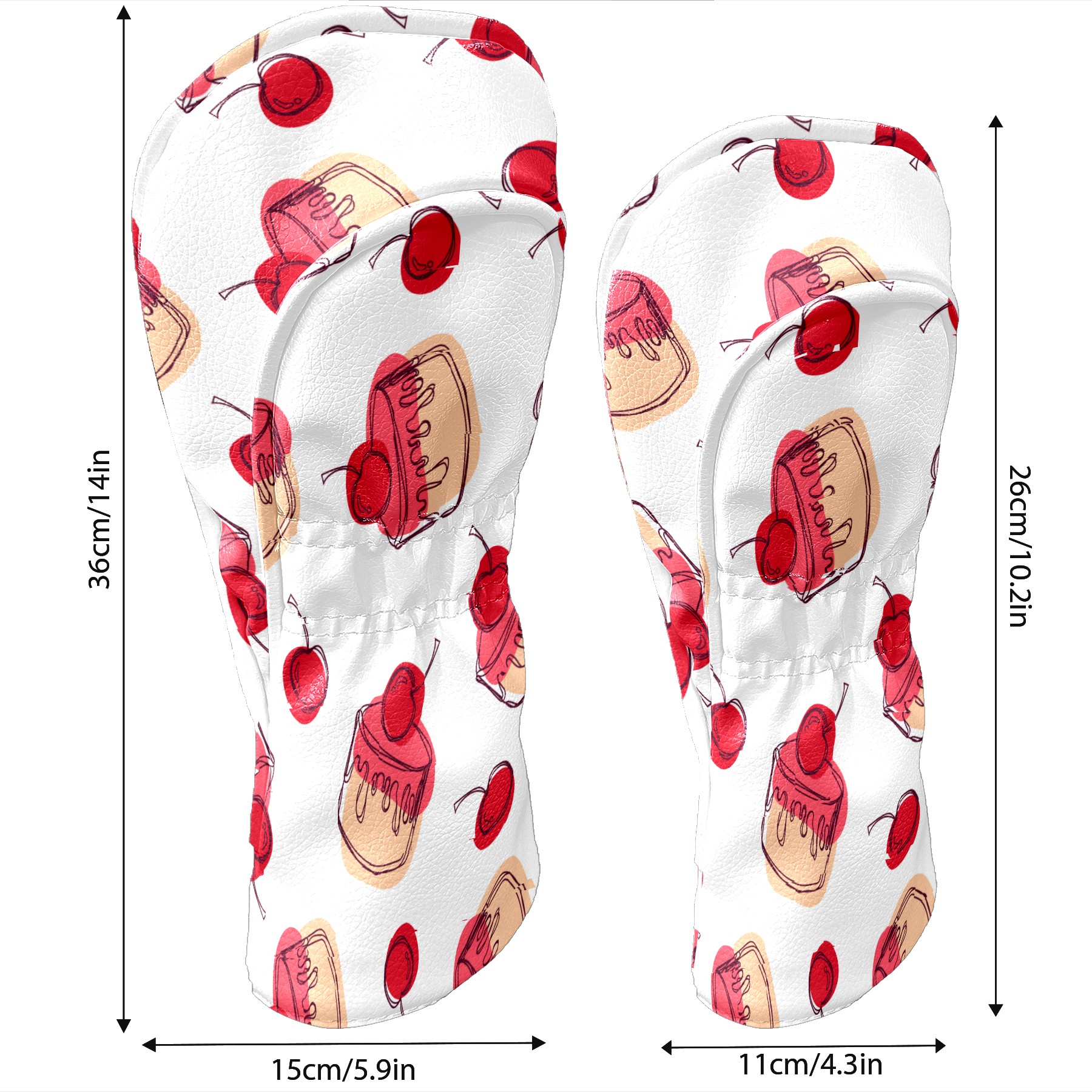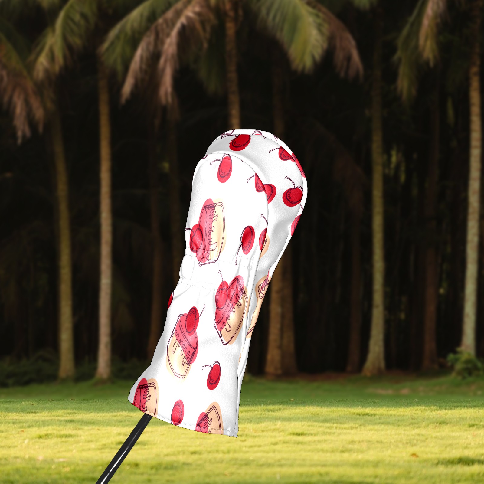Golf Head Covers Driver Club Head Cover for Drivers Fairway Woods and Hybrid Clubs, PU Leather Golf Club Head Covers for Men and Women Cherry Cupcakes Sweet Dessert Pattern