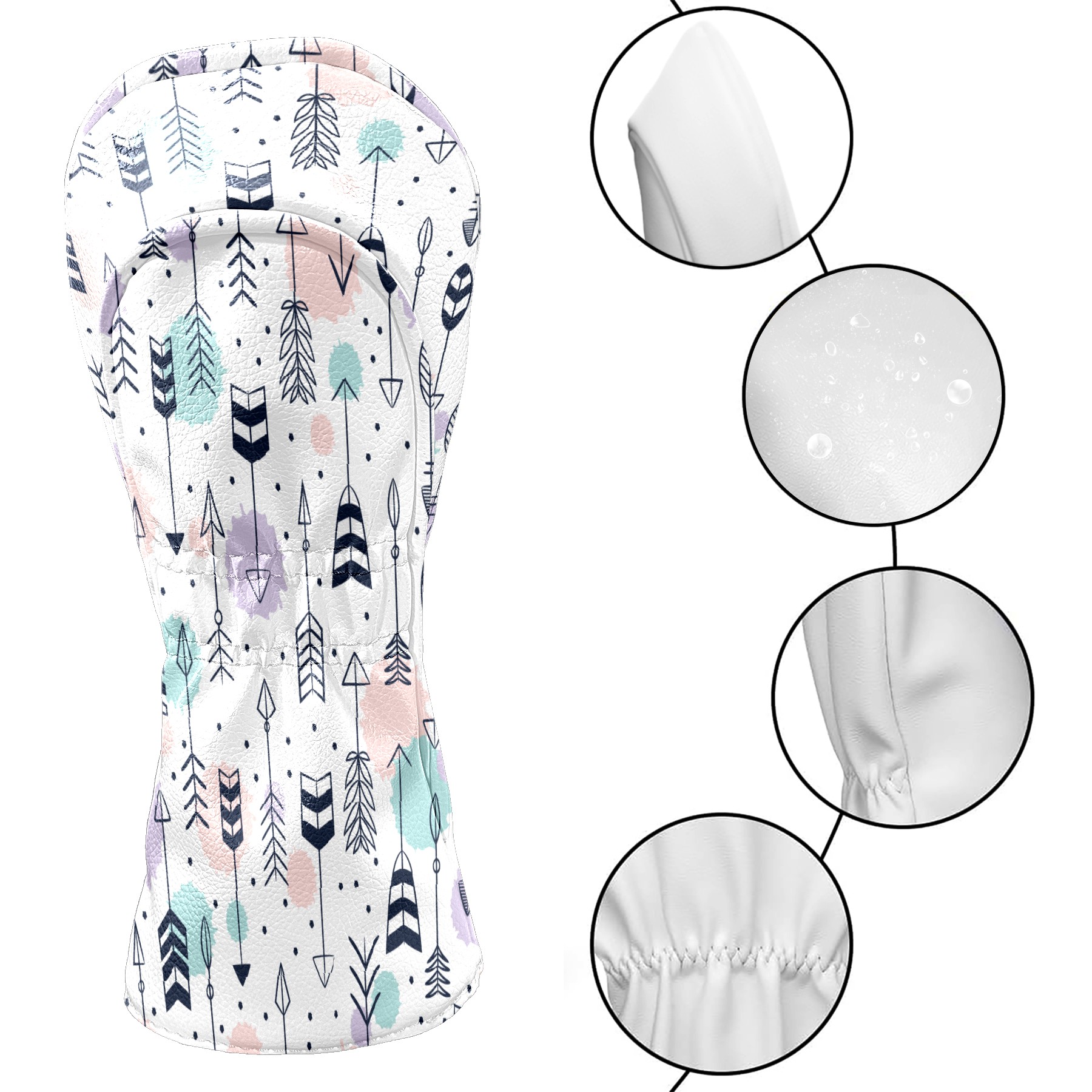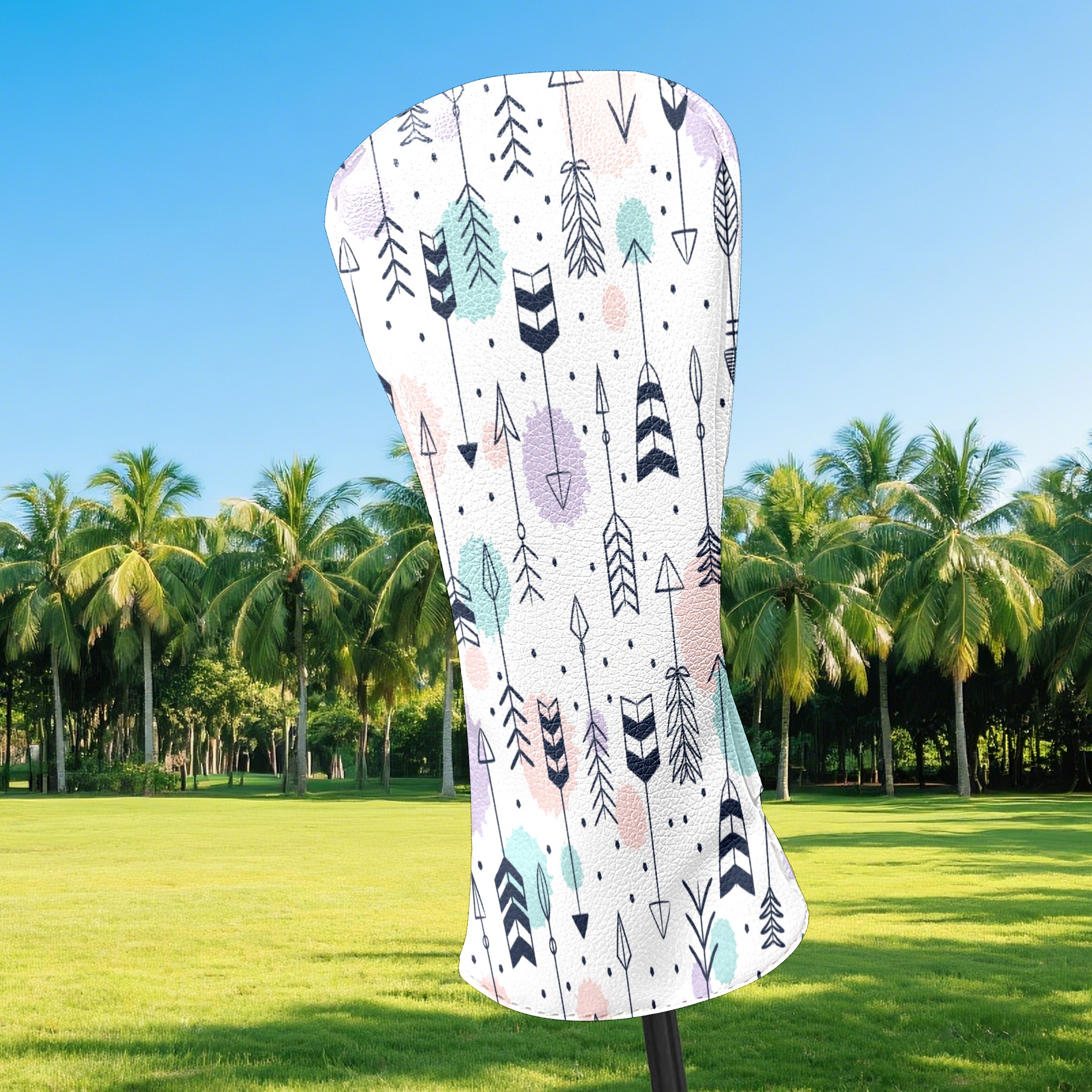 Golf Head Covers Driver Club Head Cover for Drivers Fairway Woods and Hybrid Clubs, PU Leather Golf Club Head Covers for Men and Women Navy Arrows Pattern Purple Blue Watercolor