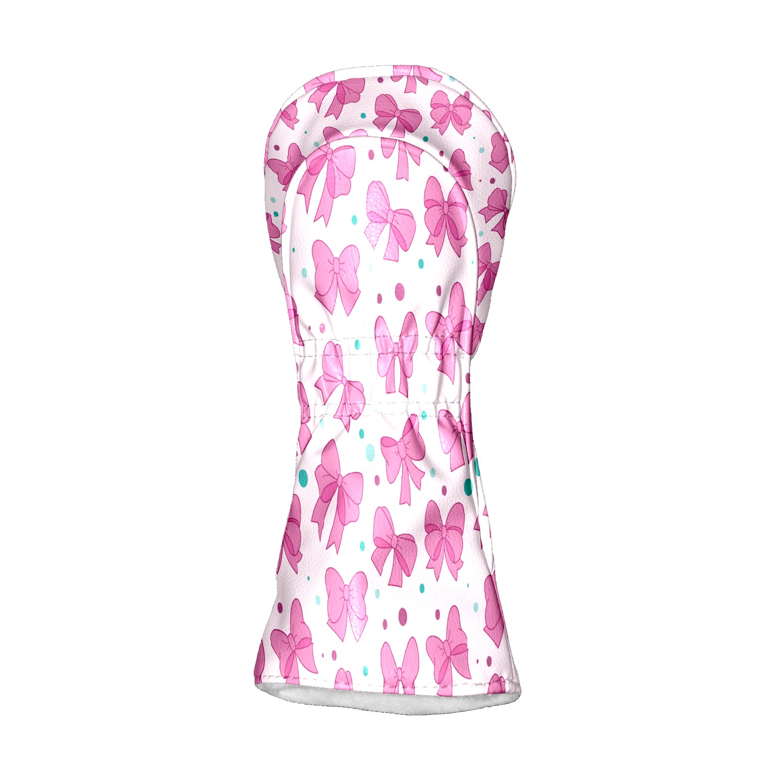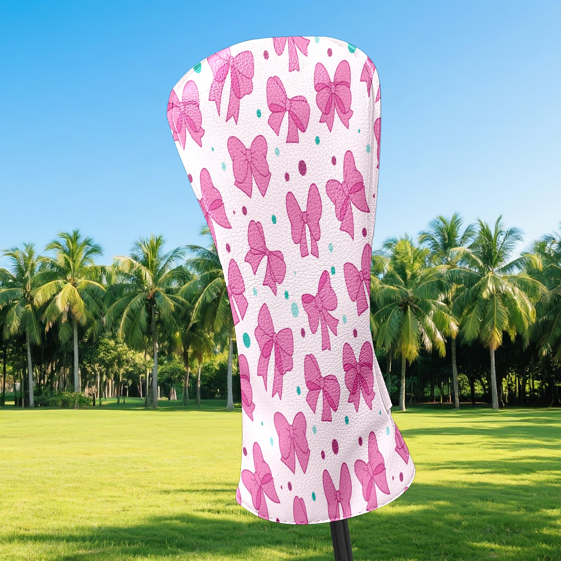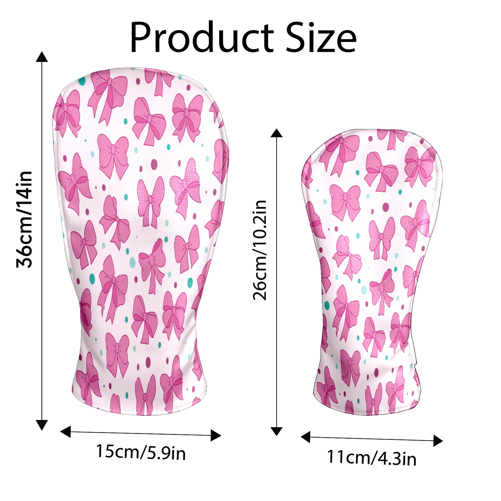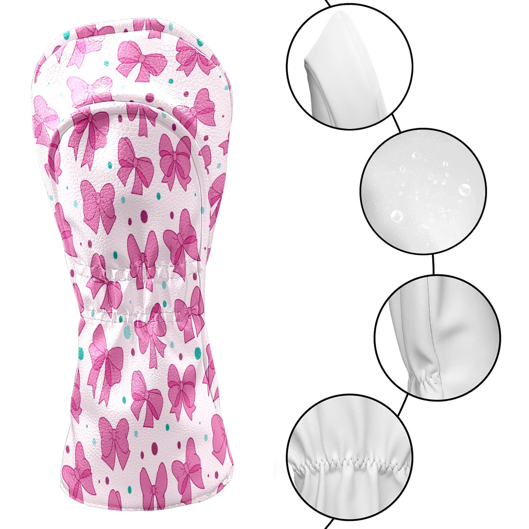 Golf Head Covers Driver Club Head Cover for Drivers Fairway Woods and Hybrid Clubs, PU Leather Golf Club Head Covers for Men and Women Pink Bows Pattern Girls Romantic