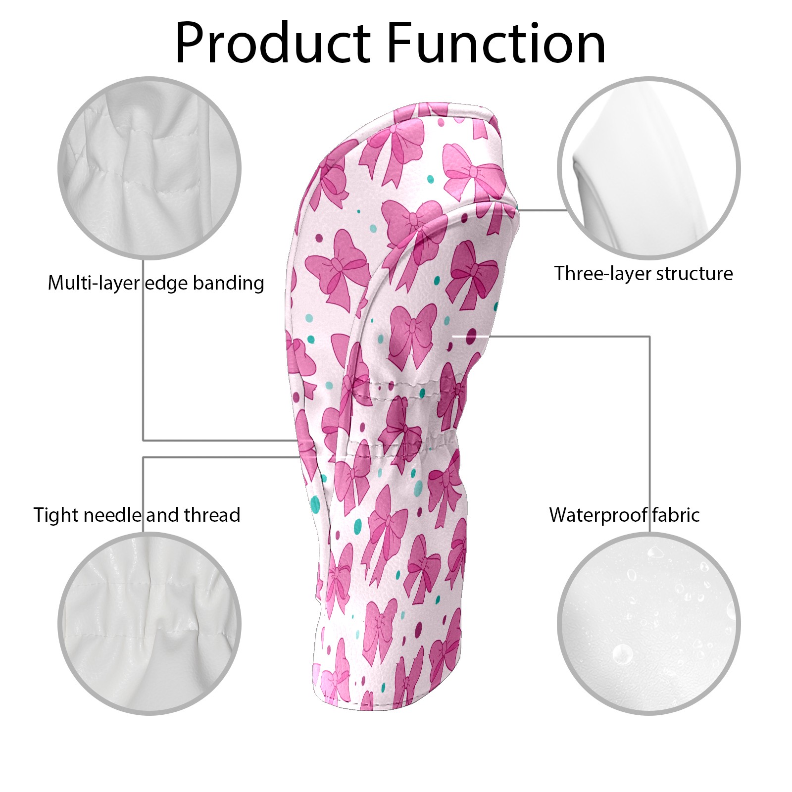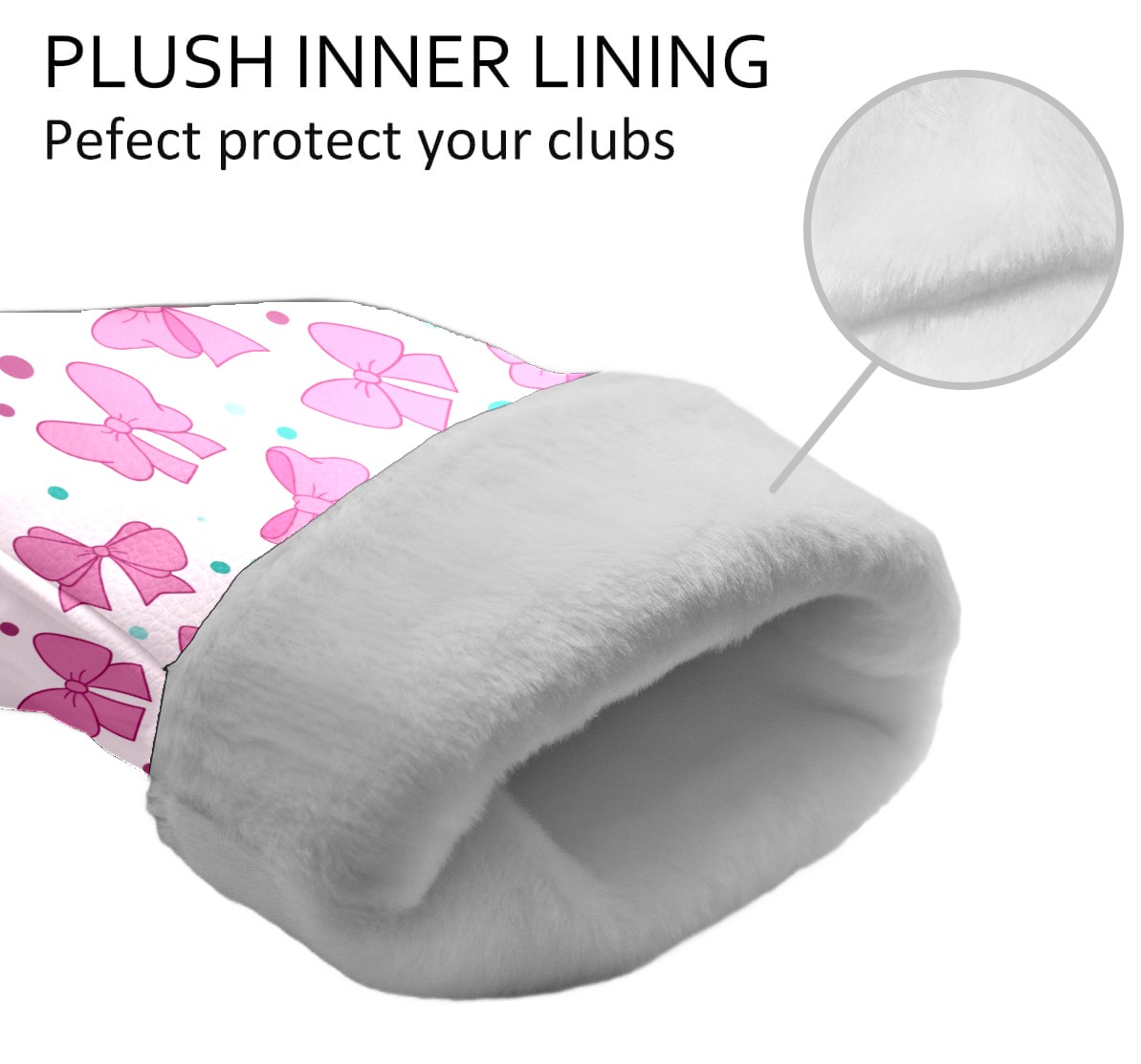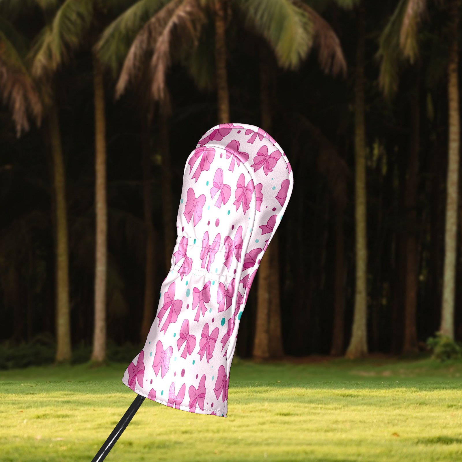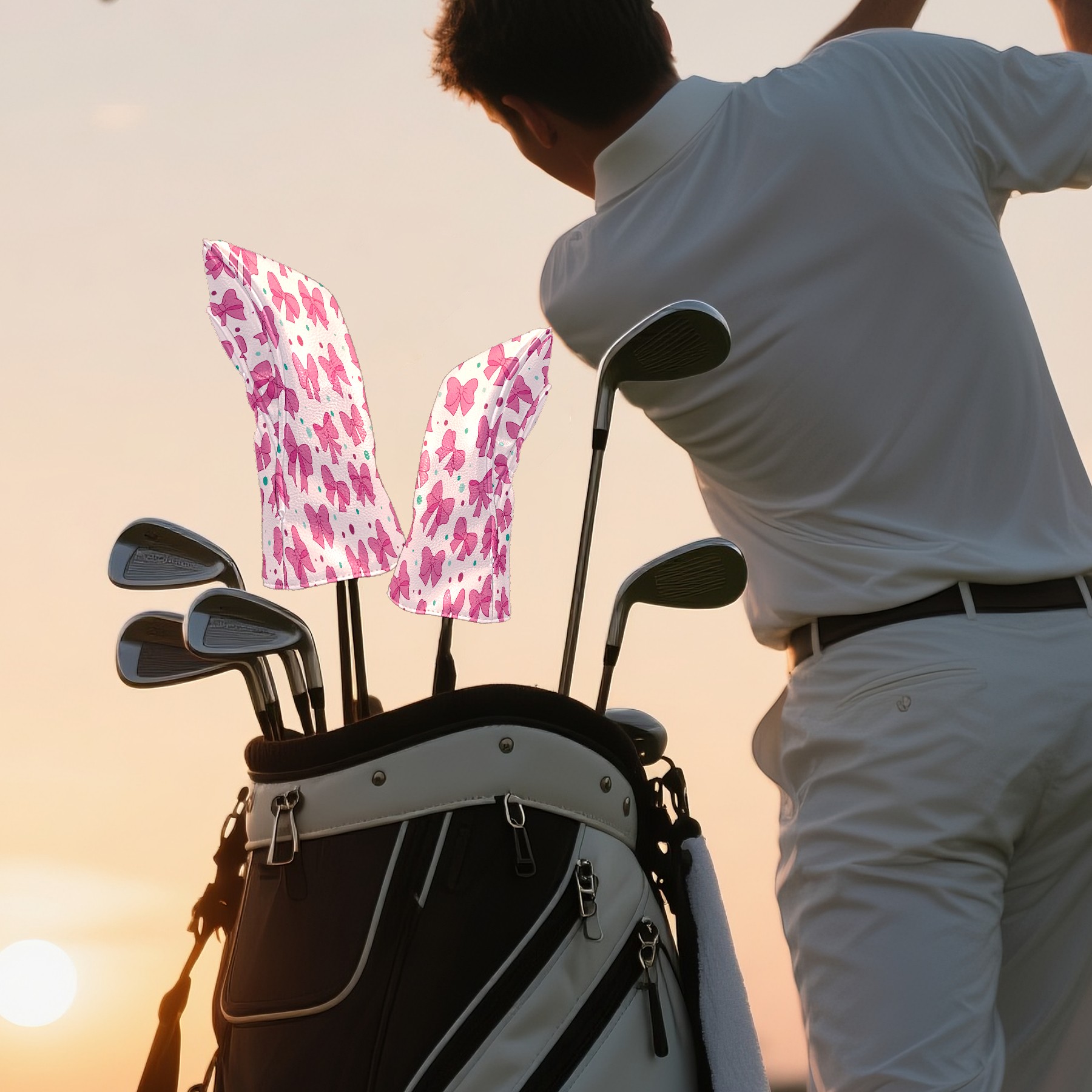 Golf Head Covers Driver Club Head Cover for Drivers Fairway Woods and Hybrid Clubs, PU Leather Golf Club Head Covers for Men and Women Pink Bows Pattern Girls Romantic
