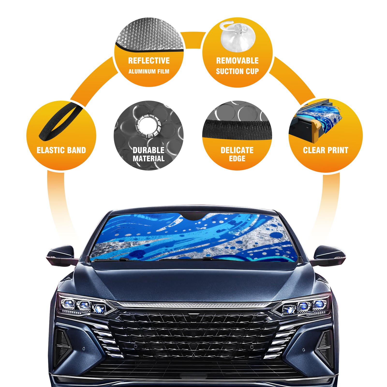Car Windshield Sun Shade Polyester Car Sunshade Pad, Heat Insulation And Sun Protection Cute