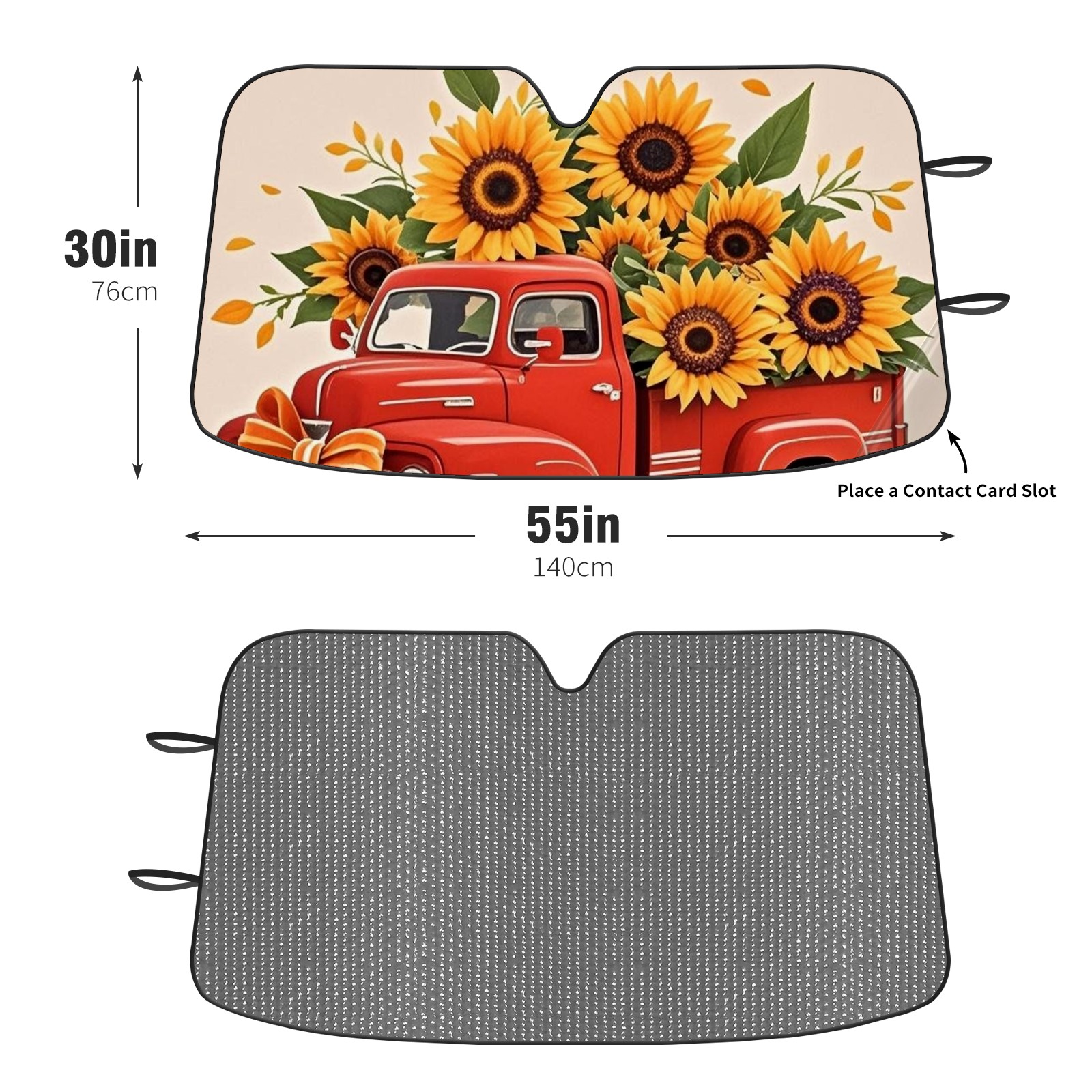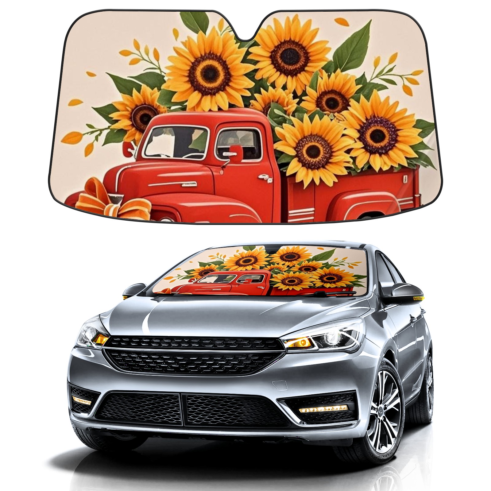 Car Windshield Sun Shade Polyester Car Sunshade Pad, Heat Insulation And Sun Protection Red Car And Sunflower