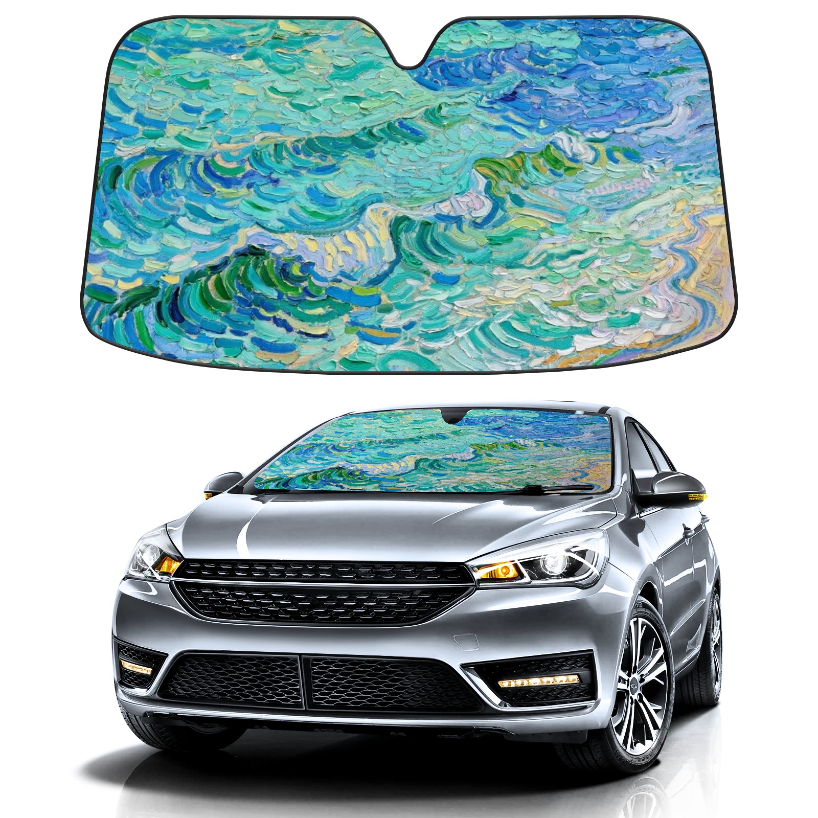 Car Windshield Sun Shade Polyester Car Sunshade Pad, Heat Insulation And Sun Protection Sea