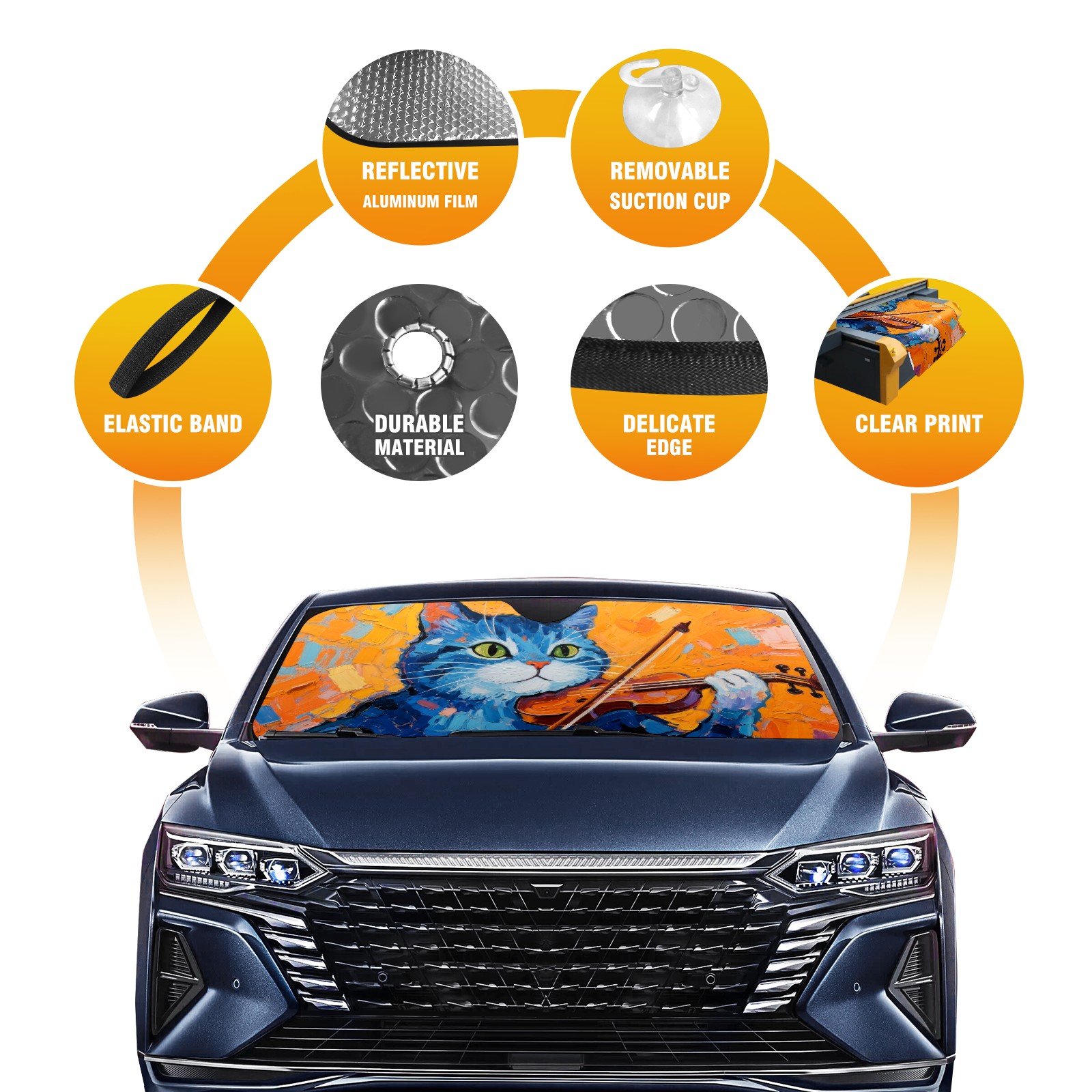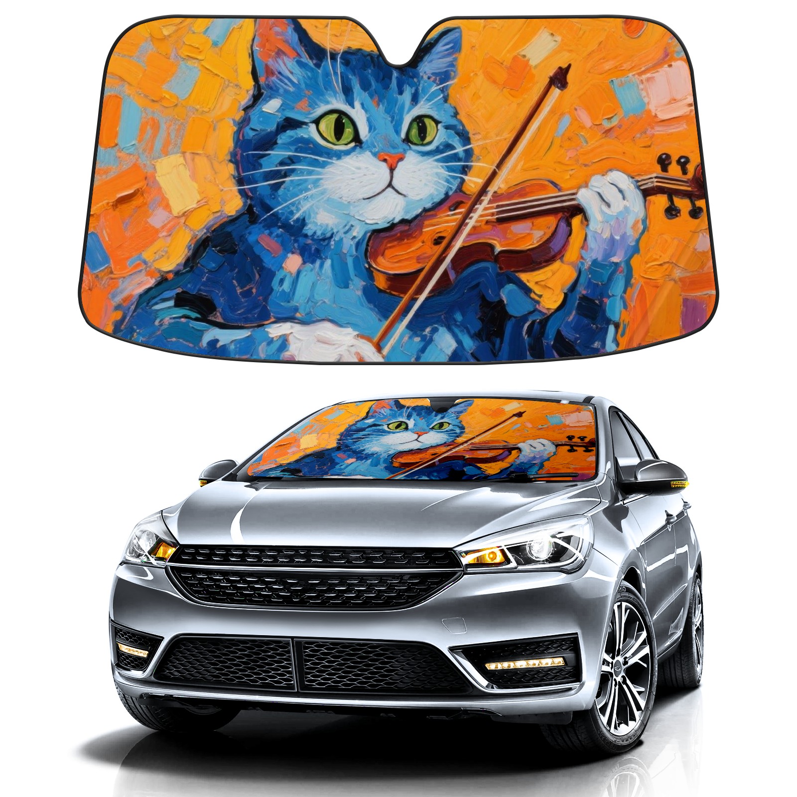 Car Windshield Sun Shade Polyester Car Sunshade Pad, Heat Insulation And Sun Protection Blue Cat