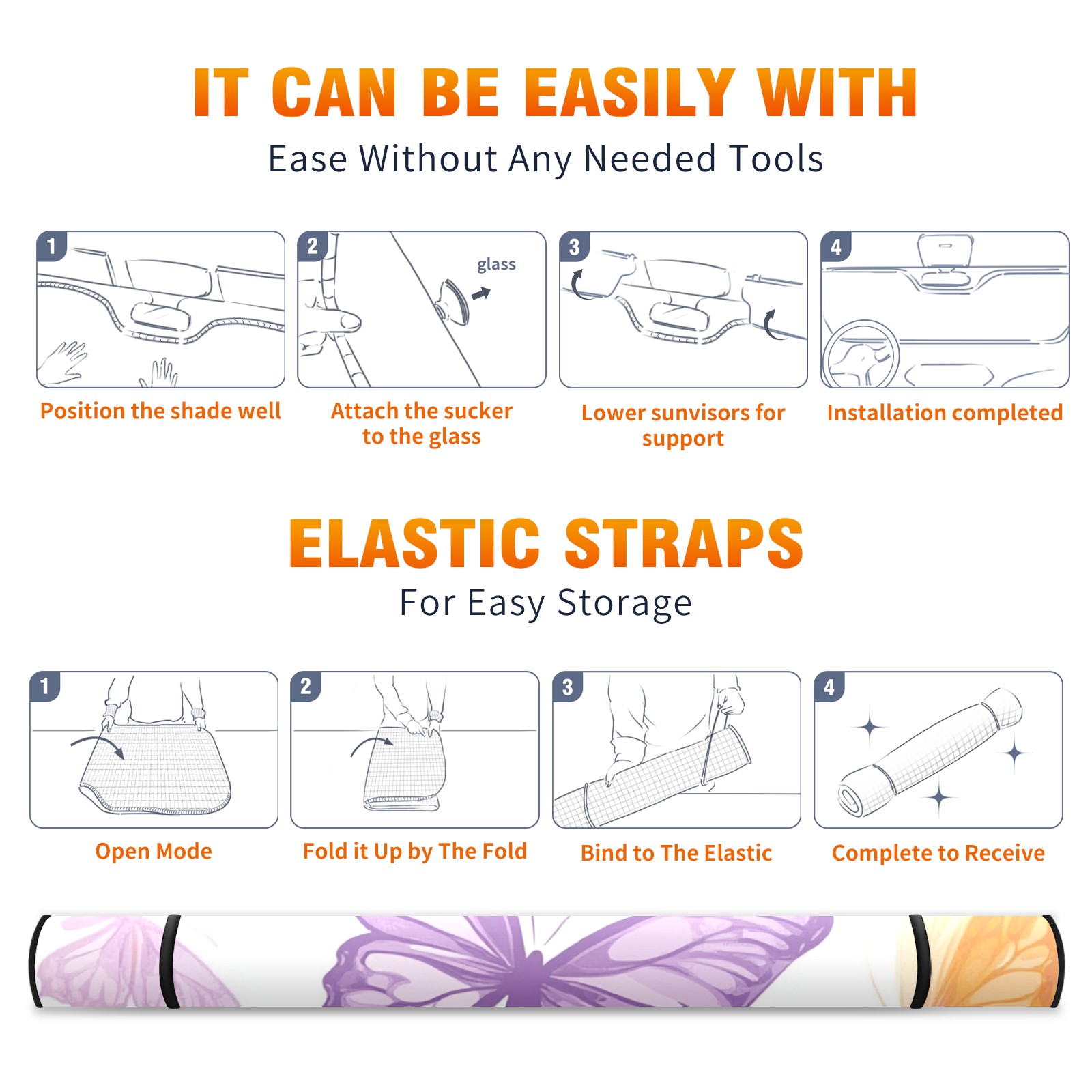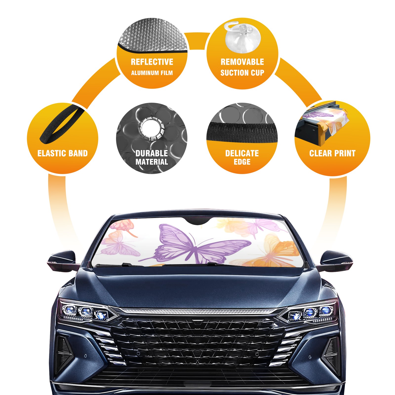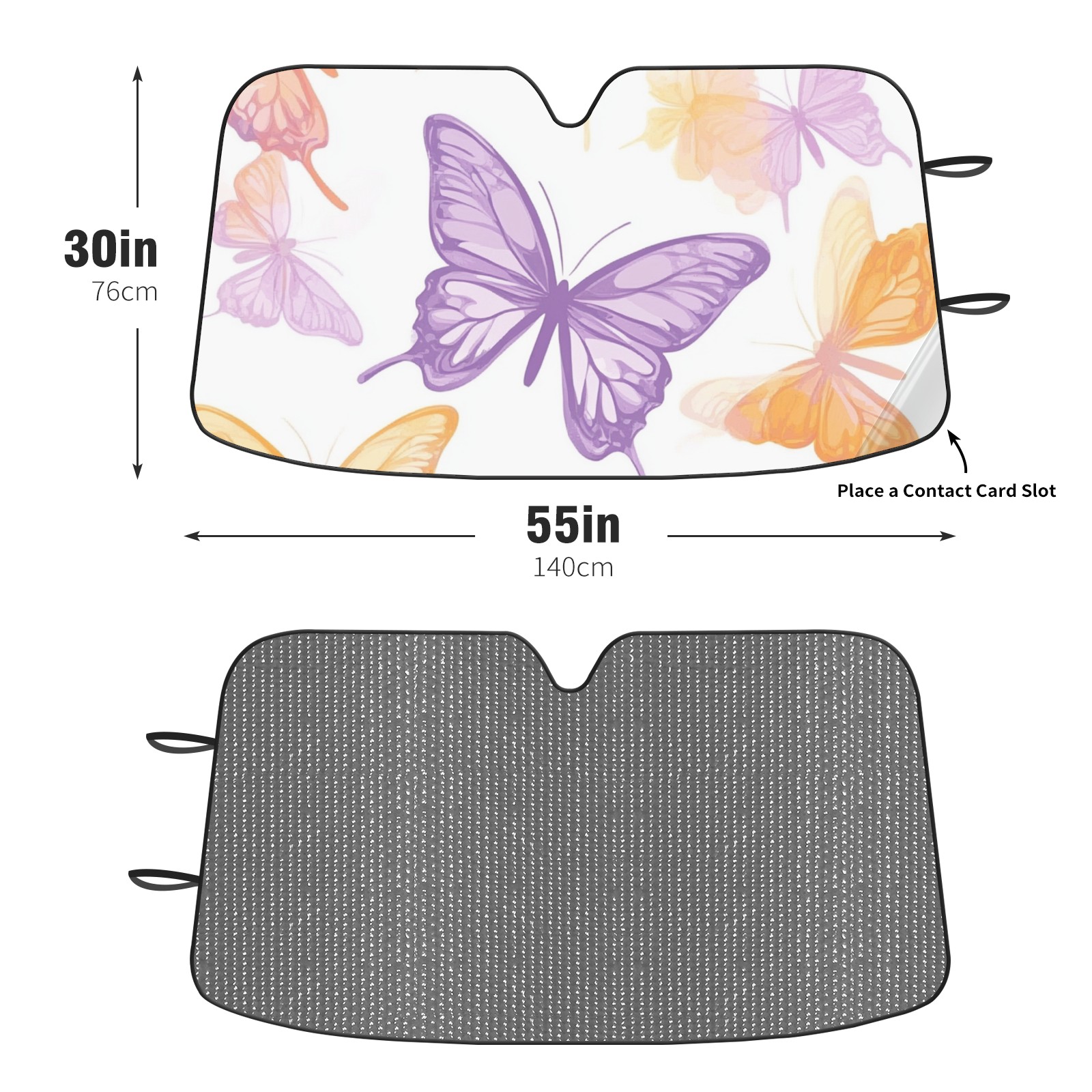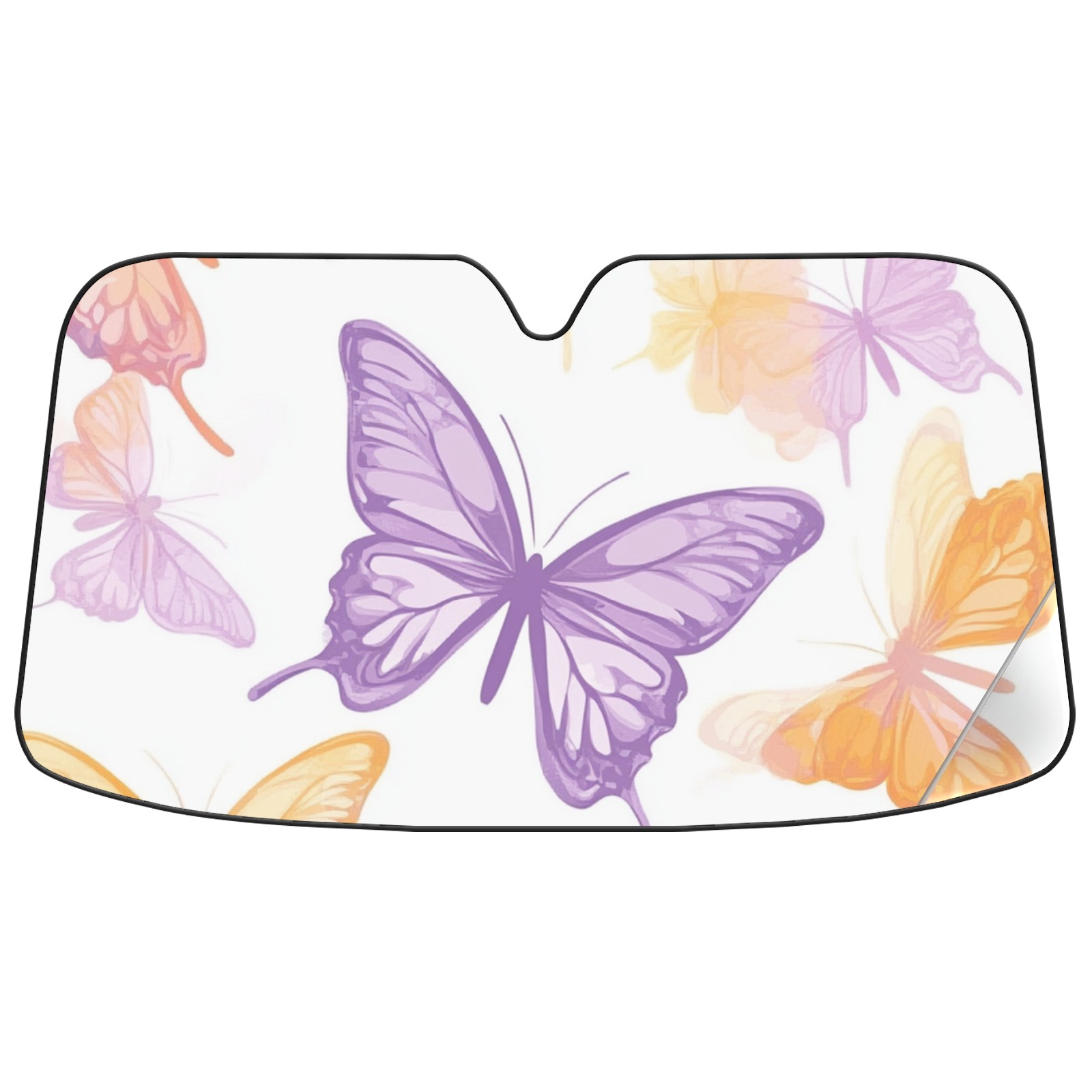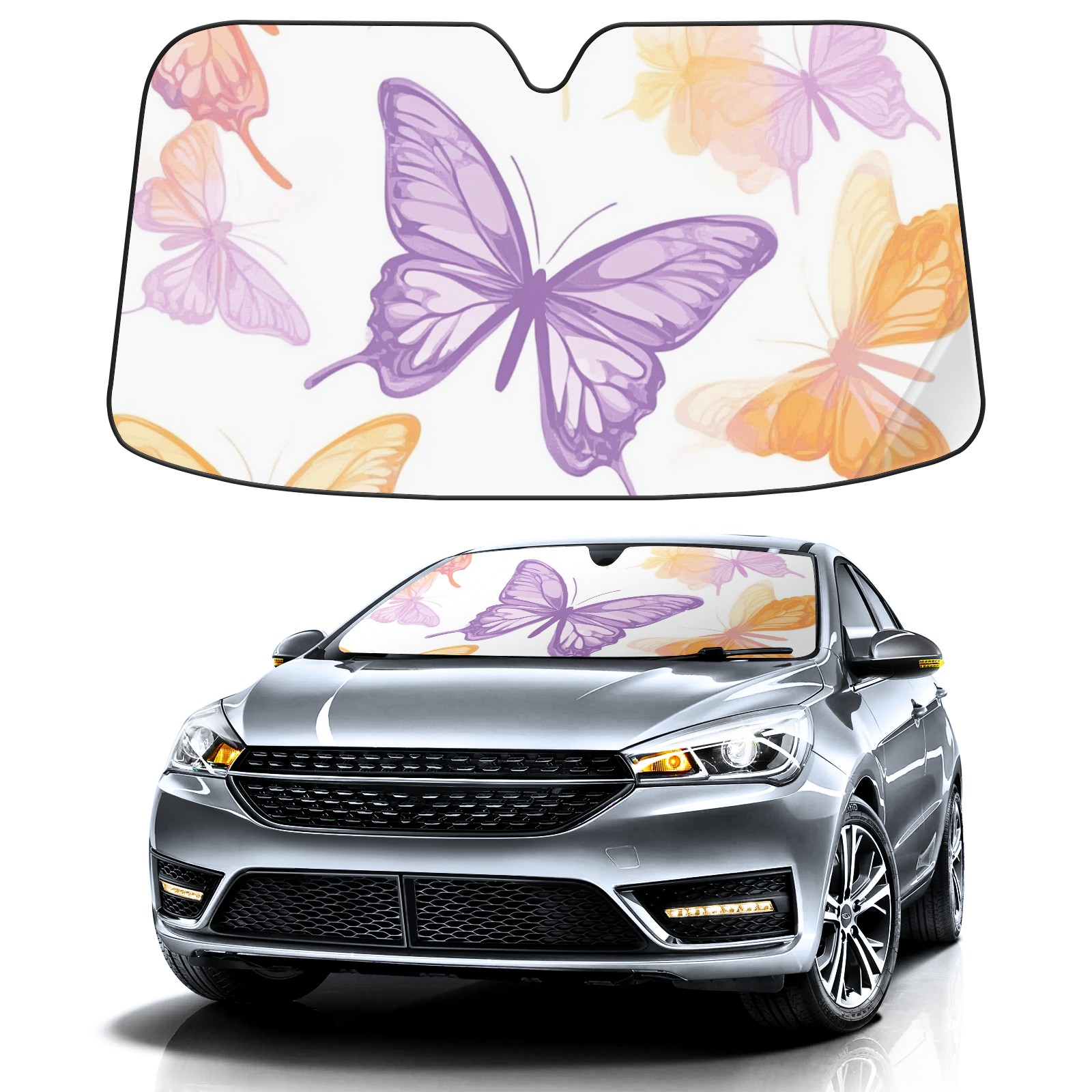 Car Windshield Sun Shade Polyester Car Sunshade Pad, Heat Insulation And Sun Protection Pink And Orange Butterflies