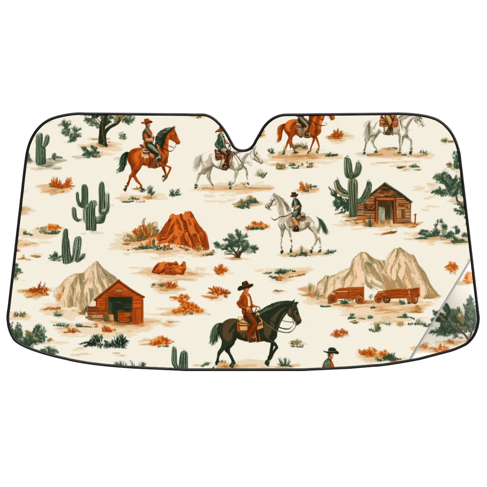 Car Windshield Sun Shade Polyester Car Sunshade Pad, Heat Insulation And Sun Protection Western Theme Pattern