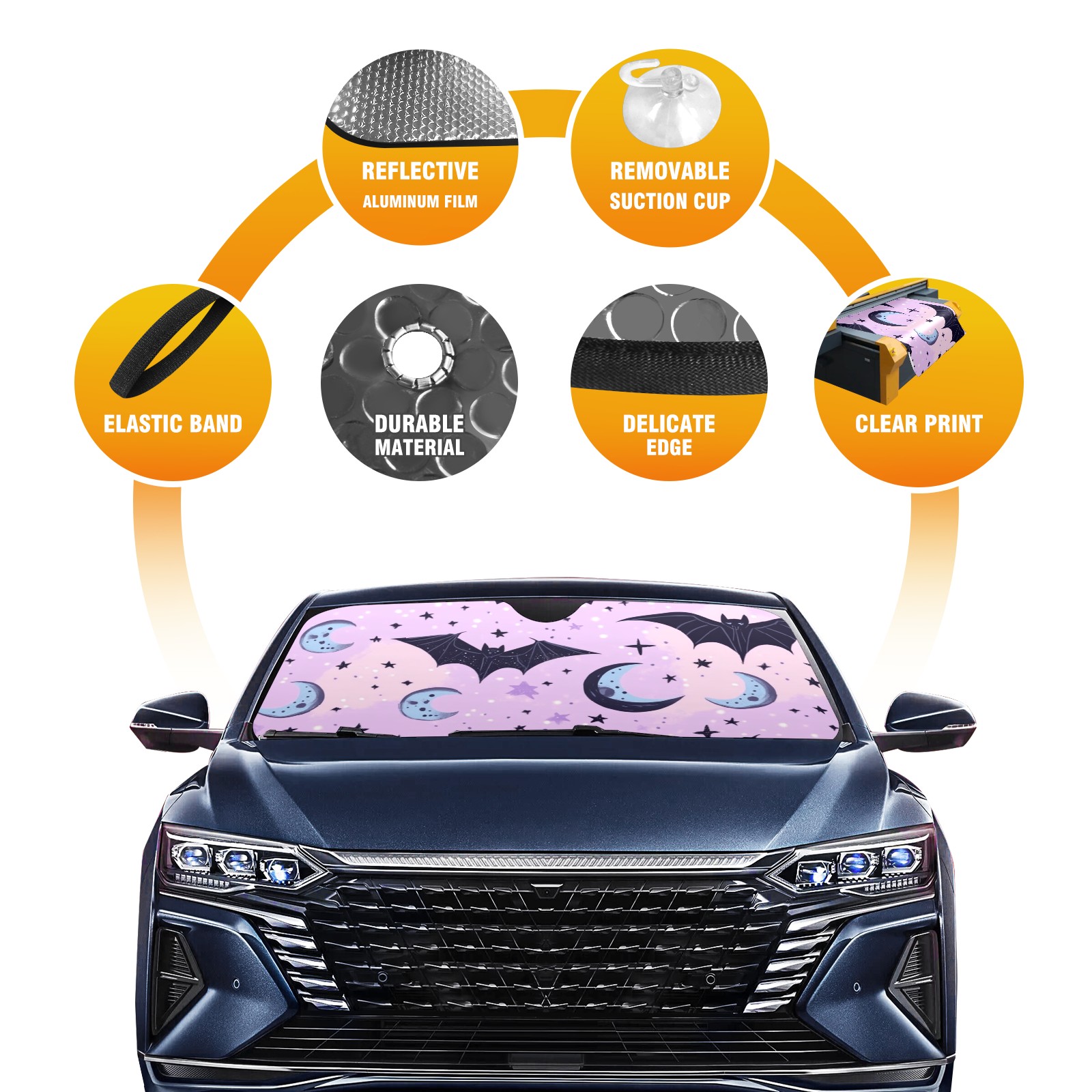 Car Windshield Sun Shade Polyester Car Sunshade Pad, Heat Insulation And Sun Protection Bats Moons And Stars