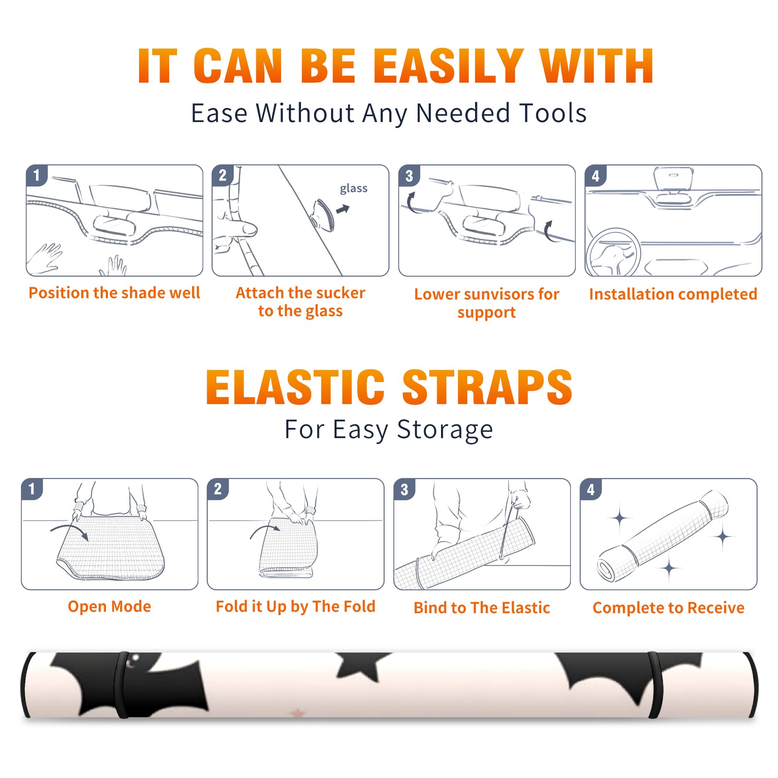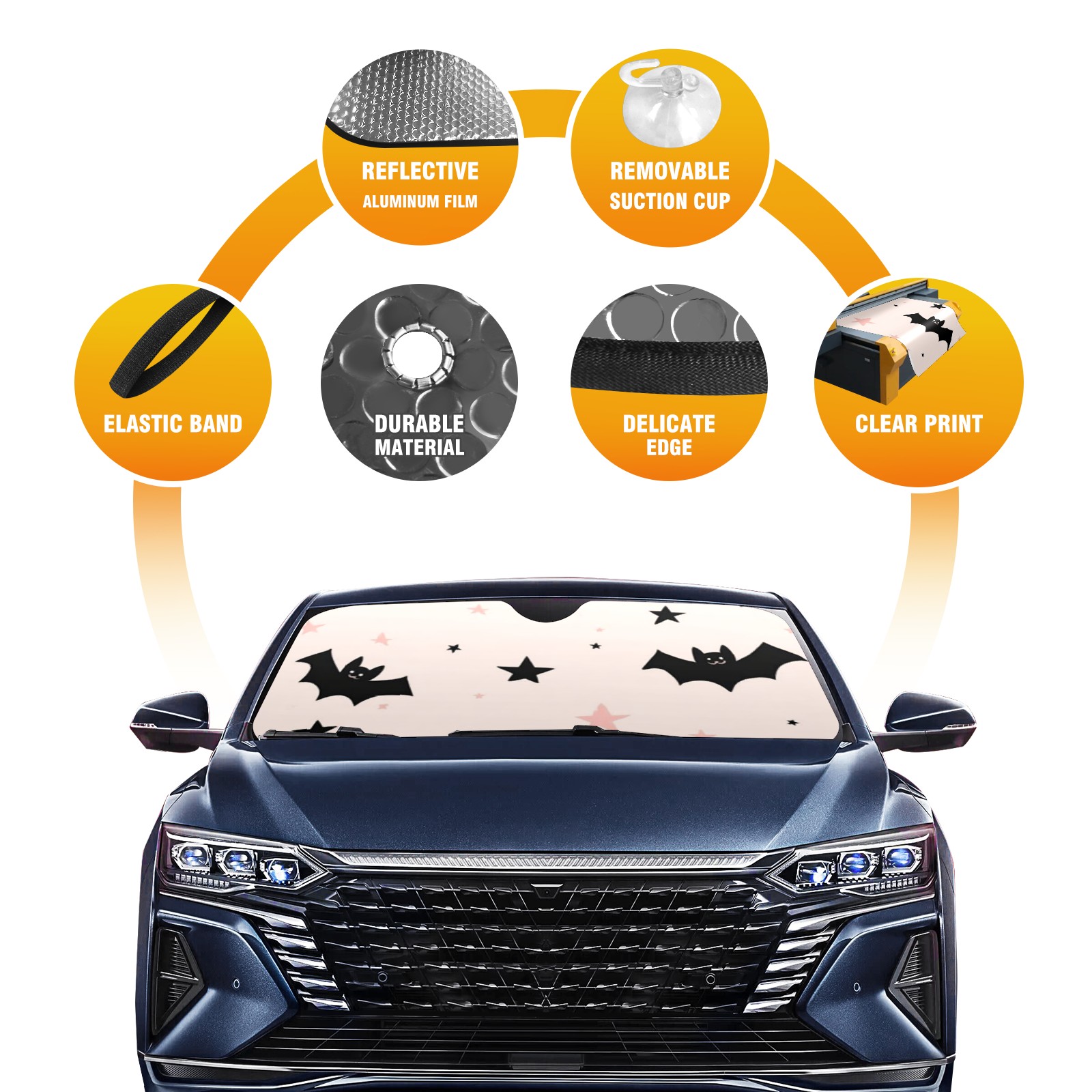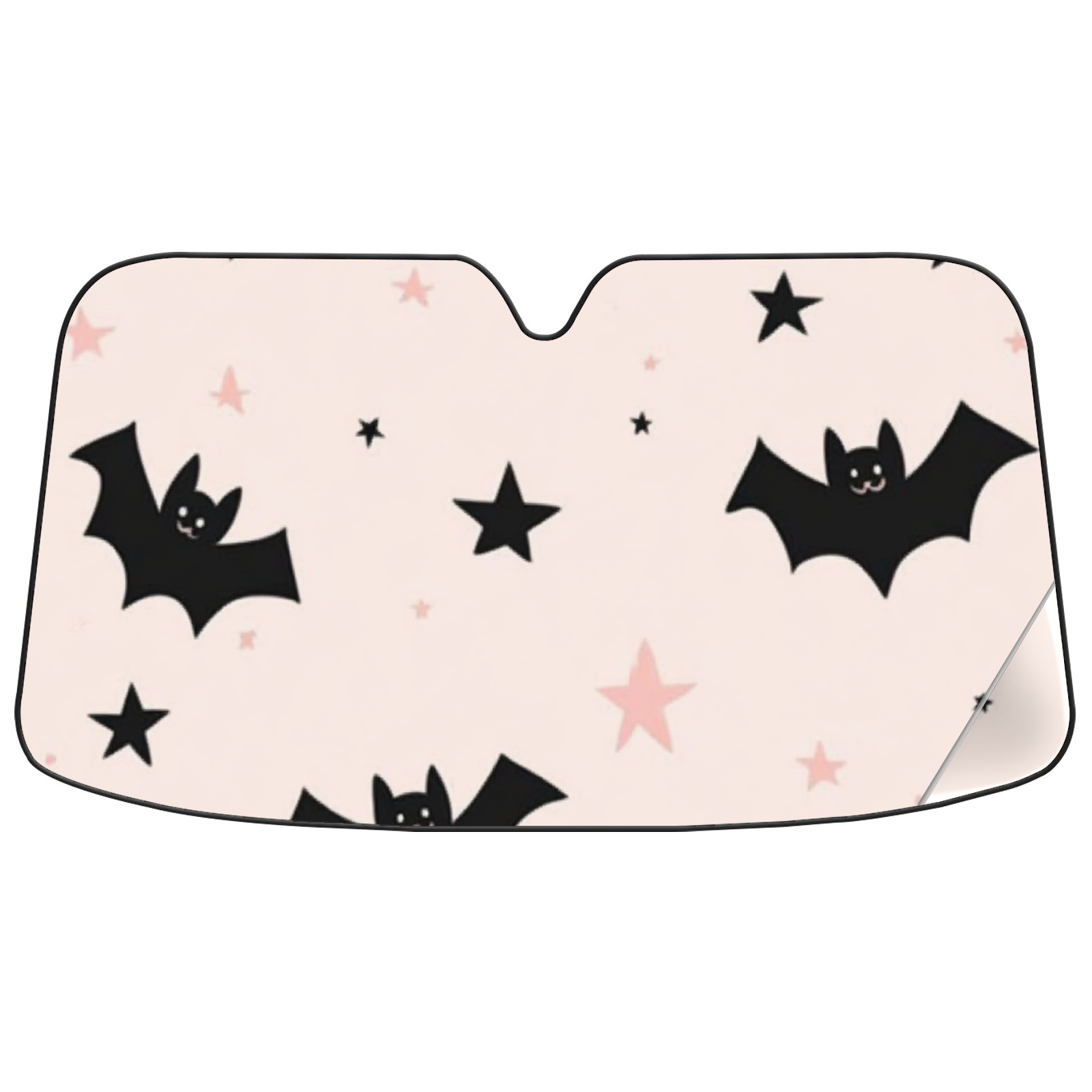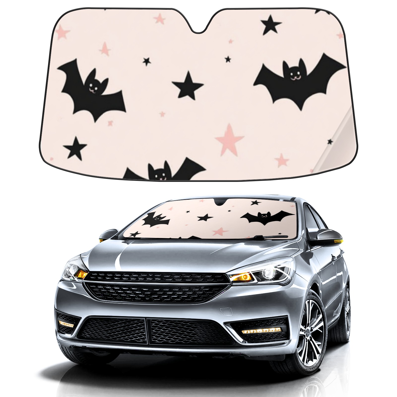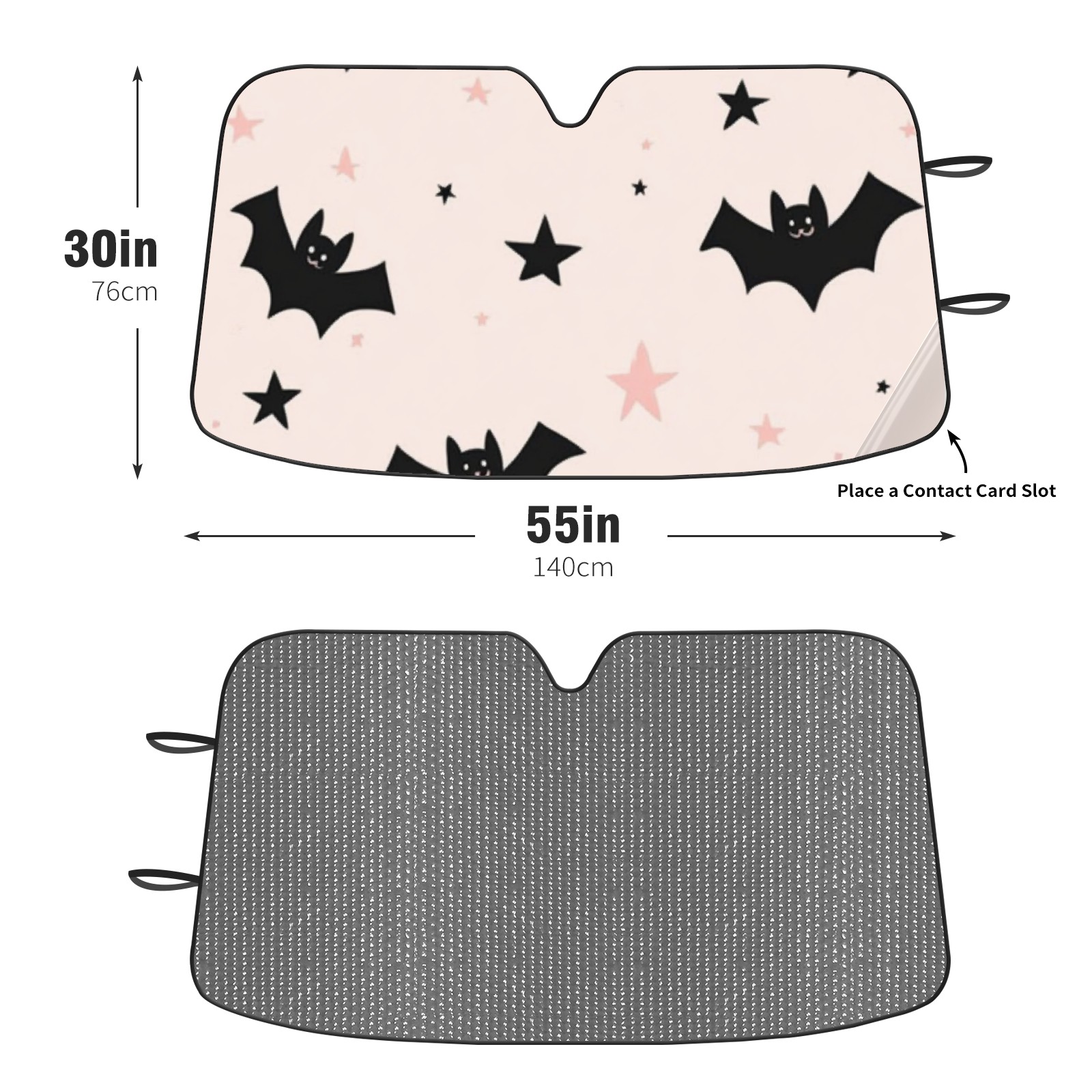 Car Windshield Sun Shade Polyester Car Sunshade Pad, Heat Insulation And Sun Protection Black Bats And Stars