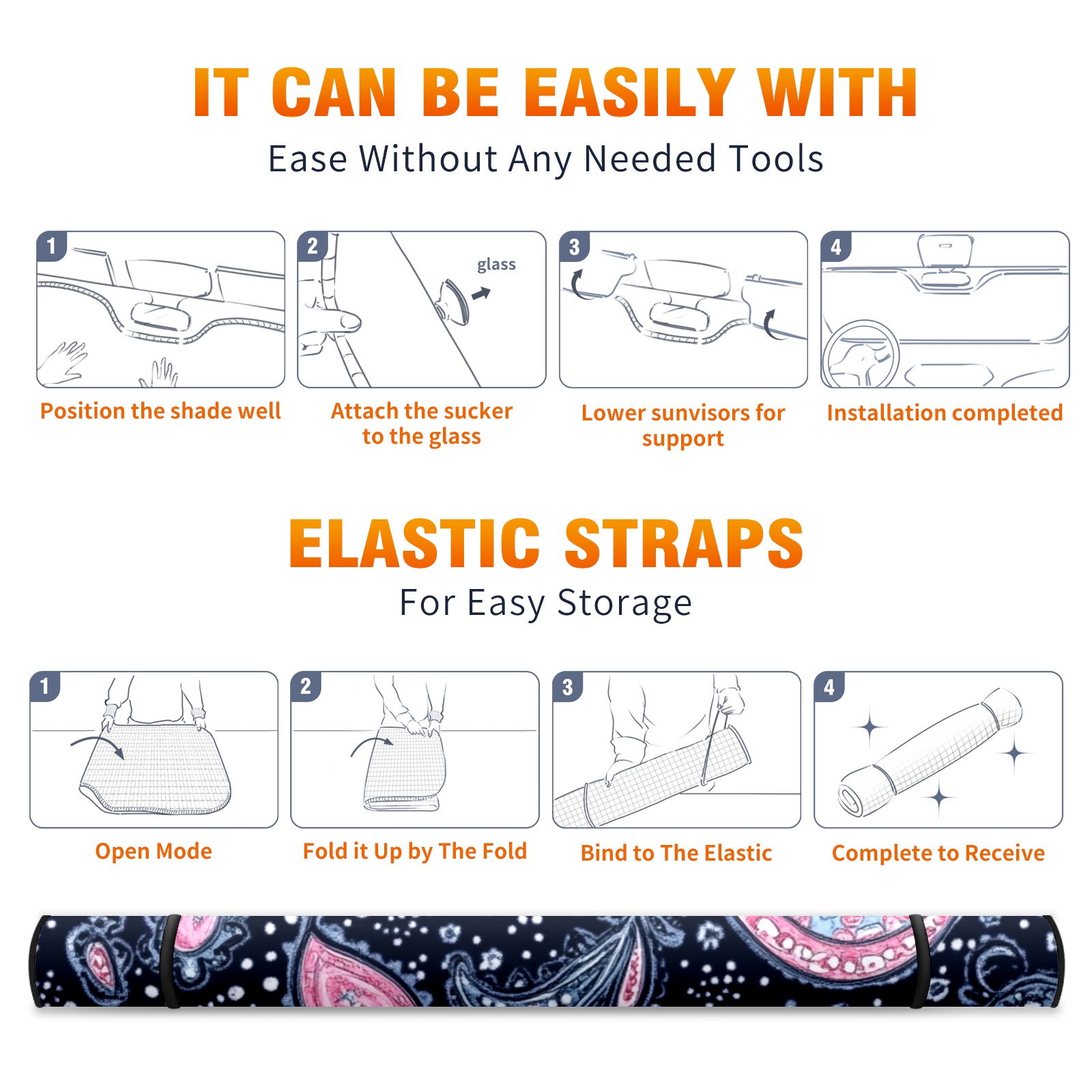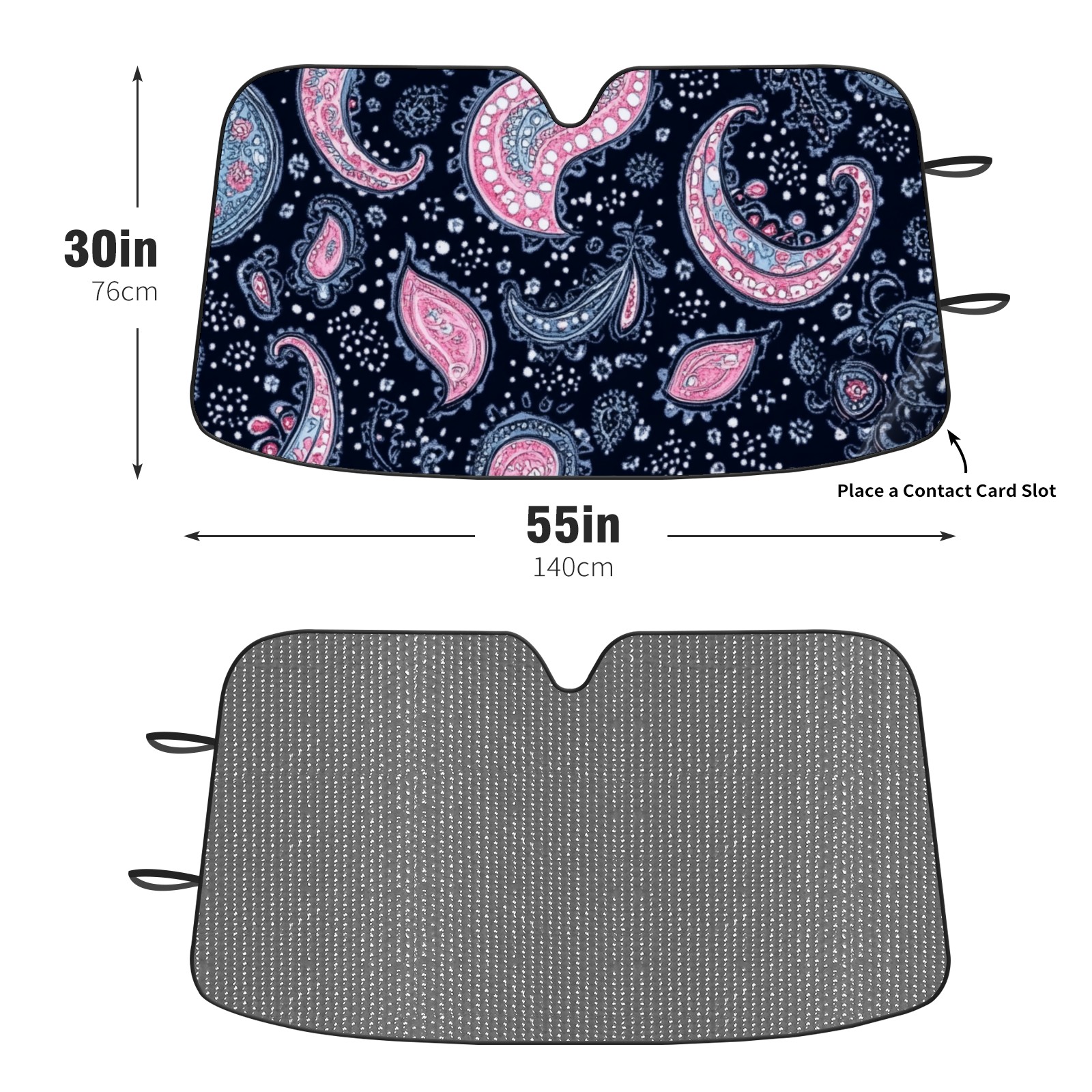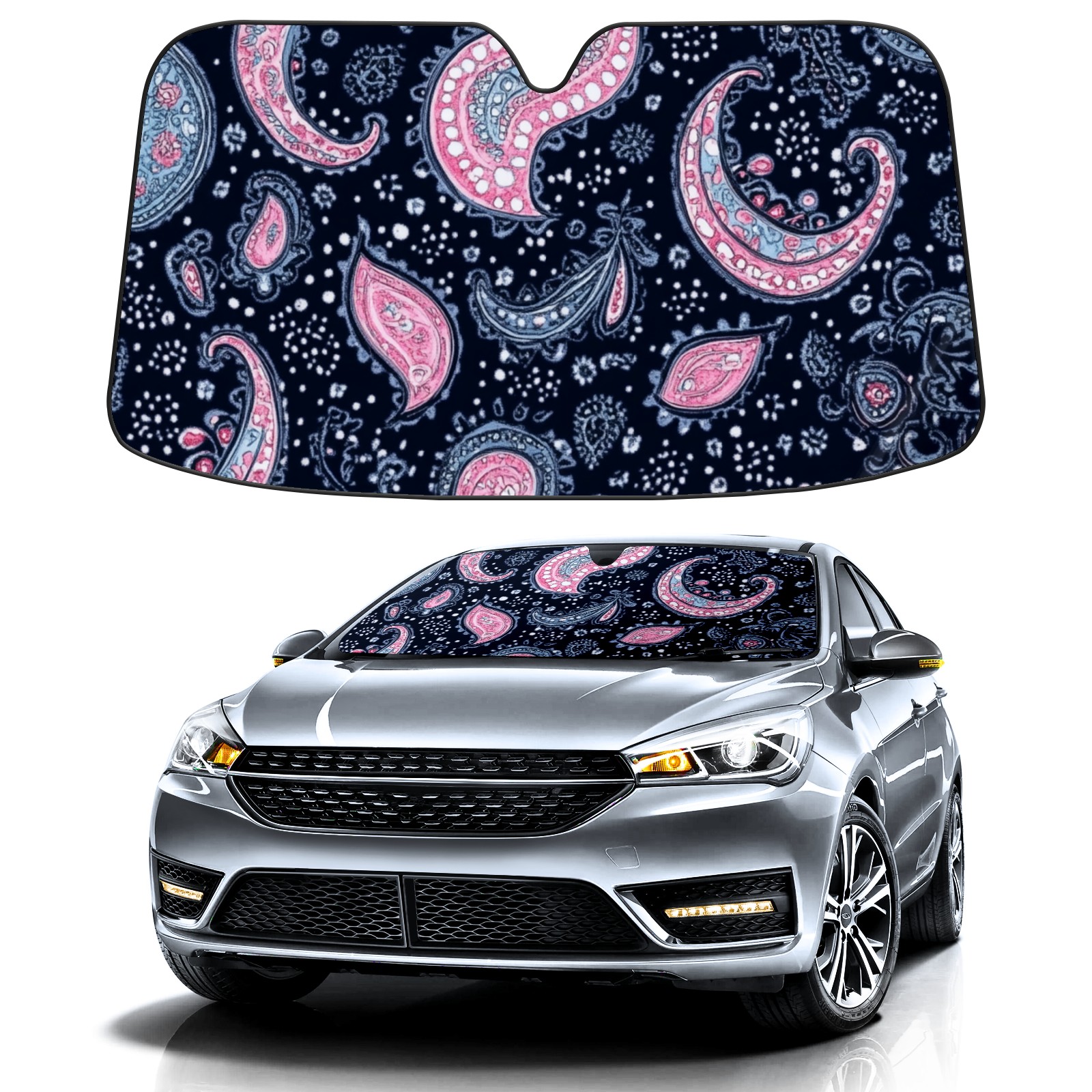 Car Windshield Sun Shade Polyester Car Sunshade Pad, Heat Insulation And Sun Protection Dark Blue And Pink Paisley