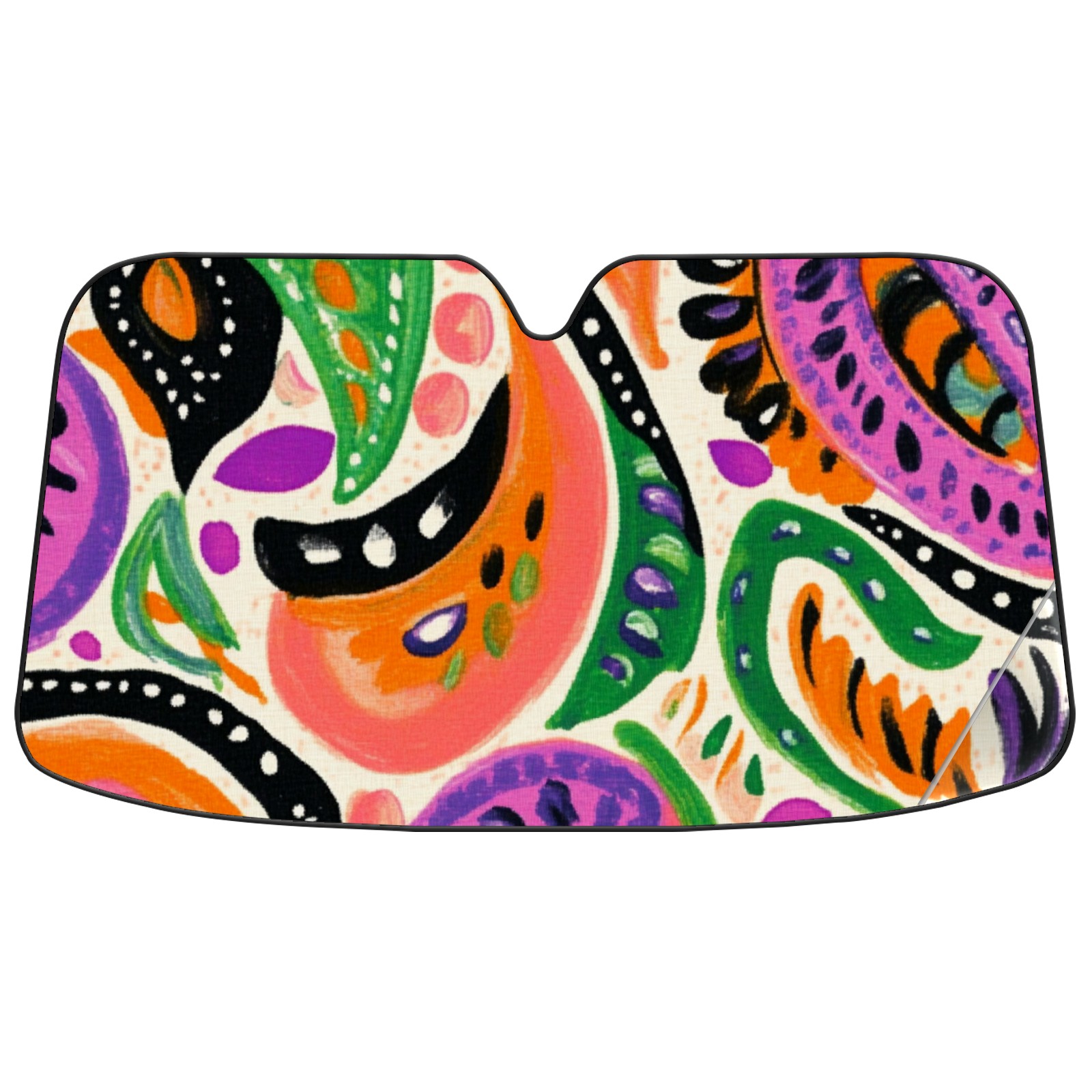 Car Windshield Sun Shade Polyester Car Sunshade Pad, Heat Insulation And Sun Protection Paisley