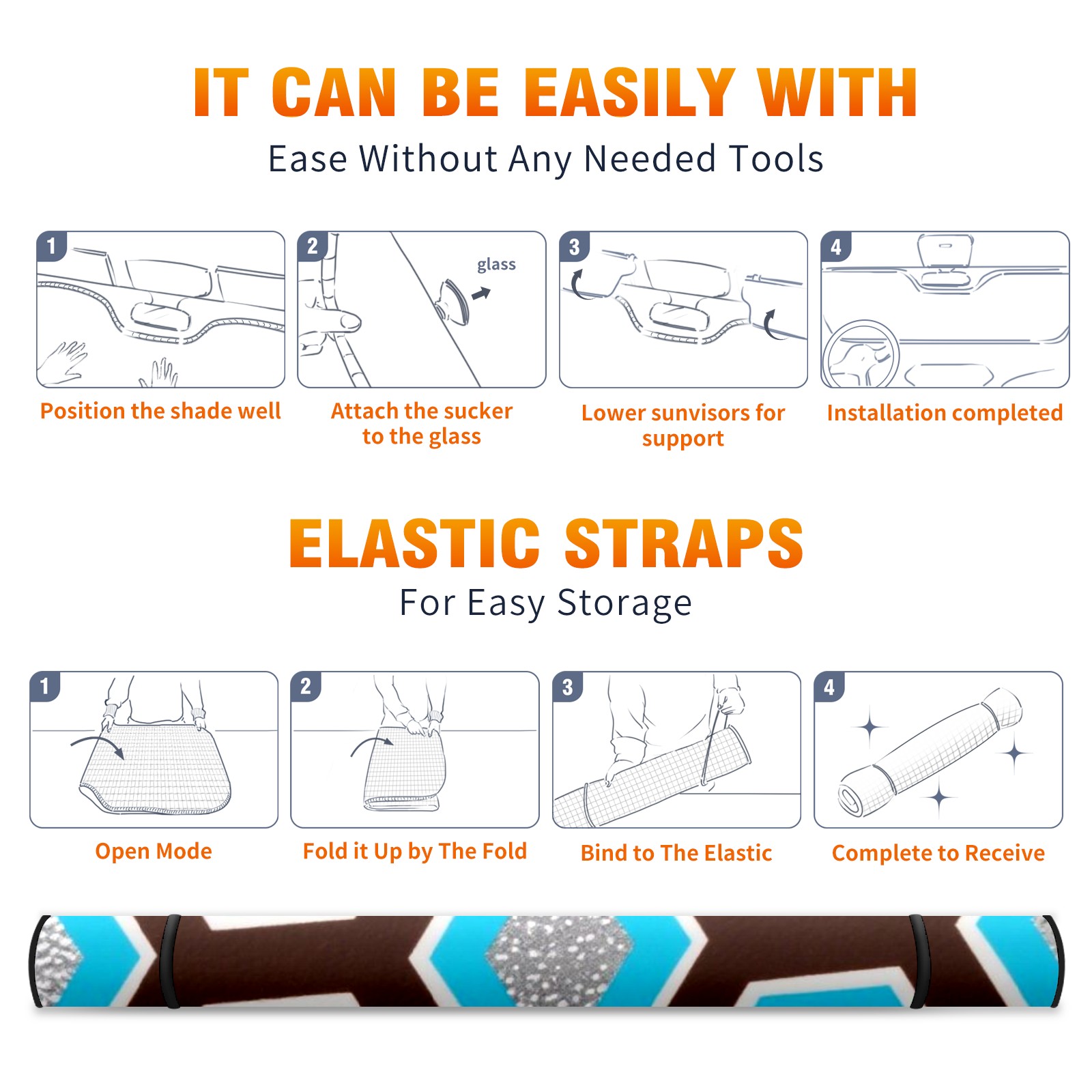 Car Windshield Sun Shade Polyester Car Sunshade Pad, Heat Insulation And Sun Protection Stripe