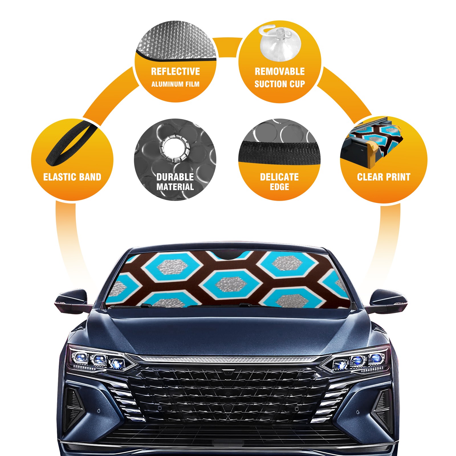 • <p>This car sunshade pad is made of a high-quality combination of aluminum foil and polyester, reinforced with transparent adhesive. It measures 140x76cm (55inx30in) and is a practical choice for protecting your car. Its powerful UV protection function can effectively block harmful light, prevent the car interior from aging due to exposure to sunlight, and maintain the dashboard, steering wheel, and seats in a brand new state.<br></p>