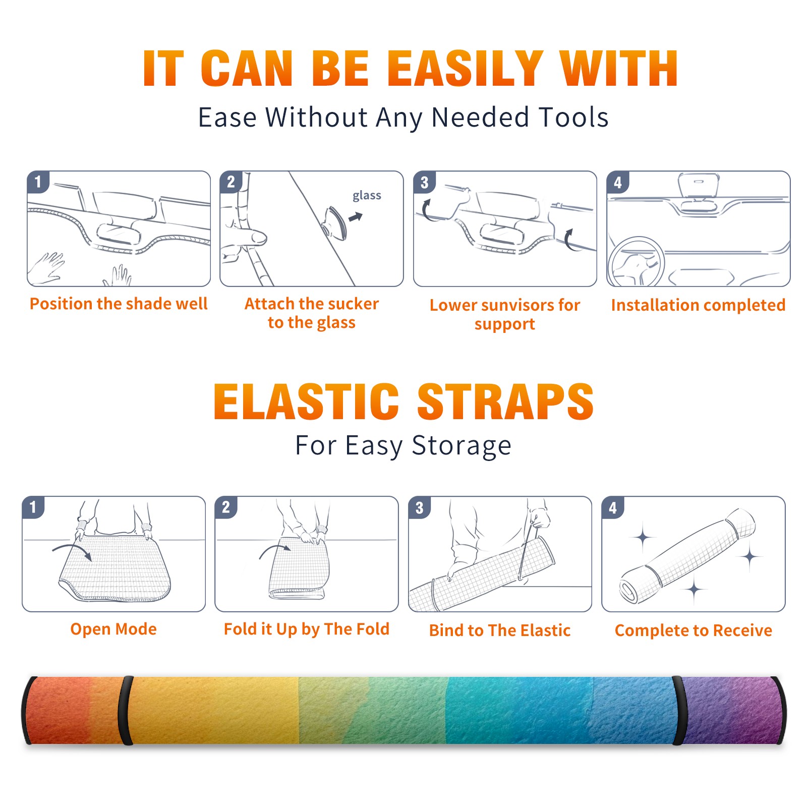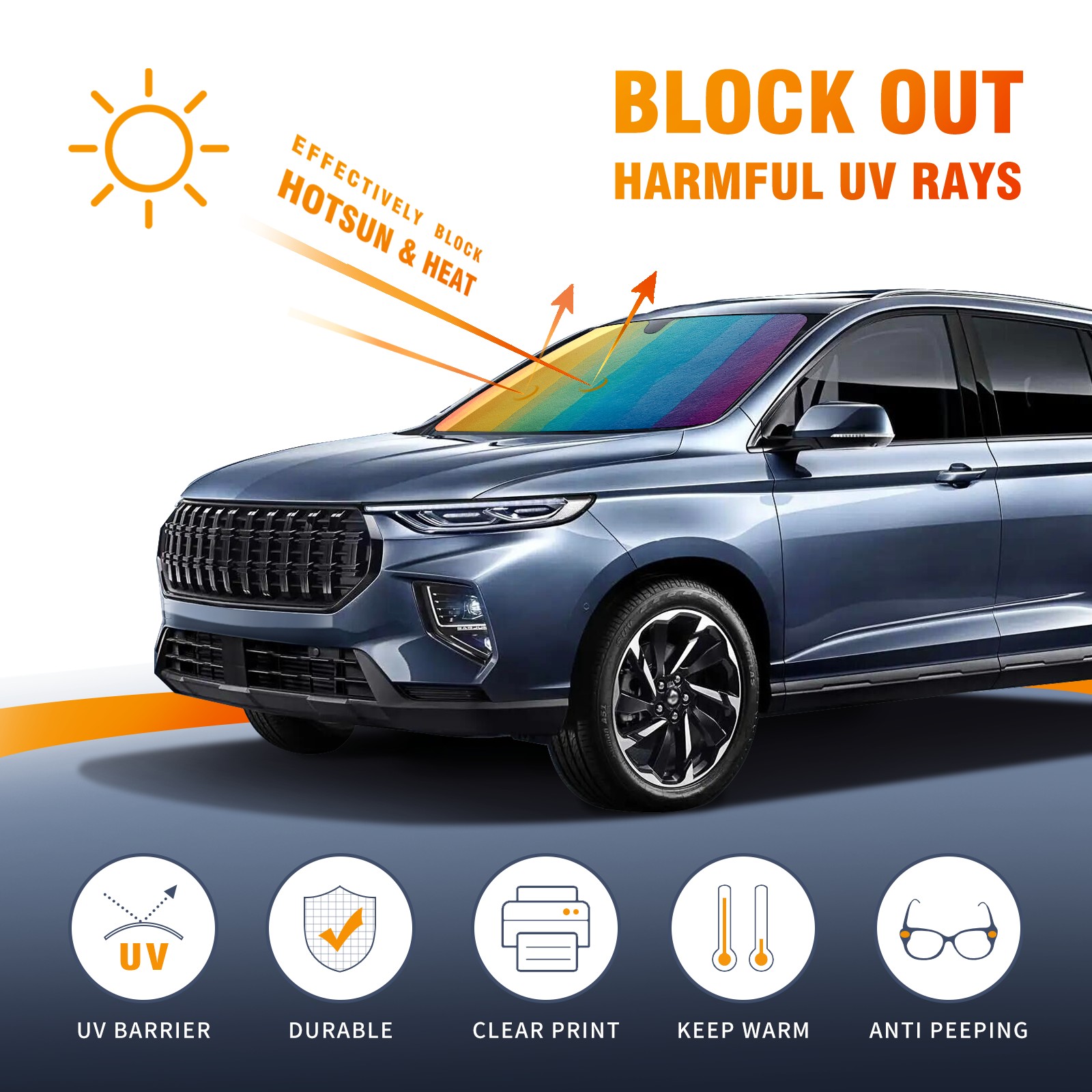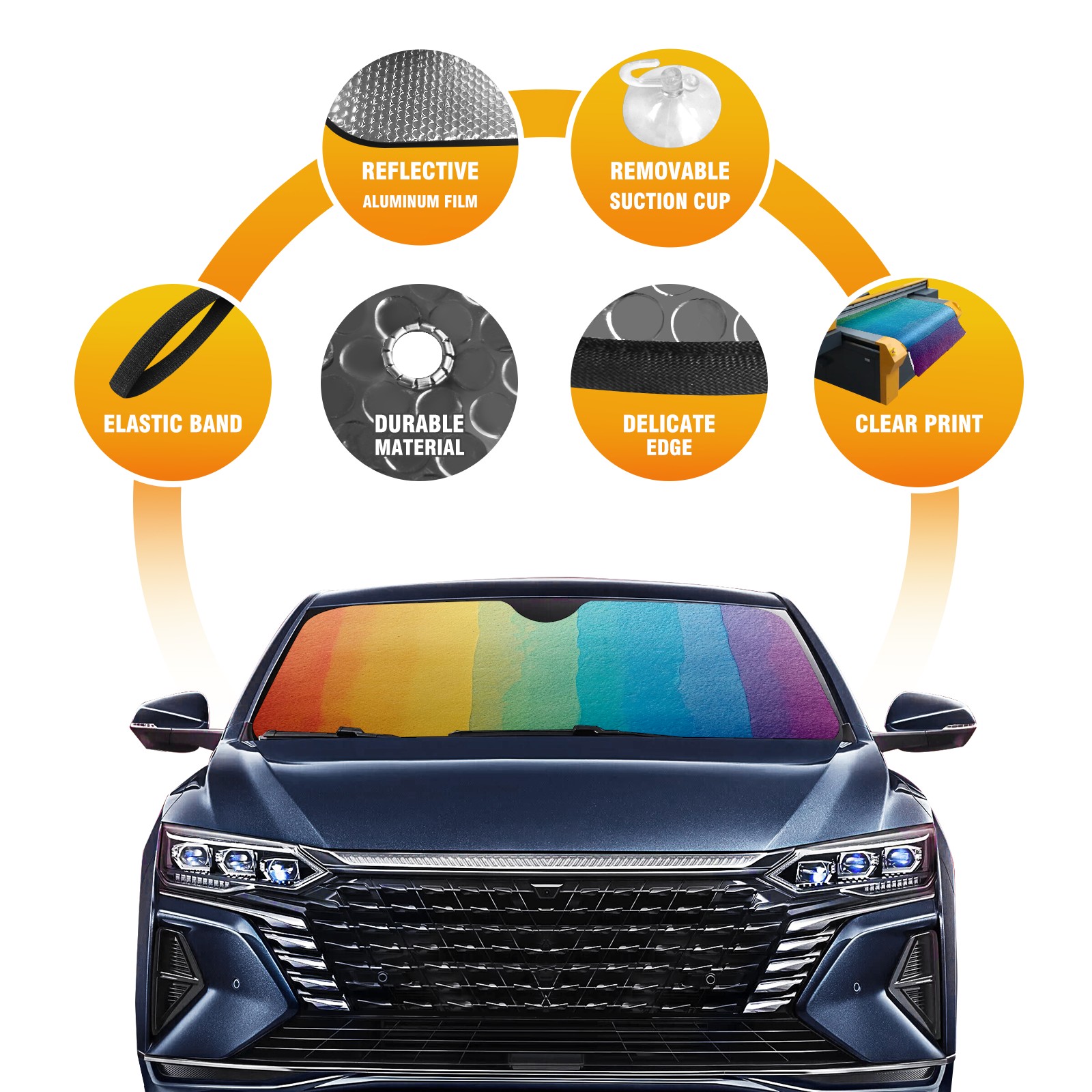 Car Windshield Sun Shade Polyester Car Sunshade Pad, Heat Insulation And Sun Protection Rainbow Cloth 1