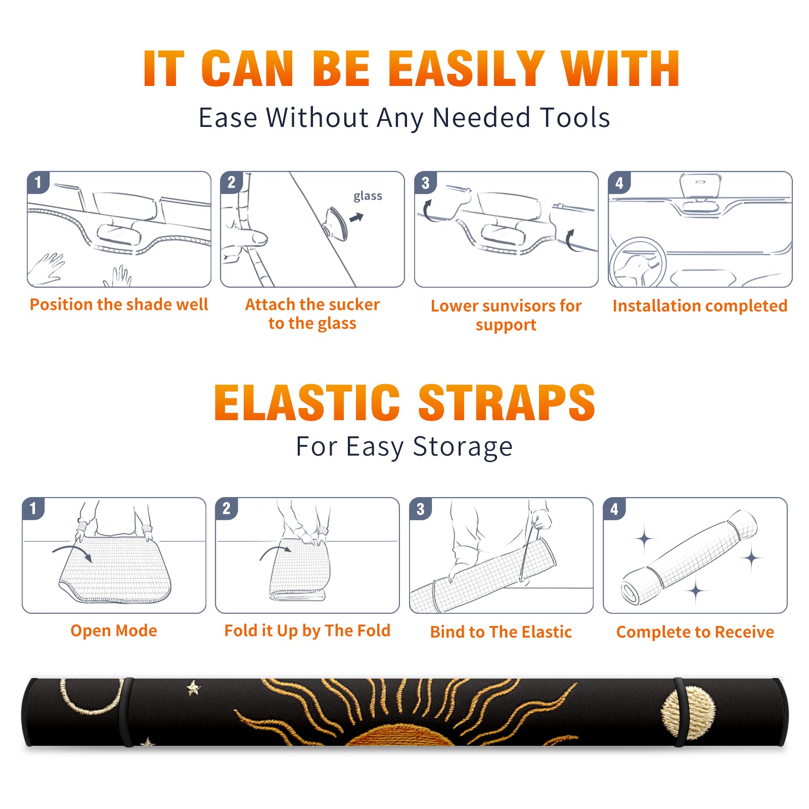 Car Windshield Sun Shade Polyester Car Sunshade Pad, Heat Insulation And Sun Protection Cosmic Phases