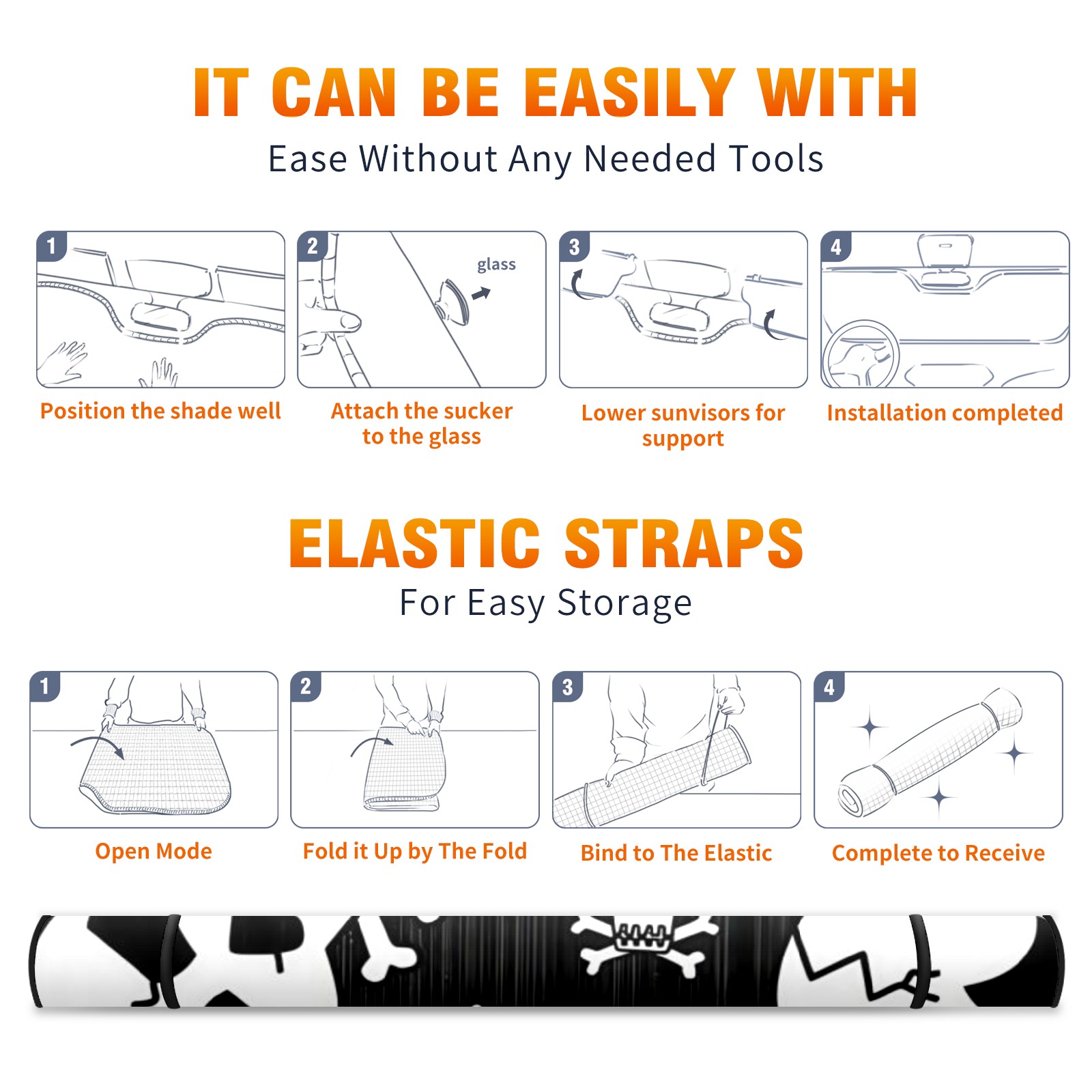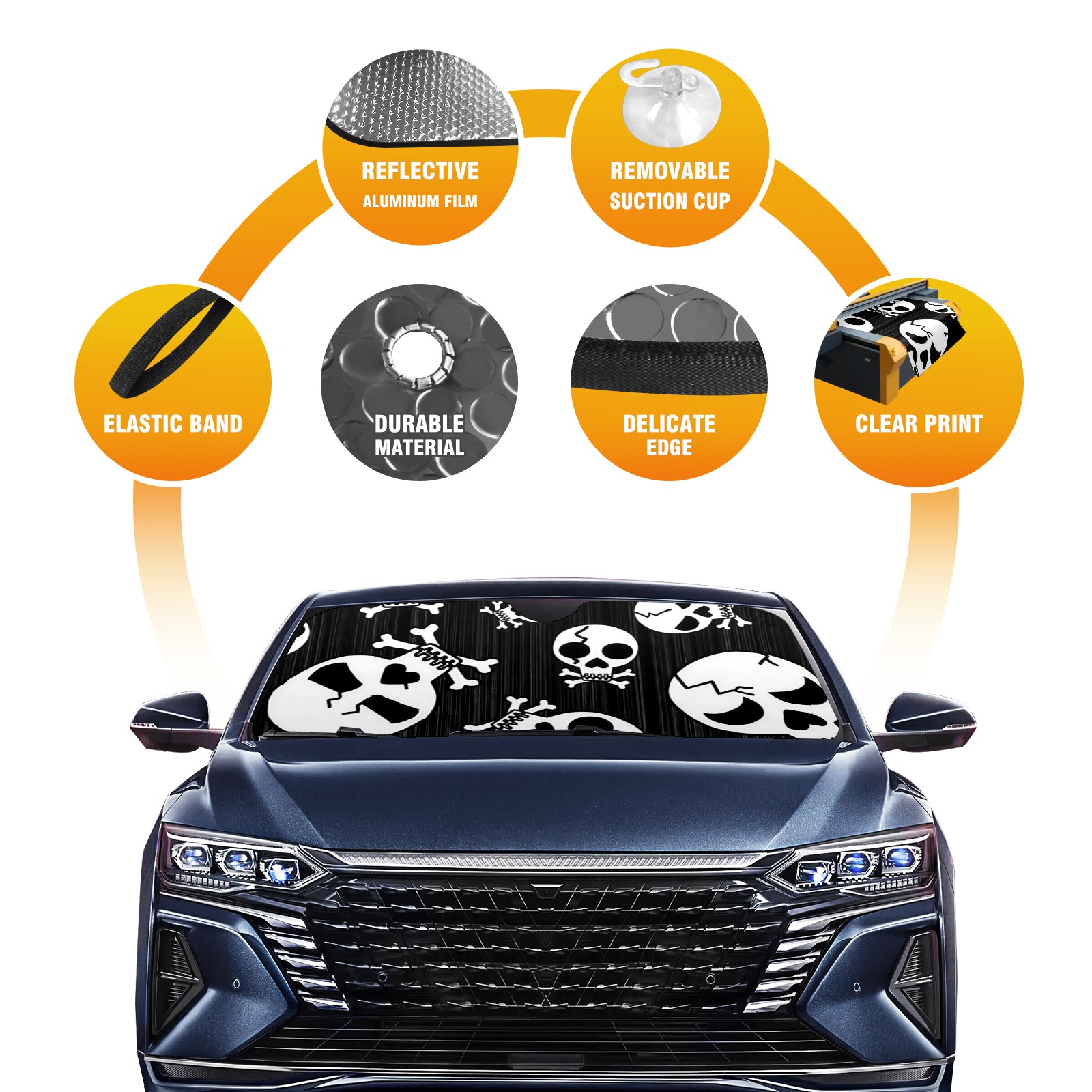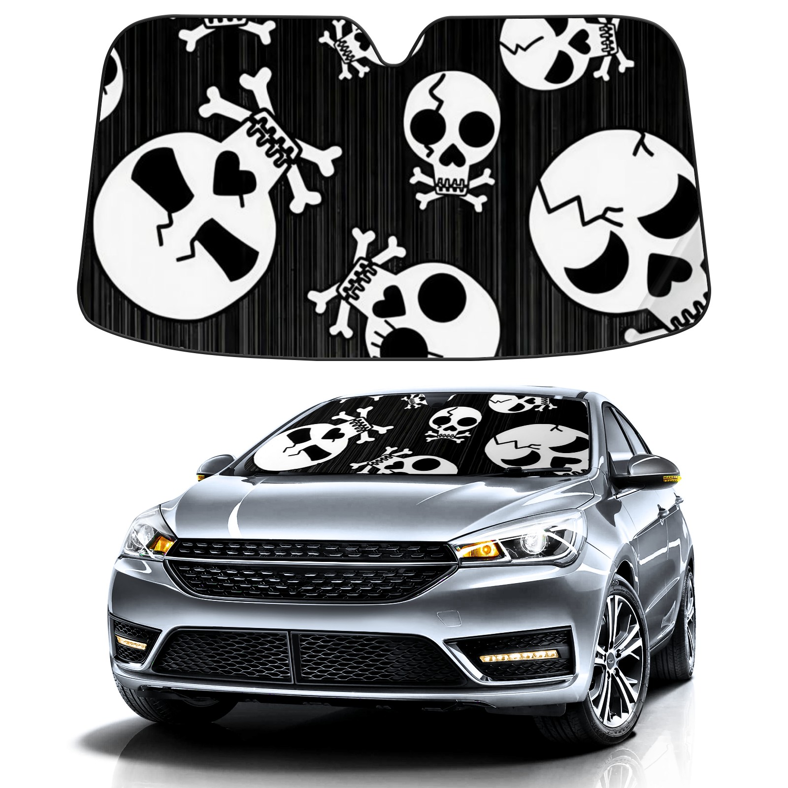 Car Windshield Sun Shade Polyester Car Sunshade Pad, Heat Insulation And Sun Protection Skull Rose Art