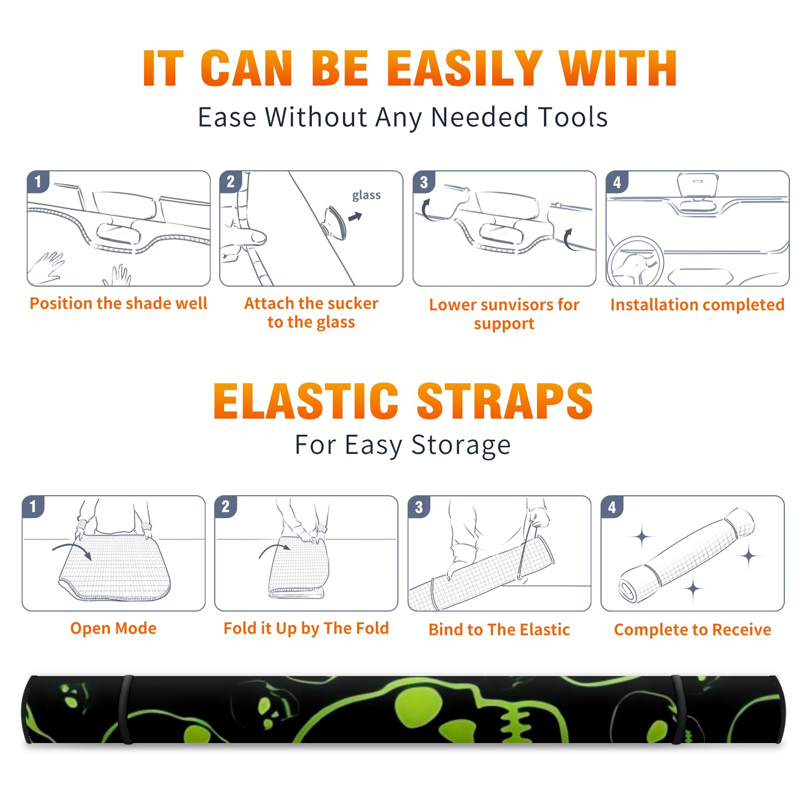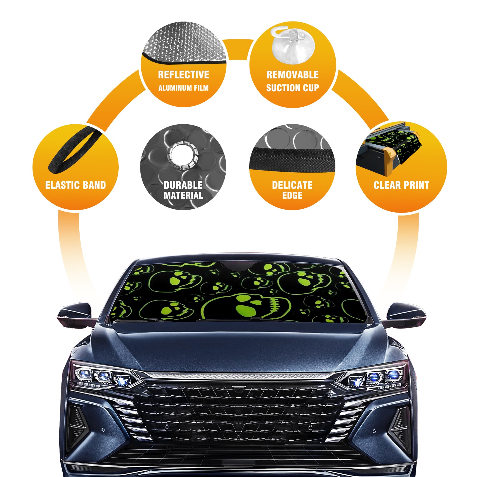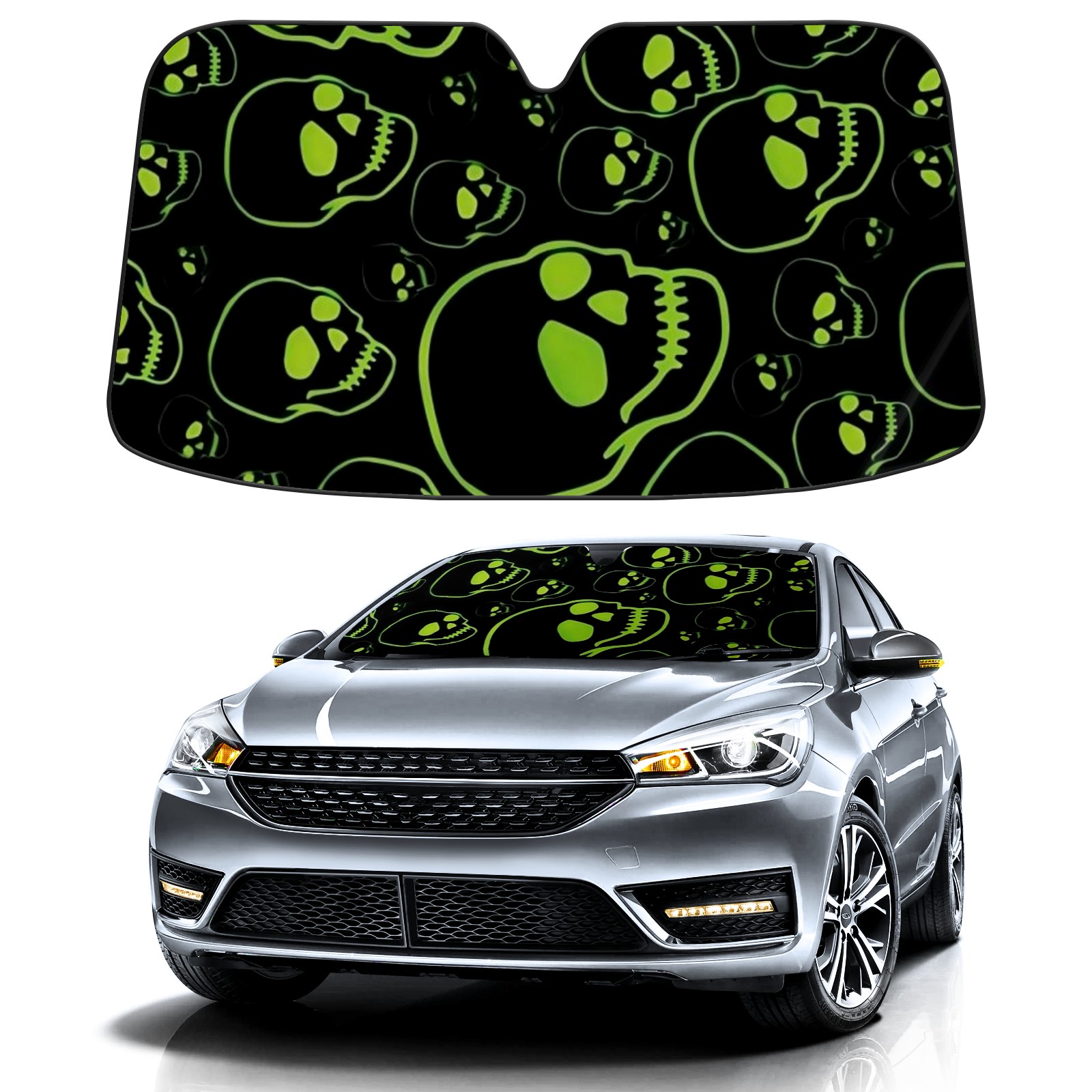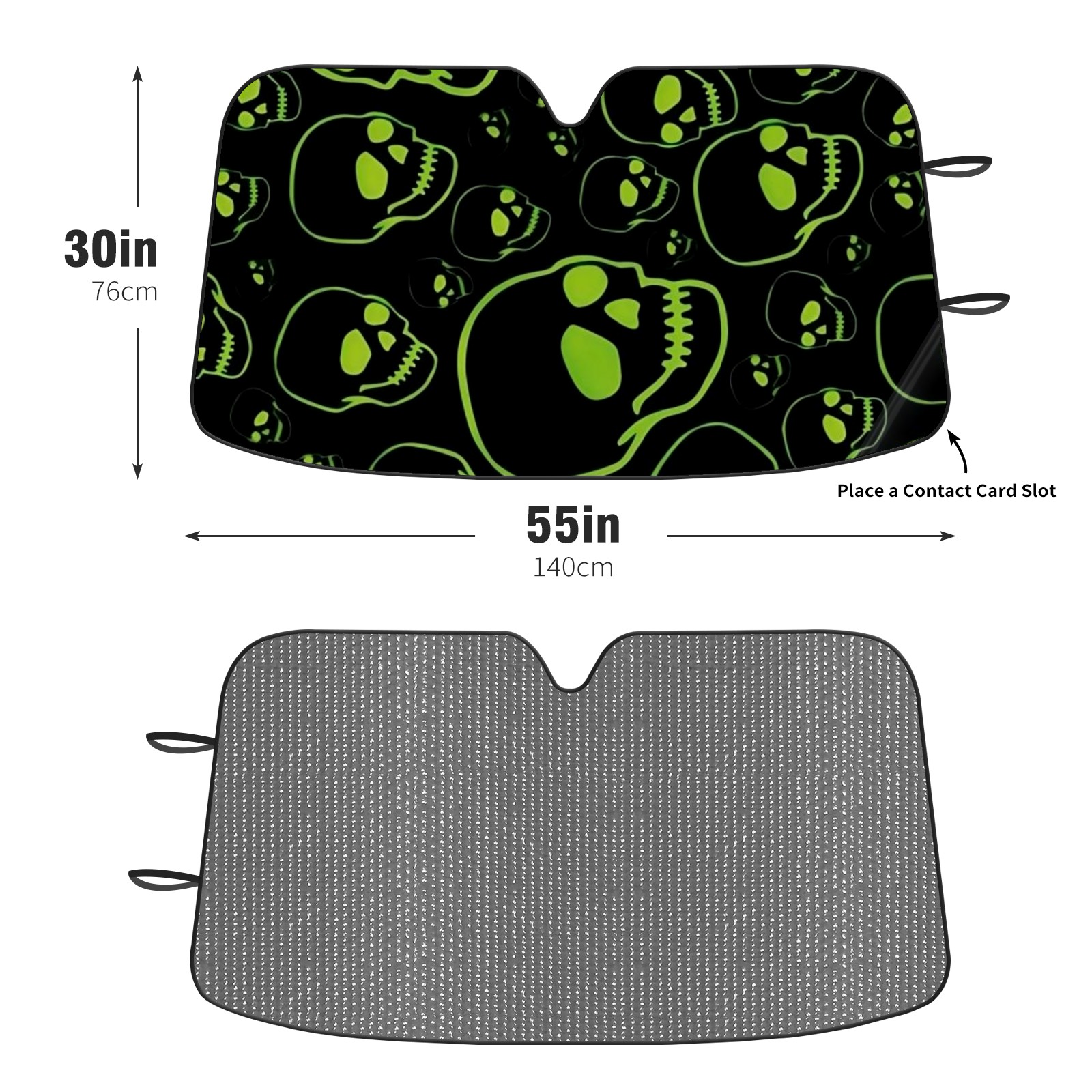 Car Windshield Sun Shade Polyester Car Sunshade Pad, Heat Insulation And Sun Protection Glow Skull Wall