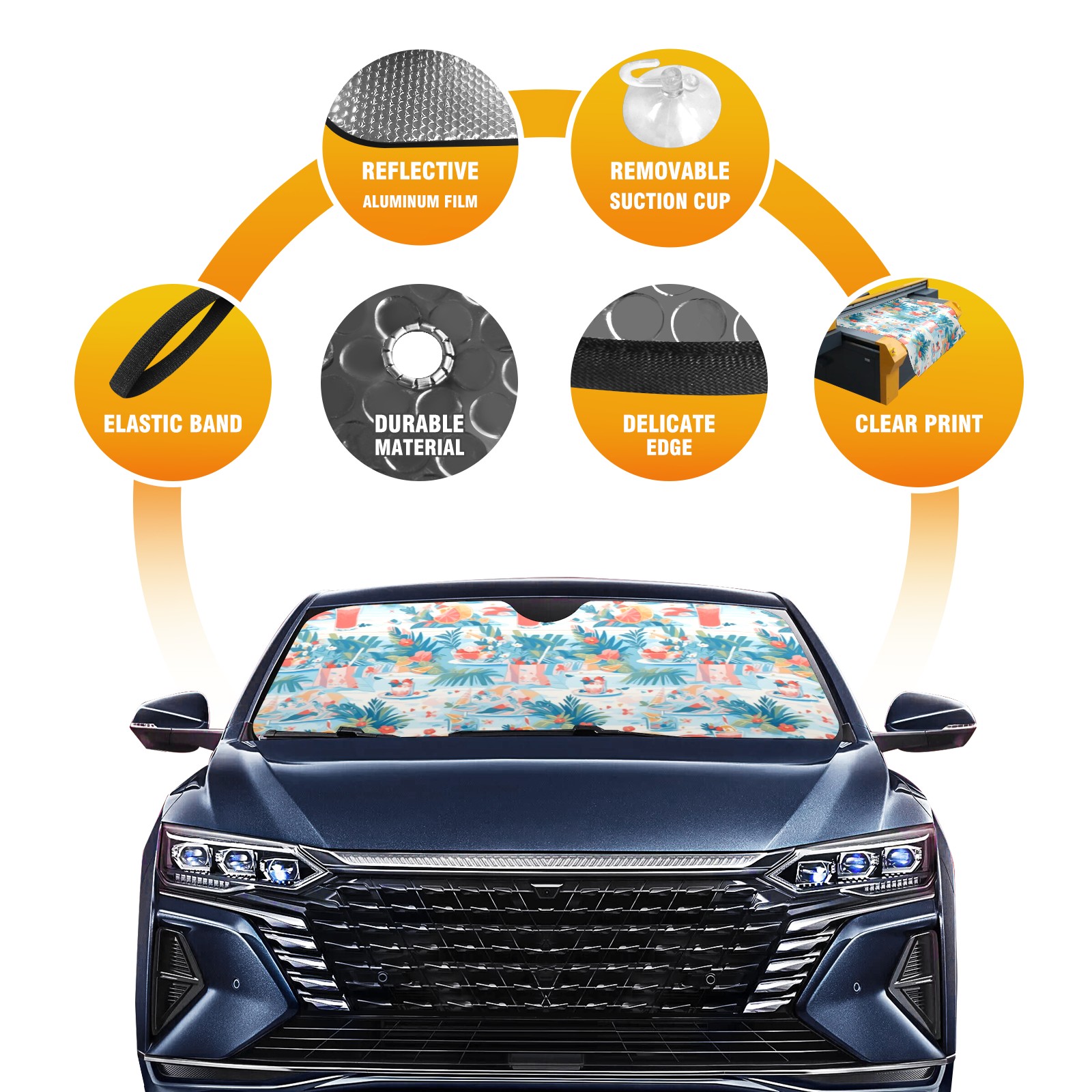 • <p>This car sunshade pad is made of a high-quality combination of aluminum foil and polyester, reinforced with transparent adhesive. It measures 140x76cm (55inx30in) and is a practical choice for protecting your car. Its powerful UV protection function can effectively block harmful light, prevent the car interior from aging due to exposure to sunlight, and maintain the dashboard, steering wheel, and seats in a brand new state.<br></p>