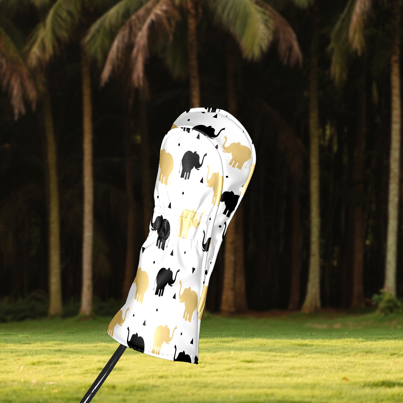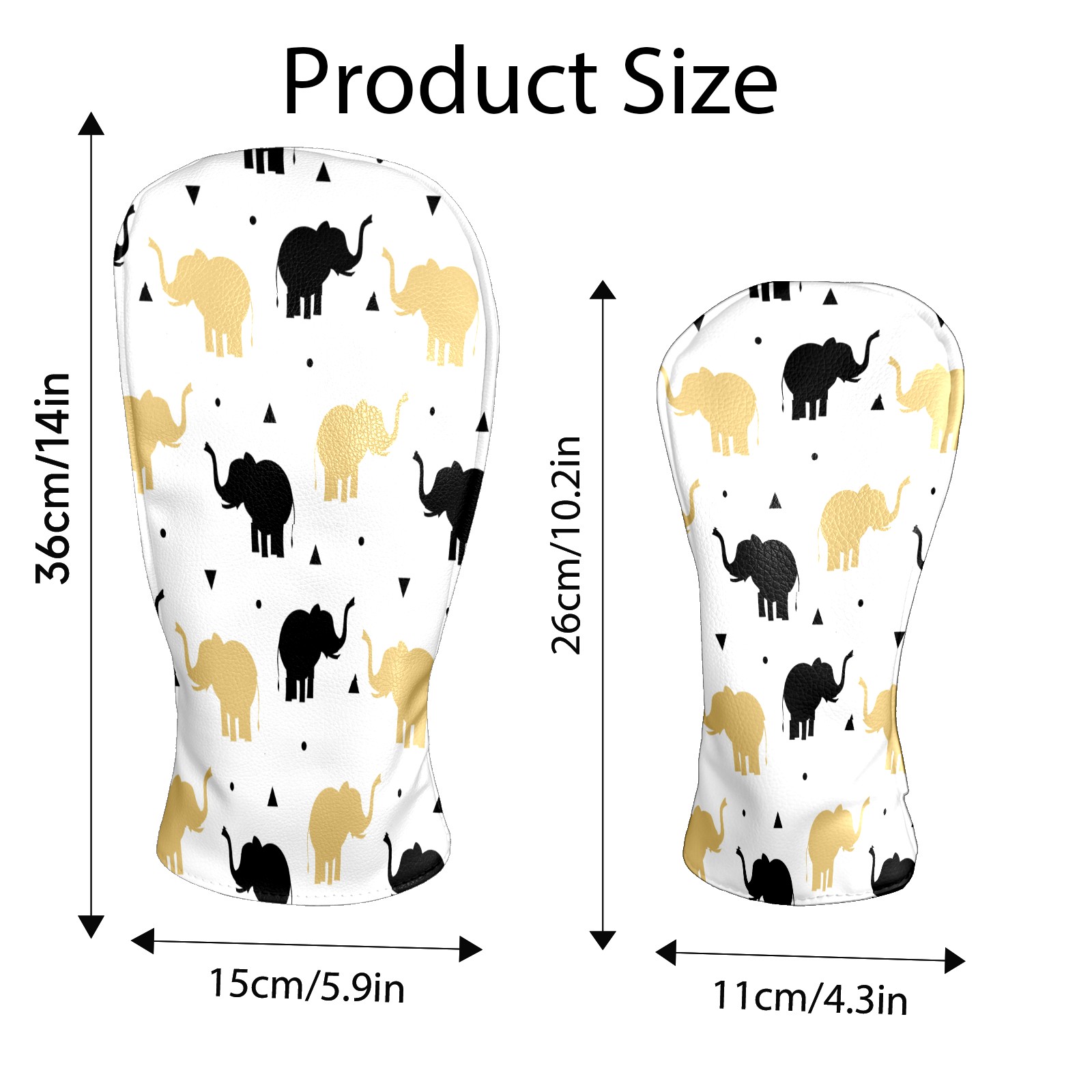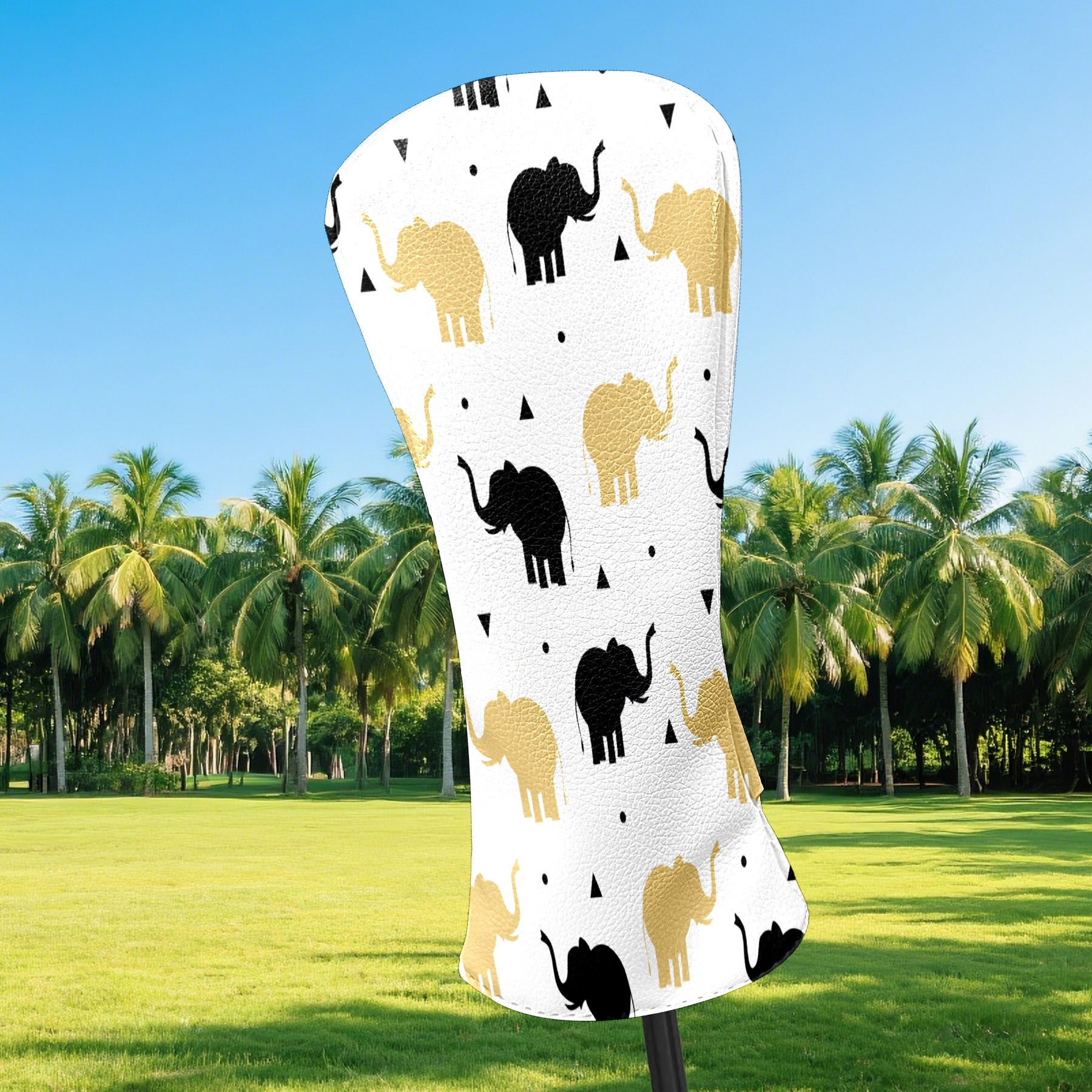 Golf Head Covers Driver Club Head Cover for Drivers Fairway Woods and Hybrid Clubs, PU Leather Golf Club Head Covers for Men and Women Golden Black Elephant Silhouette