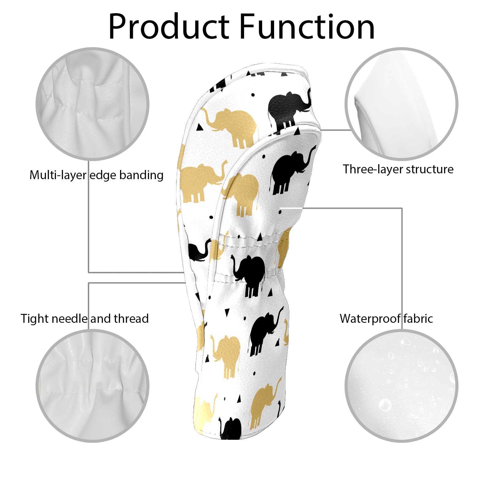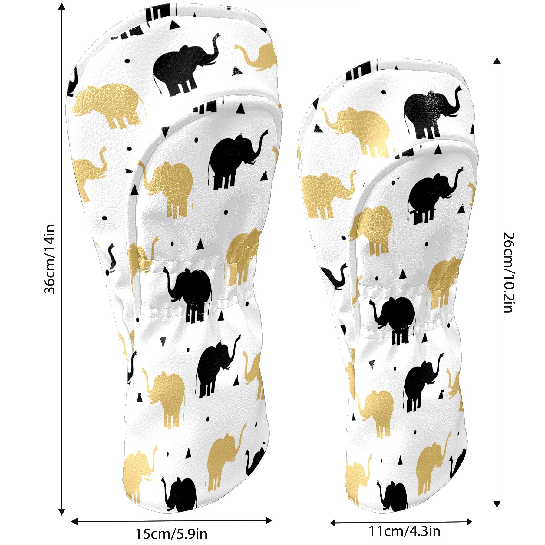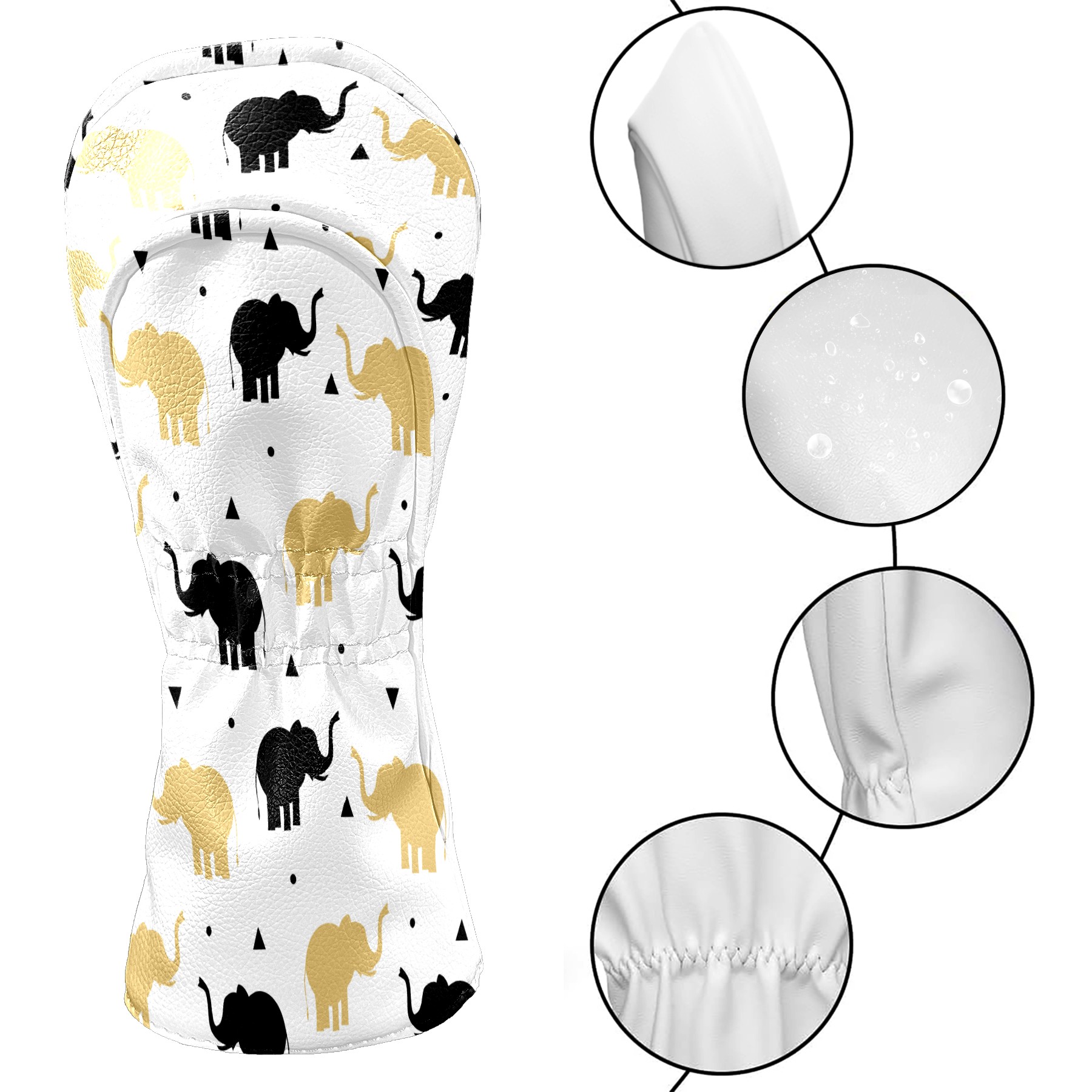 Golf Head Covers Driver Club Head Cover for Drivers Fairway Woods and Hybrid Clubs, PU Leather Golf Club Head Covers for Men and Women Golden Black Elephant Silhouette