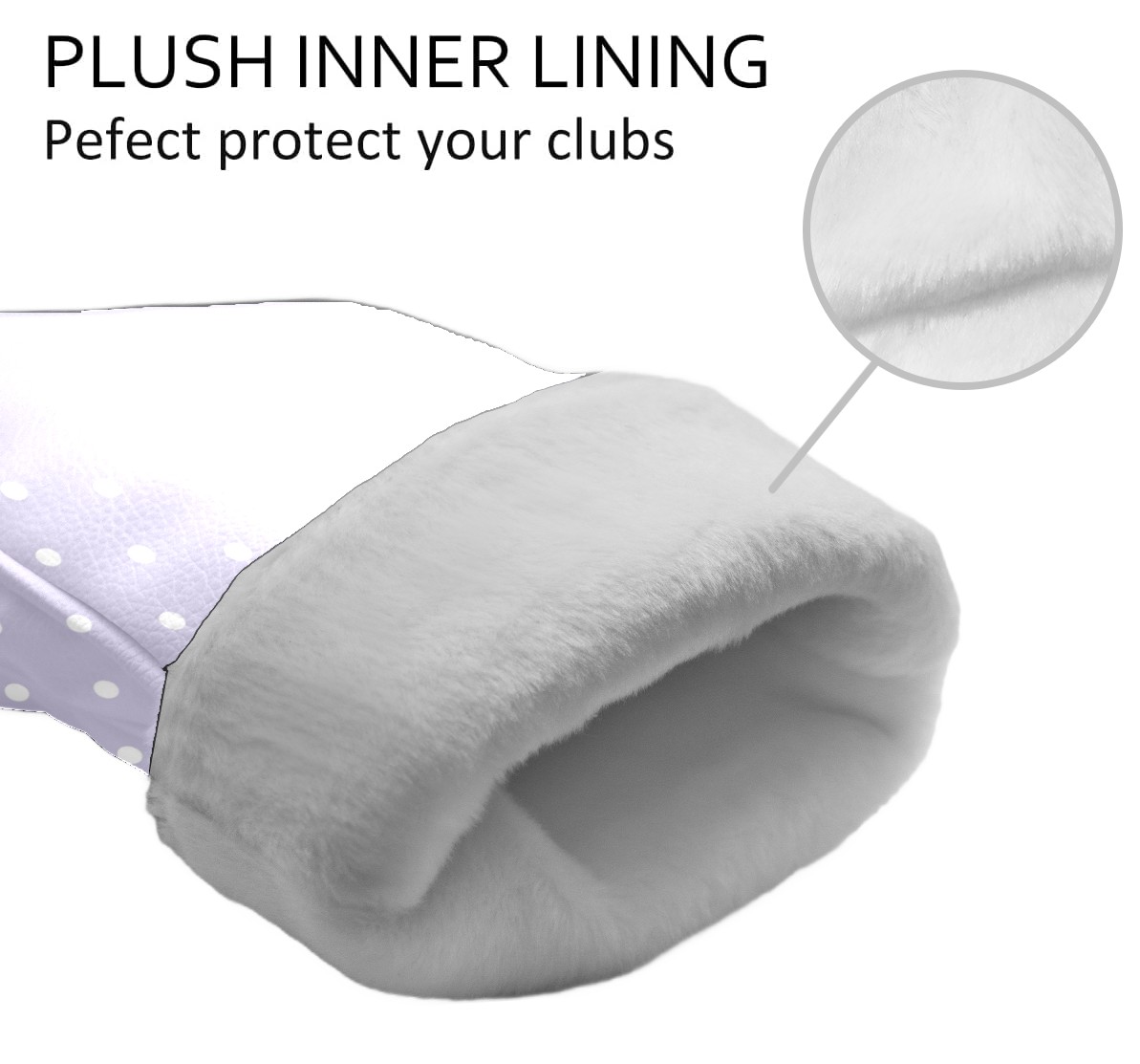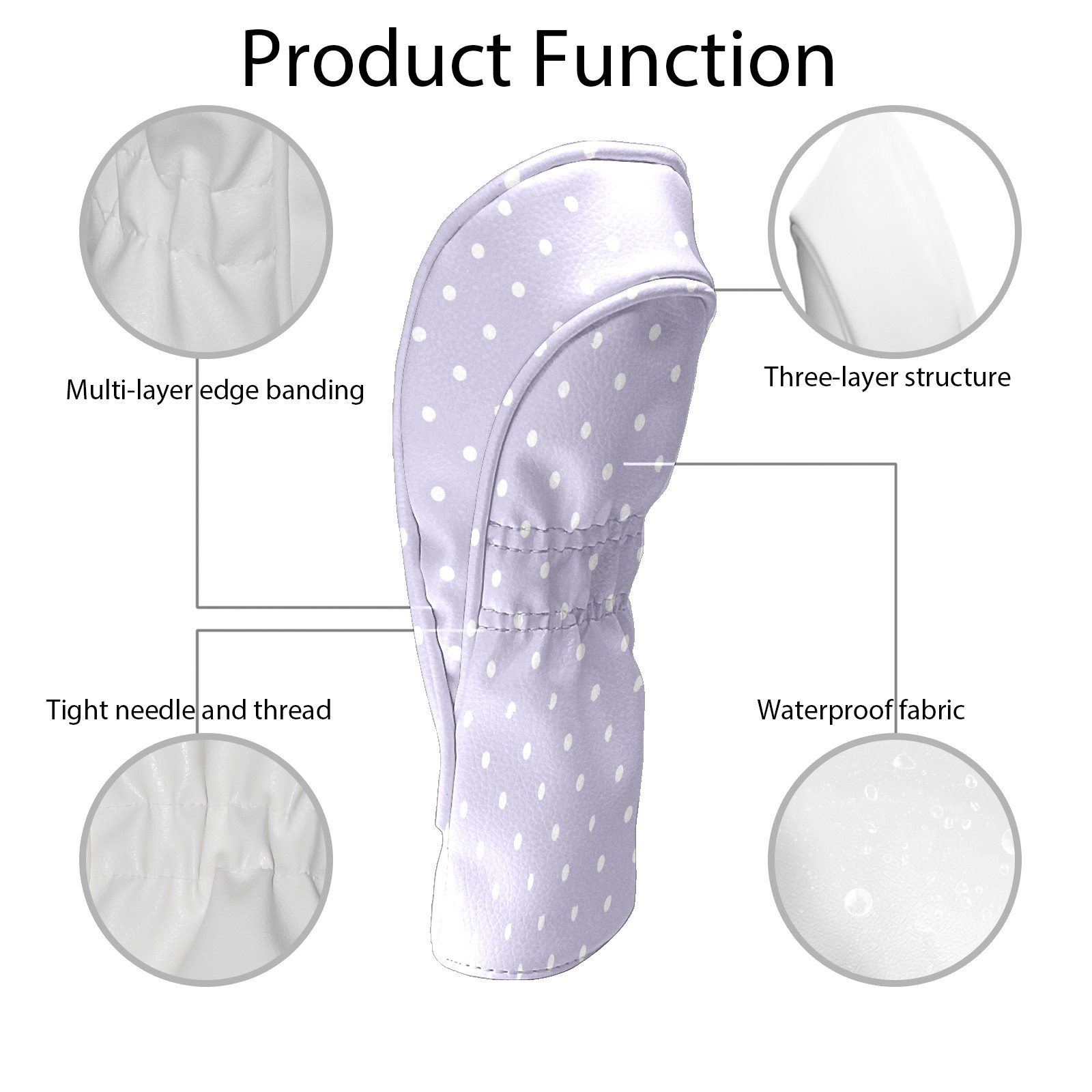 Golf Head Covers Driver Club Head Cover for Drivers Fairway Woods and Hybrid Clubs, PU Leather Golf Club Head Covers for Men and Women Polka Dot Pattern Purple Background