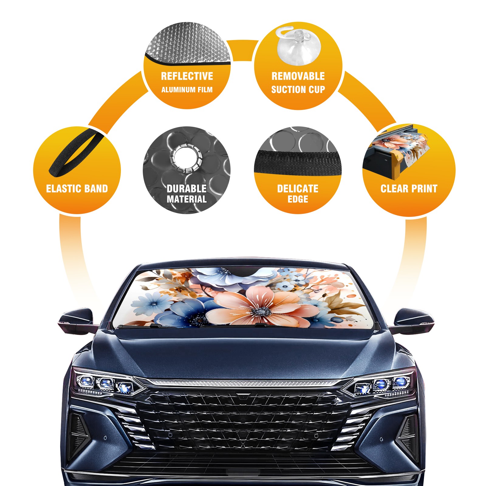 <p>This car sunshade pad is made of a high-quality combination of aluminum foil and polyester, reinforced with transparent adhesive. It measures 140x76cm (55inx30in) and is a practical choice for protecting your car. Its powerful UV protection function can effectively block harmful light, prevent the car interior from aging due to exposure to sunlight, and maintain the dashboard, steering wheel, and seats in a brand new state.<br></p>