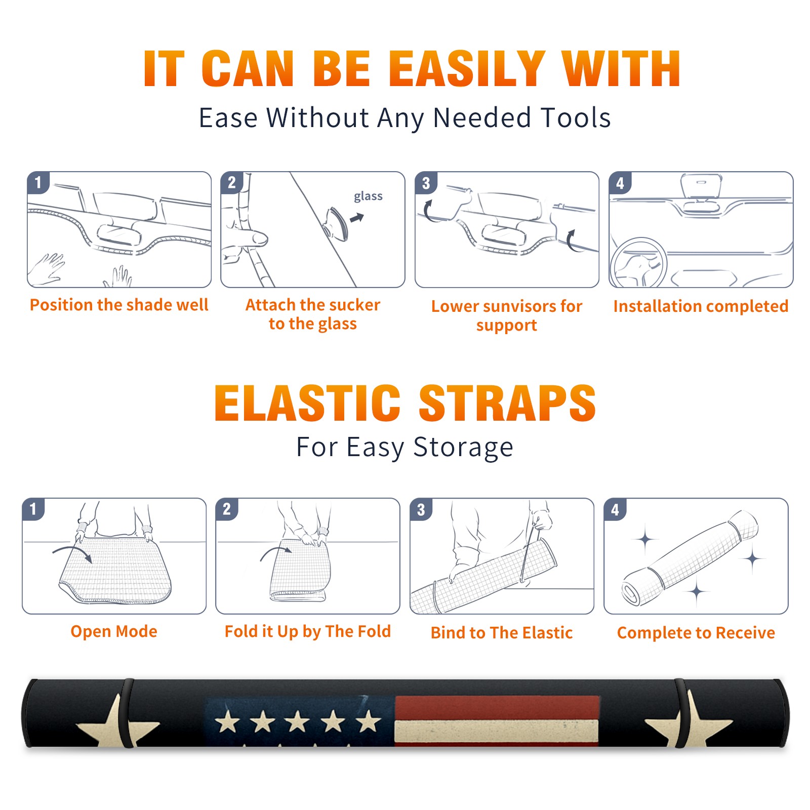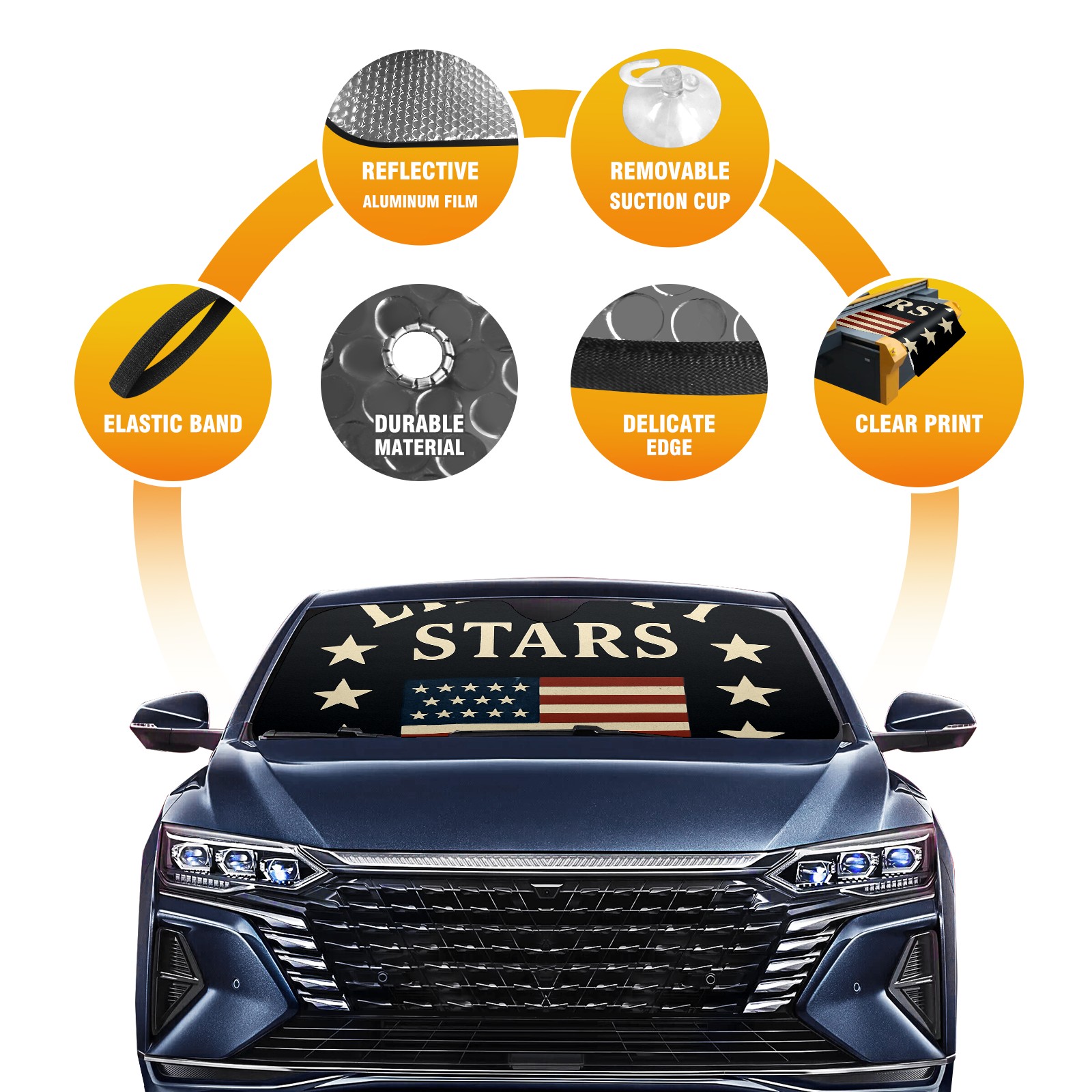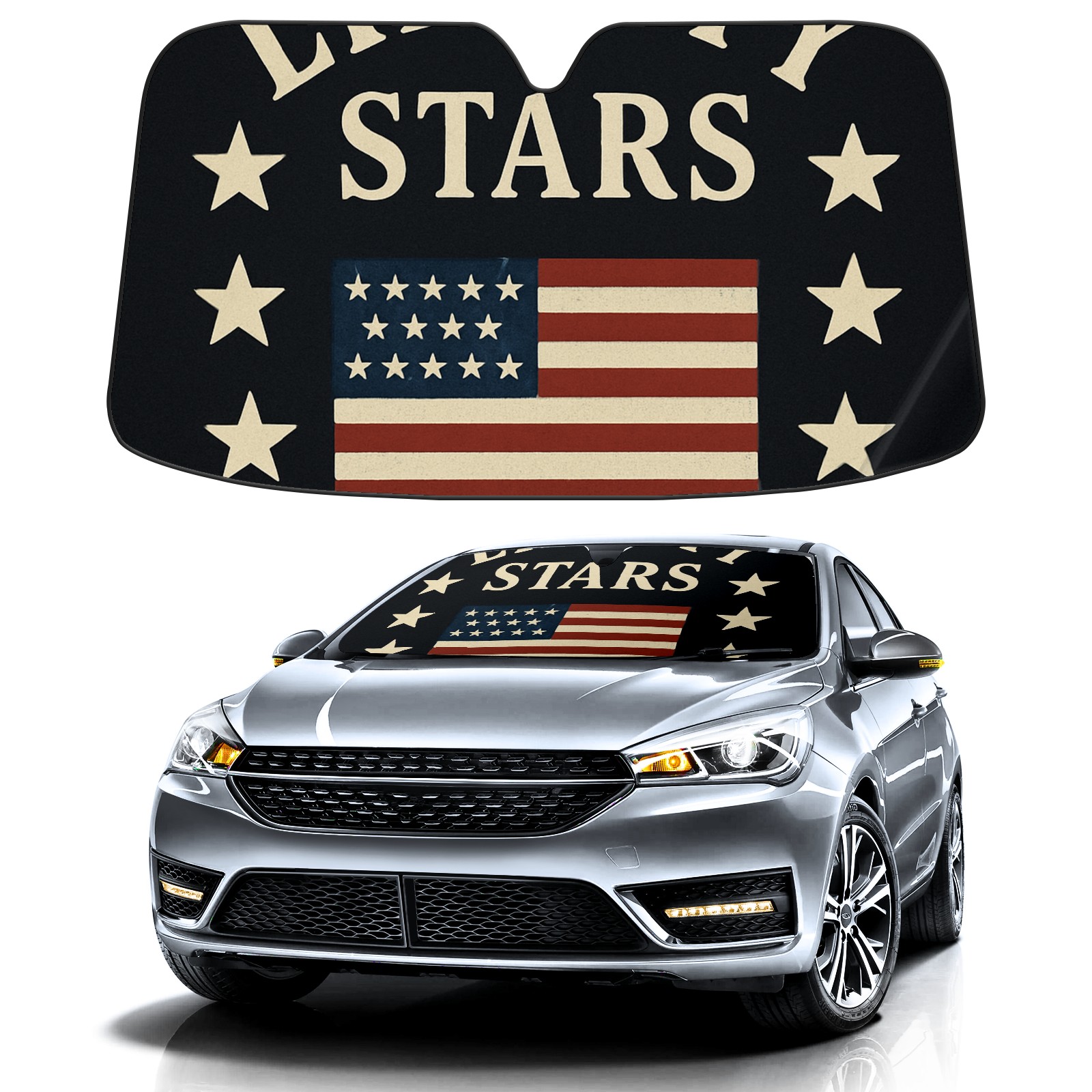 Car Windshield Sun Shade Polyester Car Sunshade Pad, Heat Insulation And Sun Protection Liberty Stars