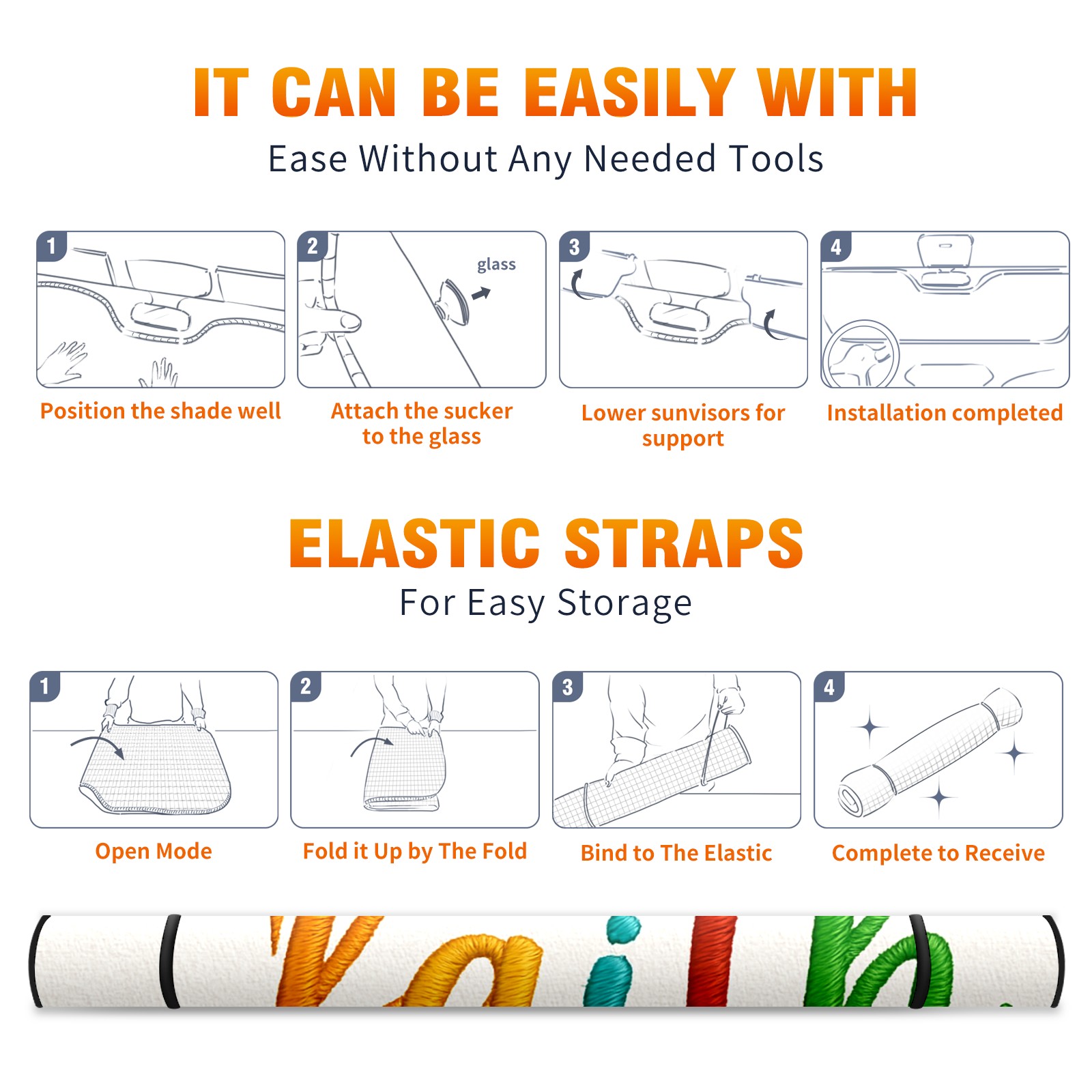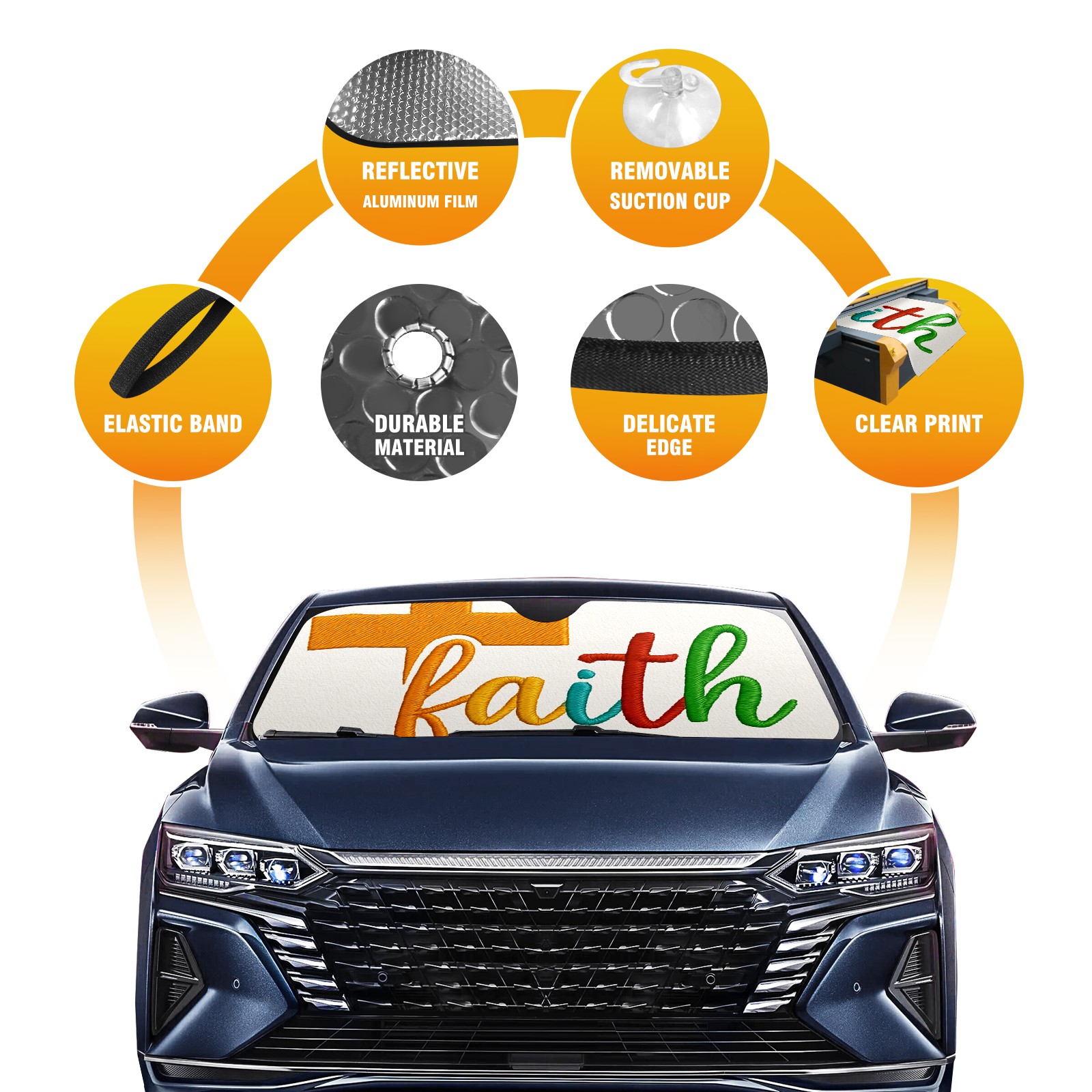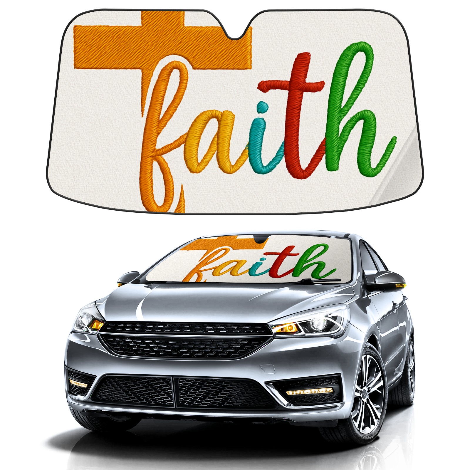 Car Windshield Sun Shade Polyester Car Sunshade Pad, Heat Insulation And Sun Protection Colorful Faith