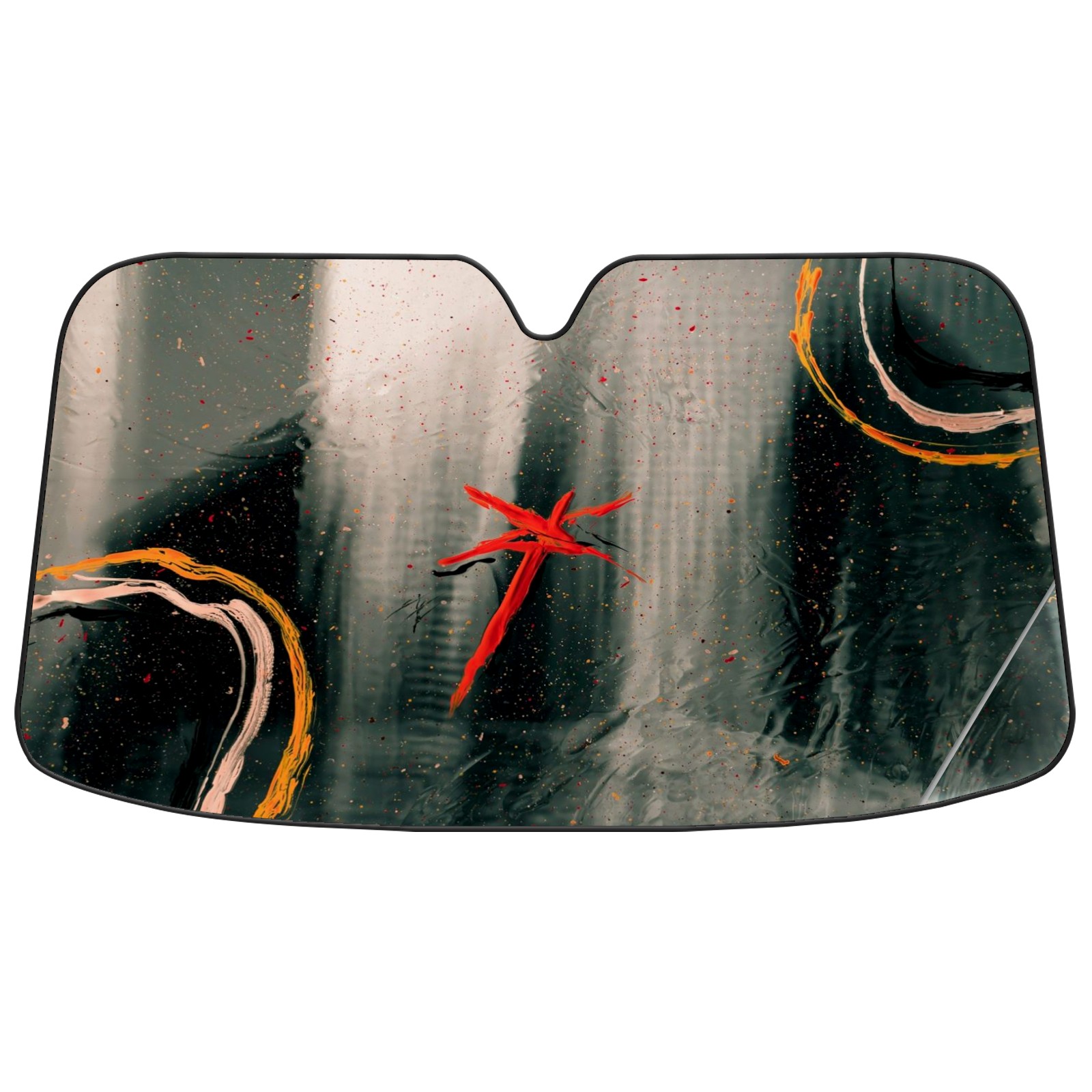 Car Windshield Sun Shade Polyester Car Sunshade Pad, Heat Insulation And Sun Protection Red Starfish In Glass Window