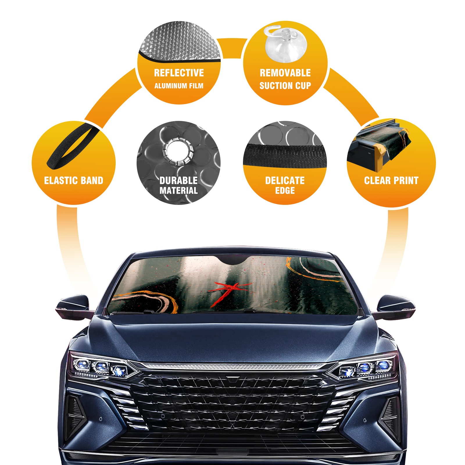<p>This car sunshade pad is made of a high-quality combination of aluminum foil and polyester, reinforced with transparent adhesive. It measures 140x76cm (55inx30in) and is a practical choice for protecting your car. Its powerful UV protection function can effectively block harmful light, prevent the car interior from aging due to exposure to sunlight, and maintain the dashboard, steering wheel, and seats in a brand new state.<br></p>