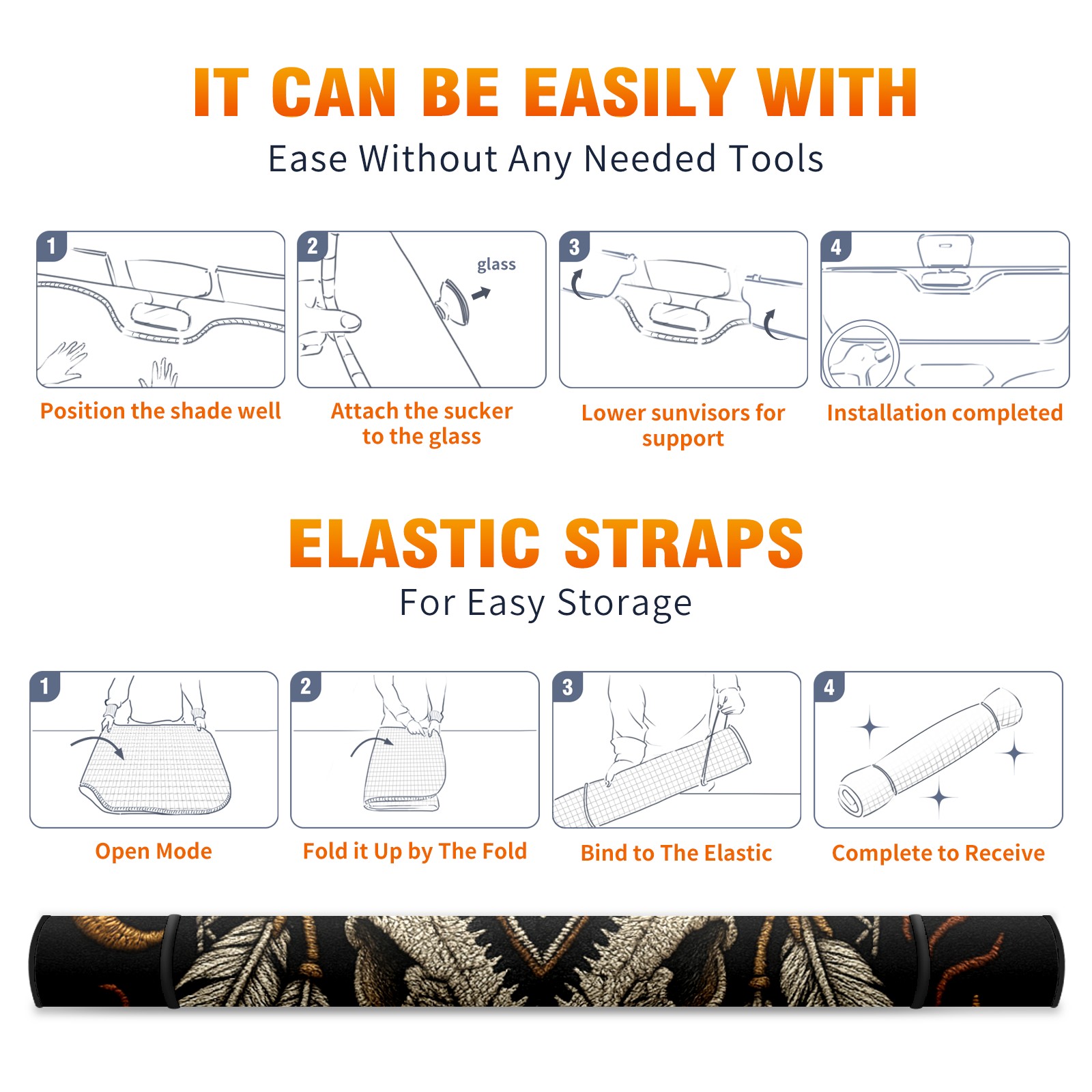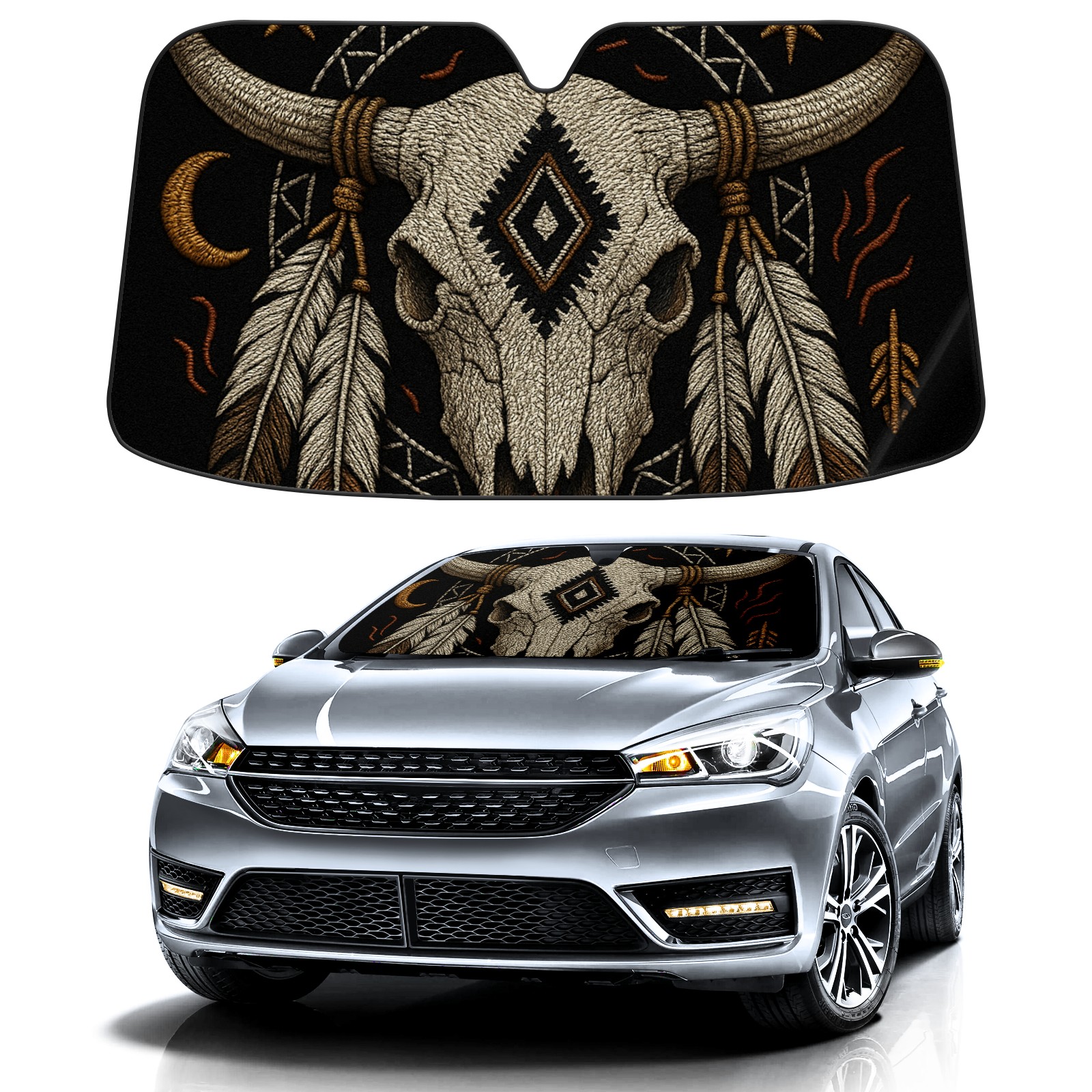 Car Windshield Sun Shade Polyester Car Sunshade Pad, Heat Insulation And Sun Protection Tribal Skull