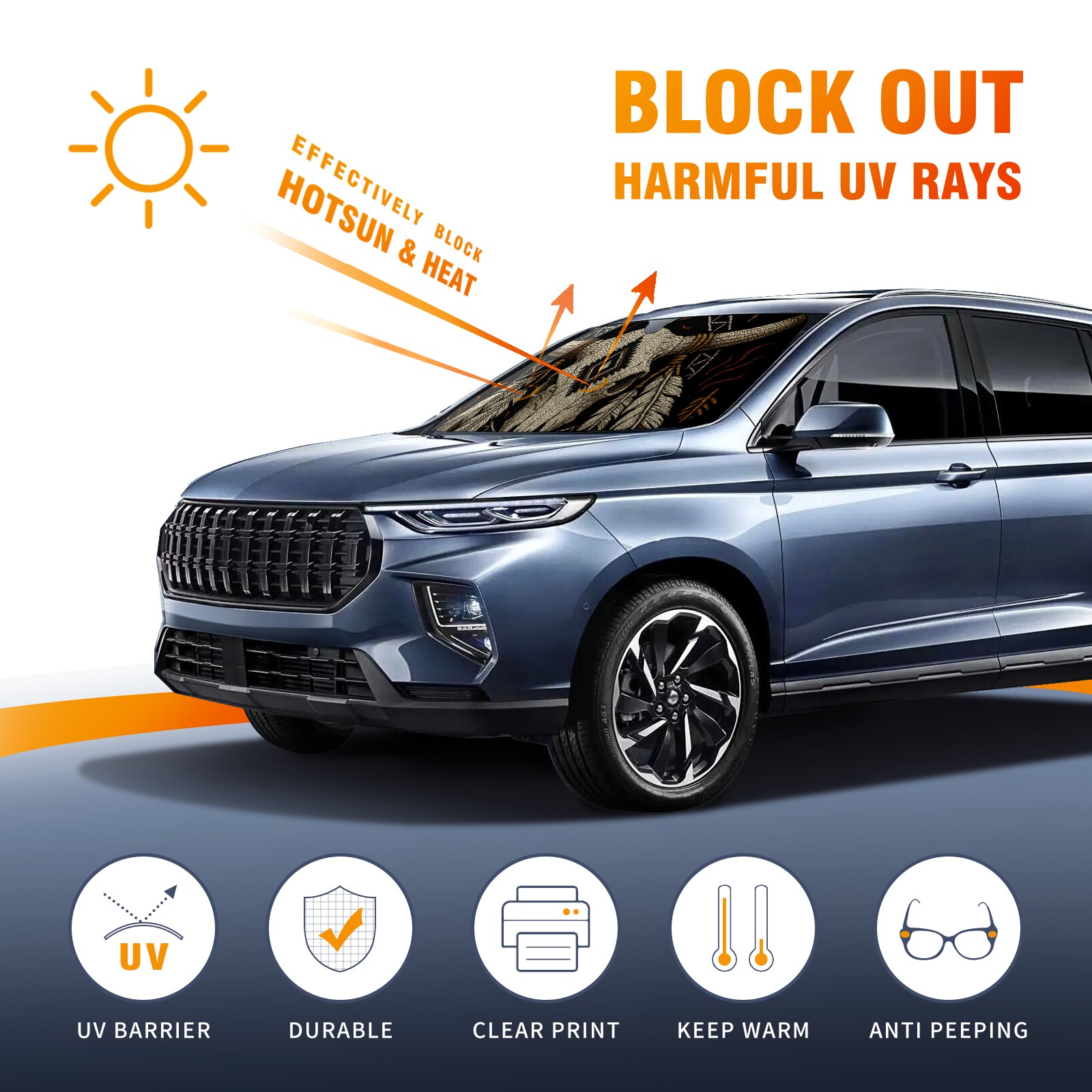 • <p>This car sunshade pad is made of a high-quality combination of aluminum foil and polyester, reinforced with transparent adhesive. It measures 140x76cm (55inx30in) and is a practical choice for protecting your car. Its powerful UV protection function can effectively block harmful light, prevent the car interior from aging due to exposure to sunlight, and maintain the dashboard, steering wheel, and seats in a brand new state.<br></p>