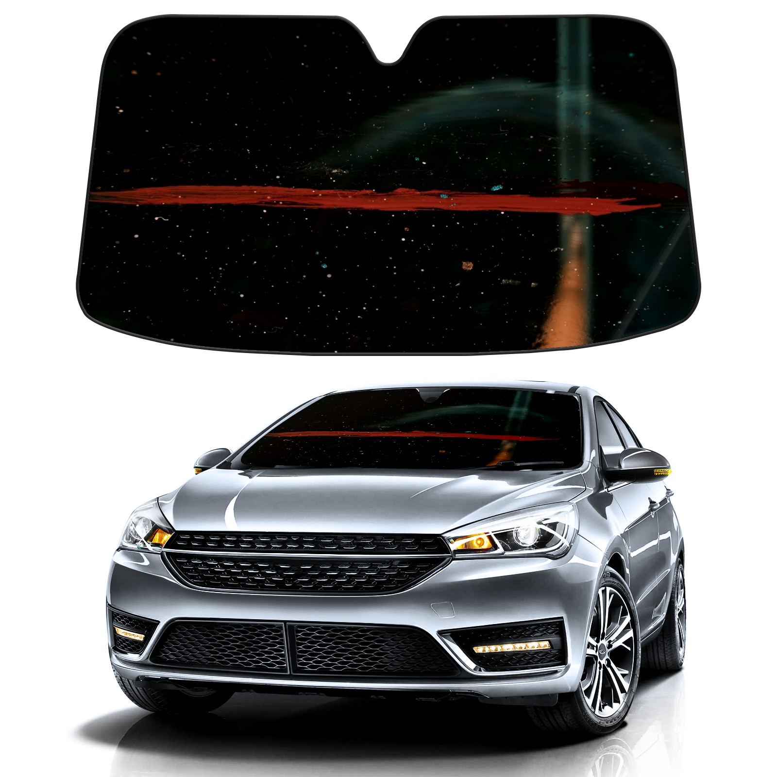 Car Windshield Sun Shade Polyester Car Sunshade Pad, Heat Insulation And Sun Protection Galaxy Wallpaper